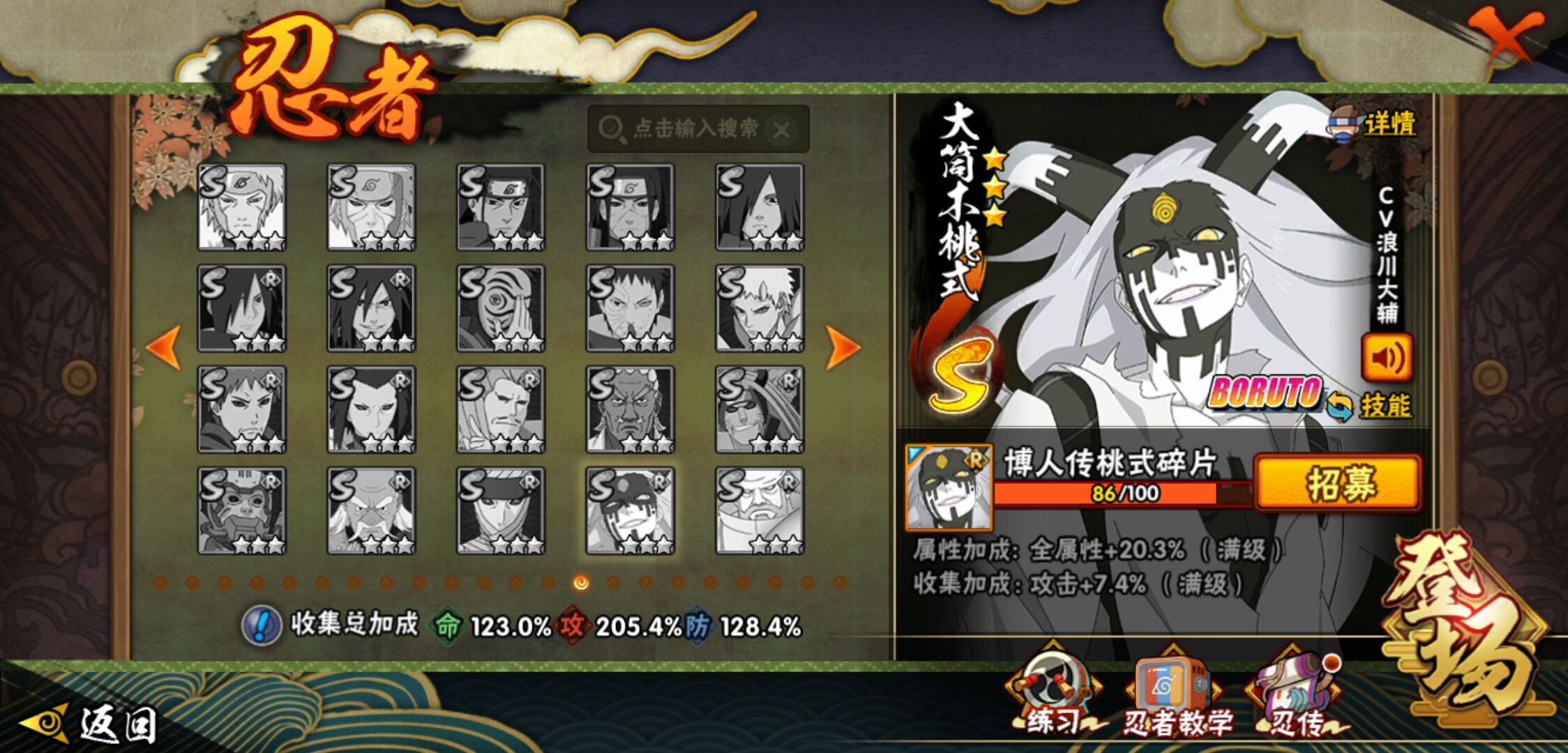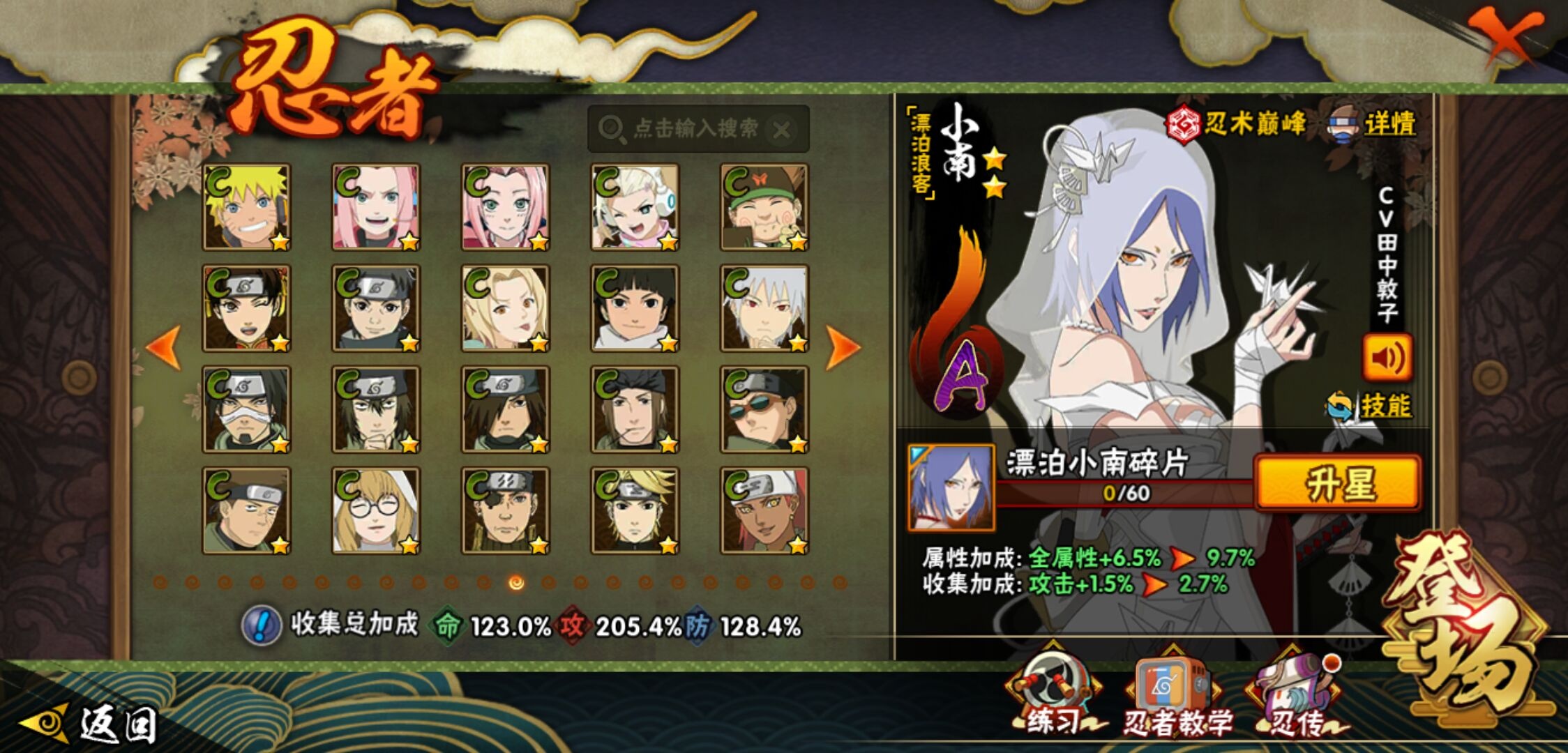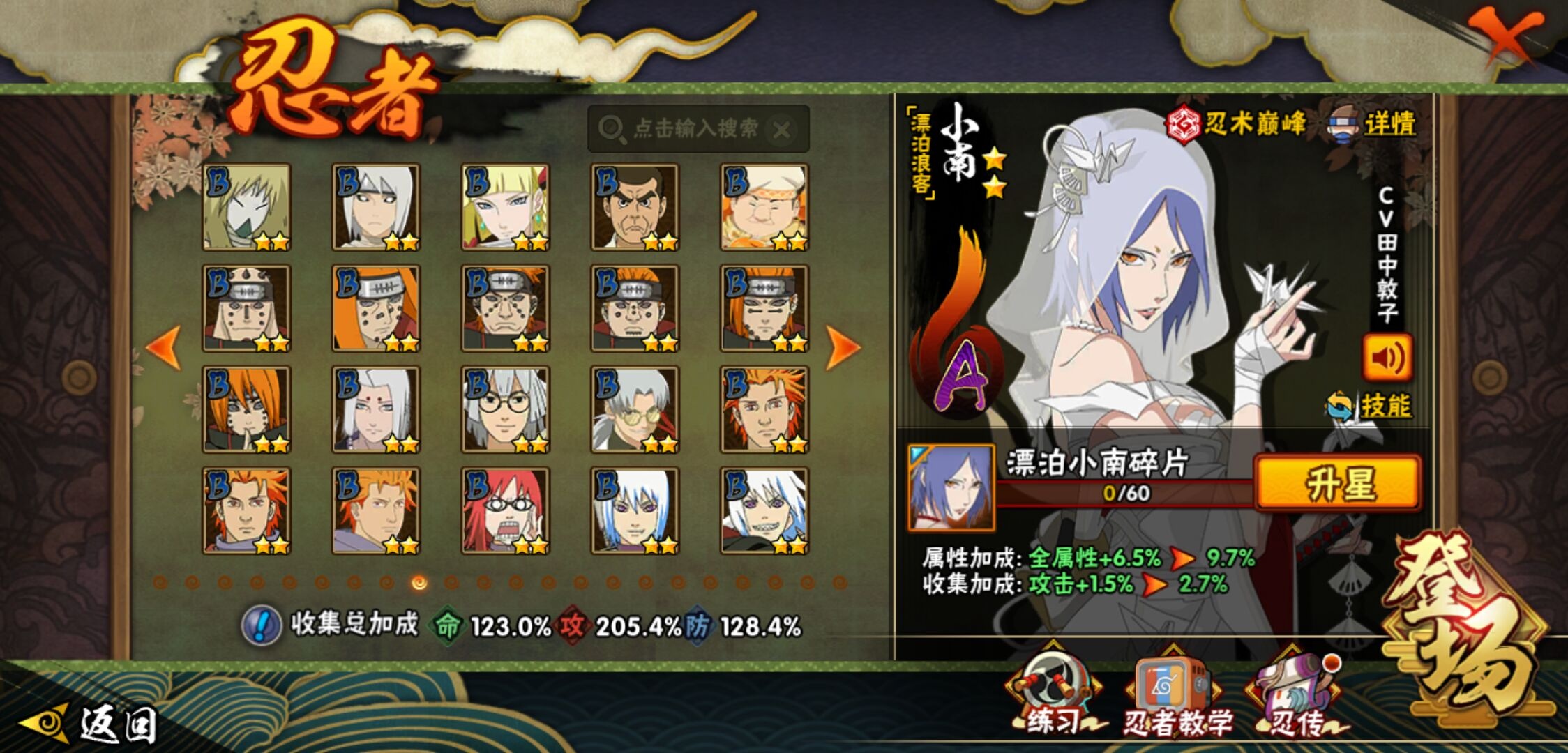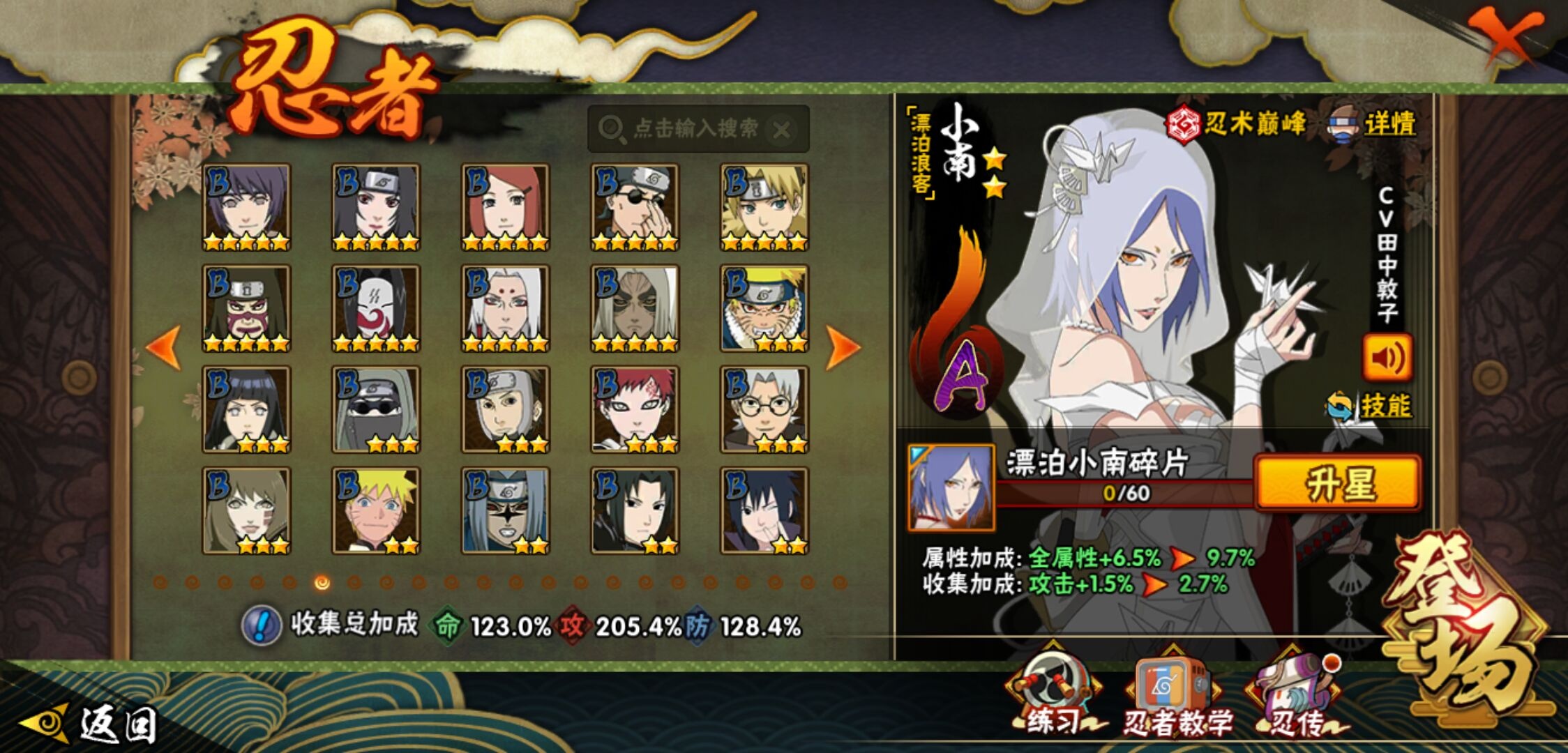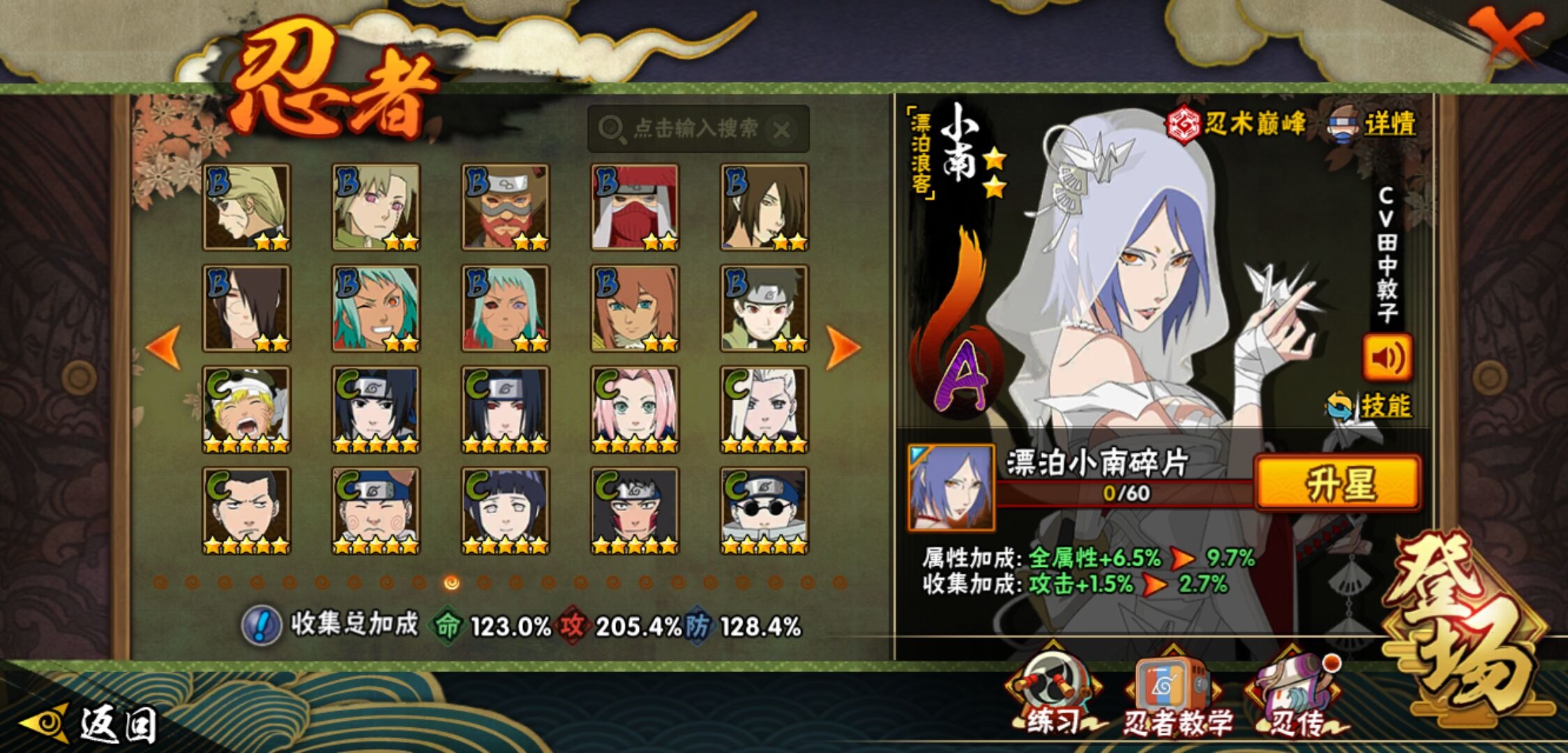 【火影忍者】【lyhy11395】战斗力:1983w;段位:中忍3阶;本服排名:40;vip:v12级;s忍:35个;a忍:56个;通灵兽:21个,s忍:秽土转生解宇智波斑|白面具宇智波斑|须佐能乎旗木卡卡西|超佩恩天道|九喇嘛连结波风水门|五影会谈宇智波斑|天道佩恩|传说中的三忍自来也|漩涡鸣人宇智波佐助|须佐能乎宇智波止水|秽土转生宇智波鼬|永恒万花筒宇智波佐助|最终章大筒木舍人|仙人模式自来也 4星|木叶创立千手柱间|忍界大战艾|舞之豪杰自来也|大蛇丸(普通)|纲手(普通) 5星|波风水门|秽土转生宇智波斑|须佐能乎宇智波鼬 4星|红夜之刃神秘面具男|秽土转生长门|三代目土影大野木|三代目雷影艾|仙人模式药师兜|死门迈特凯|忍界大战春野樱|九喇嘛连结漩涡鸣人|猿飞日斩(普通) 5星|秽土转生猿飞日斩|自来也(普通)|暴怒第六尾漩涡鸣人|初代目风影烈斗__a忍:青春爆炸迈特凯|仙人模式巳月|侠隐江湖宇智波佐助|幻之真容旗木卡卡西|忍界大战李洛克 3星|秽土转生角都|忍界大战日向宁次 3星|四代目土影黑土 3星|青年长门|秽土转生迪达拉|宇智波止水(普通)|元气夏日旗木卡卡西|青年波风水门|青年艾|近松十人卫千代|夏日泳装照美冥|须佐能乎宇智波佐助|九尾查克拉漩涡鸣人|七夕限定猿飞阿斯玛|恶灵之影飞段|百豪春野樱|忍界大战秋道丁次|忍界大战我爱罗|新春限定波风水门|夏日泳装小南|万花筒写轮眼宇智波佐助|五代目水影照美冥|五代目雷影达鲁伊|黑绝|死司凭血飞段 5星|疾风传我爱罗 4星|迪达拉(普通)|飞段(普通) 4星|小南(普通)|漂泊浪客小南|仙人模式漩涡鸣人|万花筒写轮眼旗木卡卡西|迈特凯(普通) 5星|宇智波鼬(普通)|夏日限定宇智波鼬|干柿鬼鲛(普通) 5星|秽土转生桃地再不斩|桃地再不斩|蝎(普通) 5星|绯流琥蝎 3星|猿飞阿斯玛(普通) 5星|桃式显现漩涡博人 3星|最终章日向雏田|六代目水影长十郎|不缘|新春限定大蛇丸|宇智波泉奈|羁绊神农|忍界大战土台|初始形态机械鸣人|侠隐江湖大野木__通灵兽:忍犬(普通)|蓝蛇|蛤蟆吉|忍龟|镰鼬|猿魔|山椒鱼|蜃|蛞蝓(普通)|蛤蟆仙人|鲛鲨|蛤蟆健|乌鸦(普通)|砂之守鹤|蛤蟆龙|蛤蟆广|梦貘|鹰|熊猫|蜘蛛|辛牙