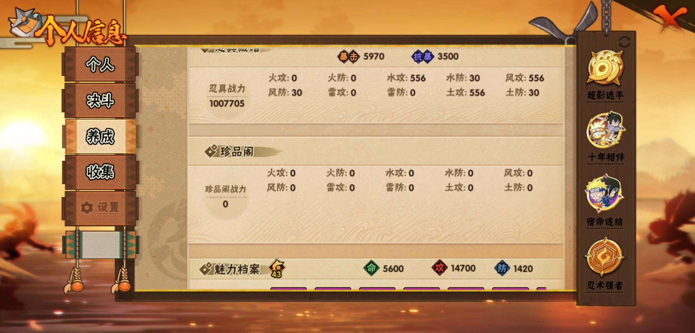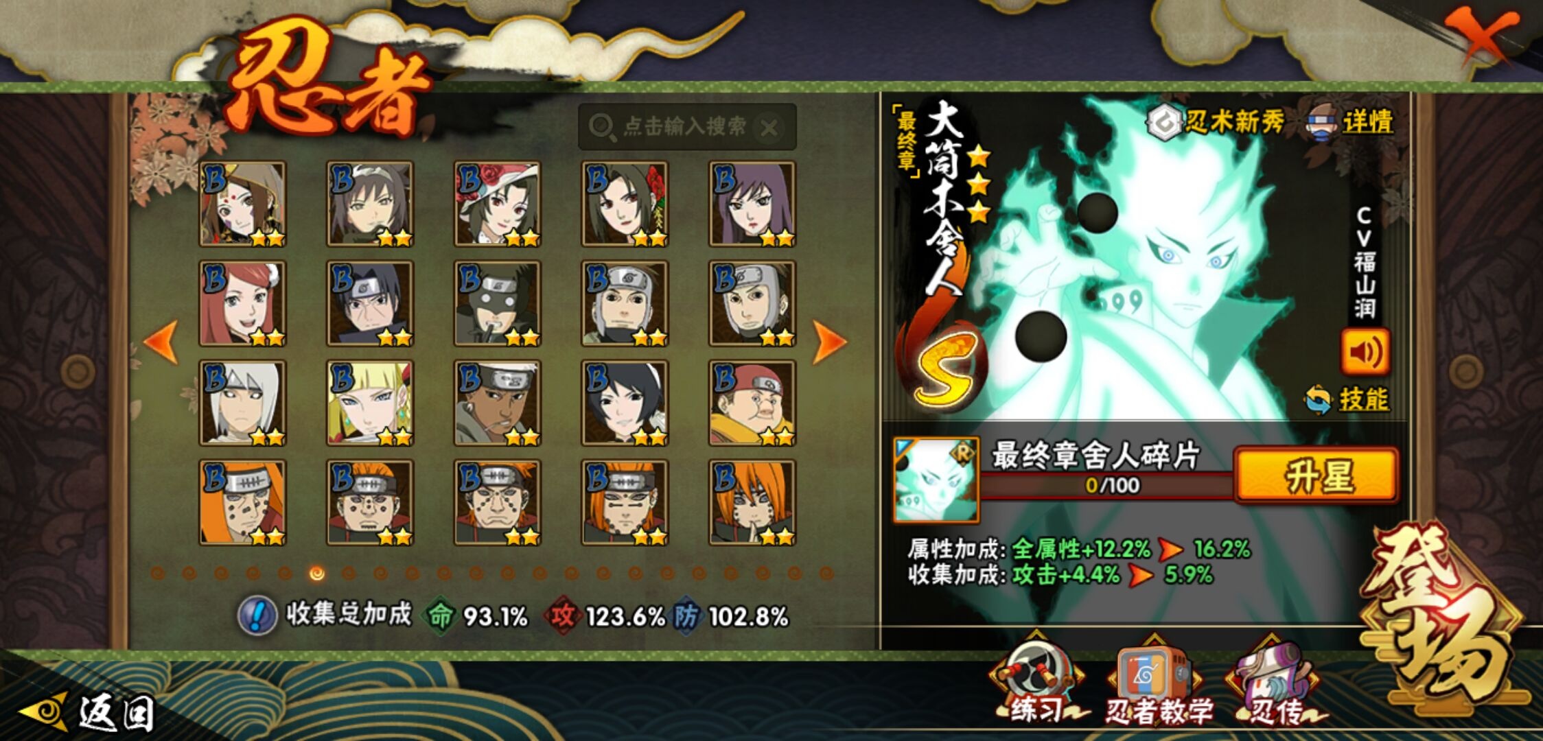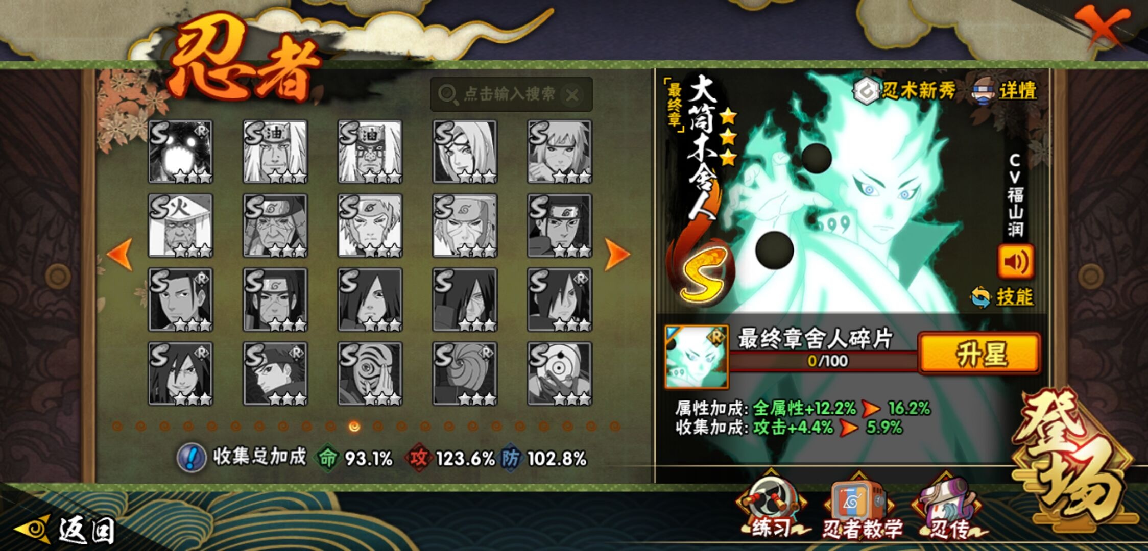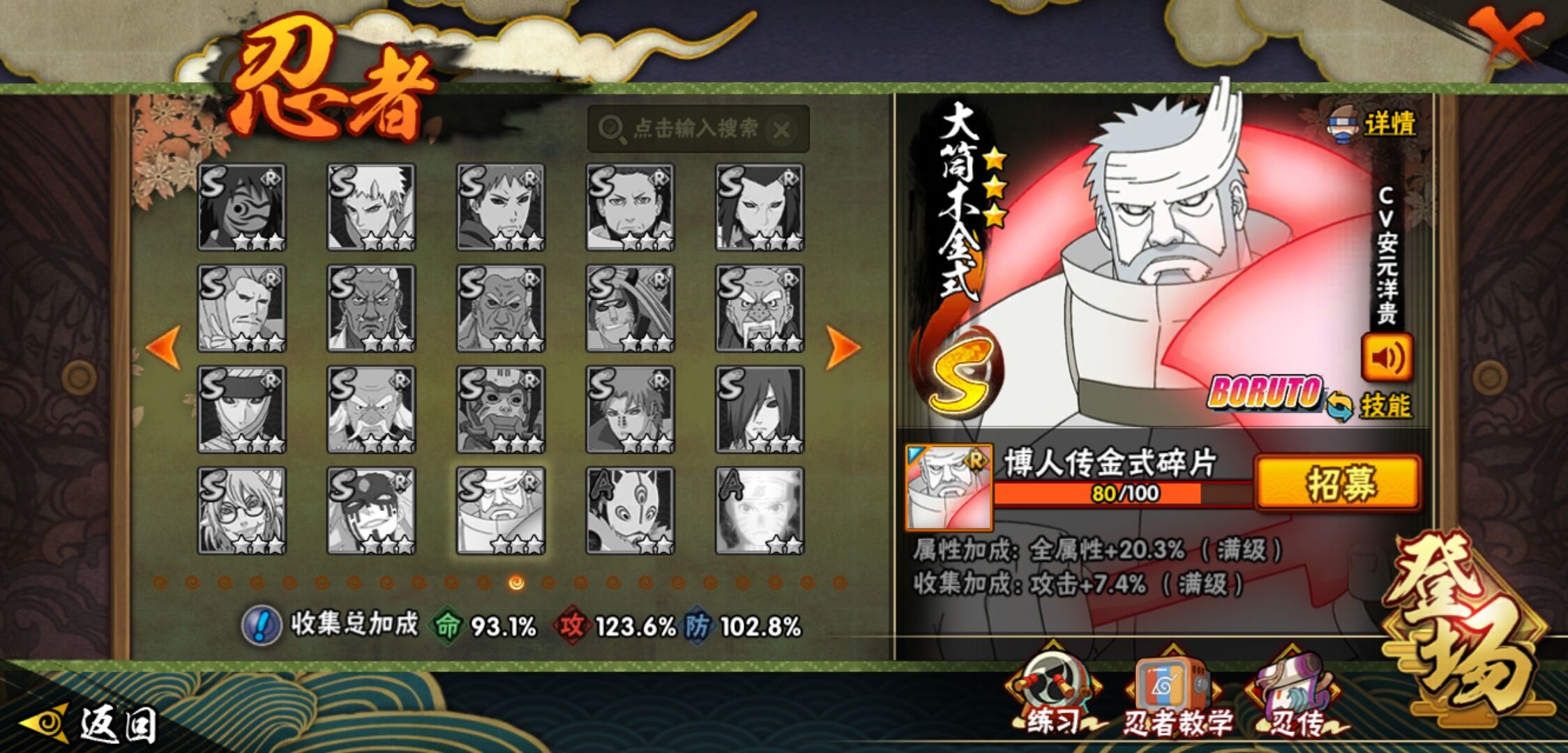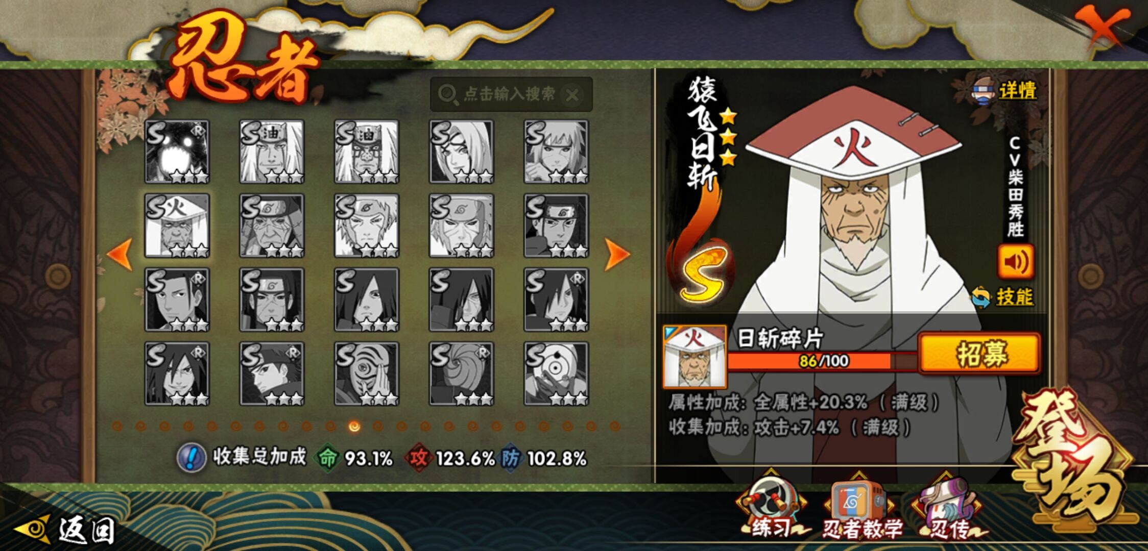 【火影忍者】【lyhy11396】战斗力:1279w;段位:上忍3阶;本服排名:232;vip:v9级;s忍:19个;a忍:41个;通灵兽:17个,s忍:秽土转生解宇智波斑|忍界大战宇智波带土|须佐能乎旗木卡卡西|九喇嘛连结波风水门|天道佩恩|传说中的三忍自来也|漩涡鸣人宇智波佐助|秽土转生宇智波鼬|永恒万花筒宇智波佐助|最终章大筒木舍人|忍界大战艾|舞之豪杰自来也|大蛇丸(普通)|纲手(普通)|波风水门|须佐能乎宇智波鼬|死门迈特凯|忍界大战春野樱|九喇嘛连结漩涡鸣人__a忍:青春爆炸迈特凯|漂泊浪客宇智波带土|仙人模式巳月|忍界大战李洛克|漂泊浪客佩恩六道|秽土转生角都|忍界大战日向宁次|四代目土影黑土|青年长门|秽土转生迪达拉|忍界大战奇拉比|青年波风水门|青年艾|近松十人卫千代|半蛇斗篷药师兜|须佐能乎宇智波佐助|晓大蛇丸|忍界大战秋道丁次|万花筒写轮眼宇智波佐助|五代目水影照美冥|五代目雷影达鲁伊|死司凭血飞段 3星|疾风传我爱罗 4星|飞段(普通) 3星|仙人模式漩涡鸣人|迈特凯(普通) 5星|宇智波鼬(普通)|夏日限定宇智波鼬|干柿鬼鲛(普通) 5星|秽土转生桃地再不斩|蝎(普通) 5星|绯流琥蝎|猿飞阿斯玛(普通) 5星|桃式显现漩涡博人|最终章日向雏田|六代目水影长十郎|不缘|宇智波泉奈|忍界大战土台|初始形态机械鸣人|侠隐江湖大野木__通灵兽:忍犬(普通)|蓝蛇|蛤蟆吉|忍龟|镰鼬|猿魔|山椒鱼|砂之守鹤|蜃|蛤蟆仙人|鲛鲨|蛤蟆健|乌鸦(普通)|蛤蟆龙|蛤蟆广|蛞蝓(普通)|梦貘