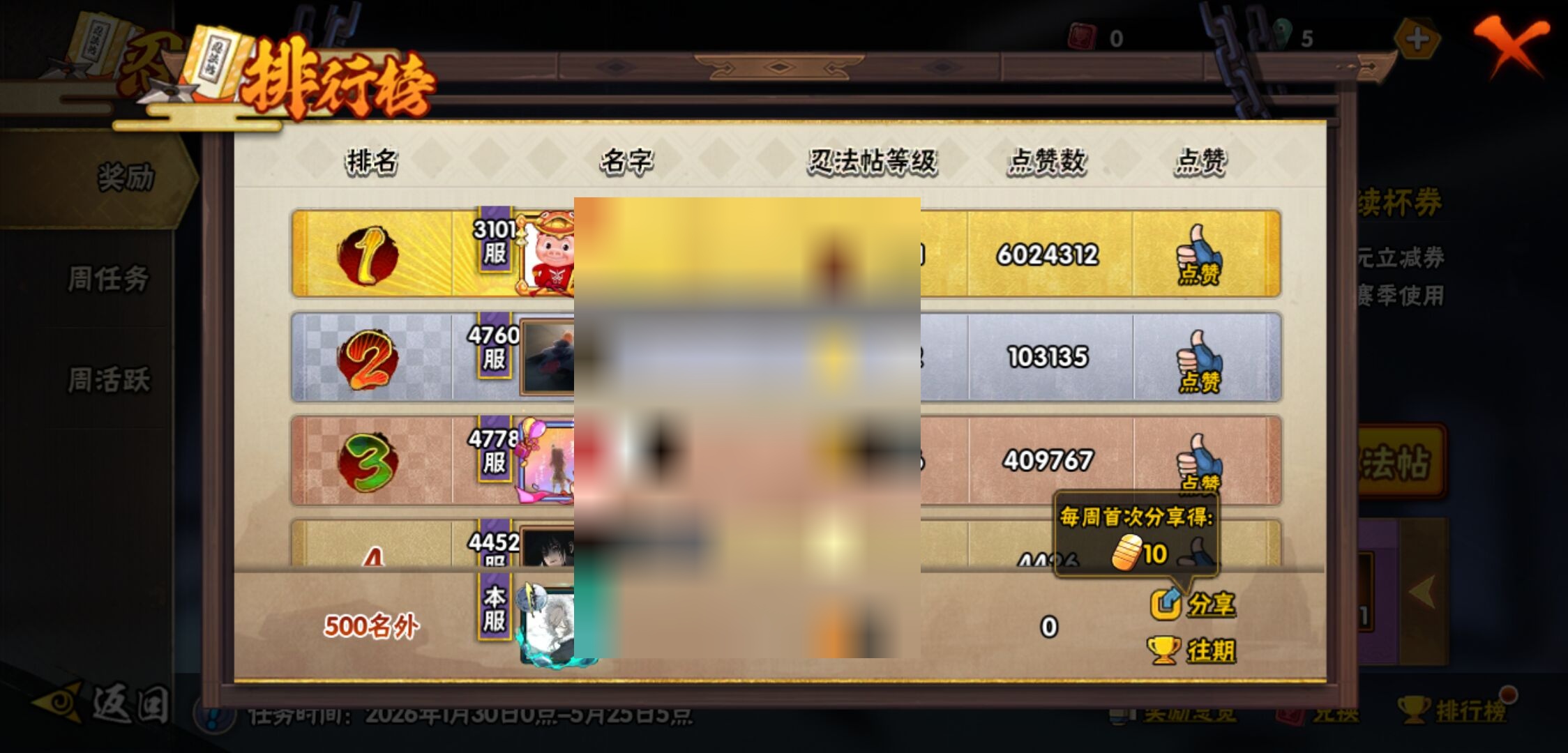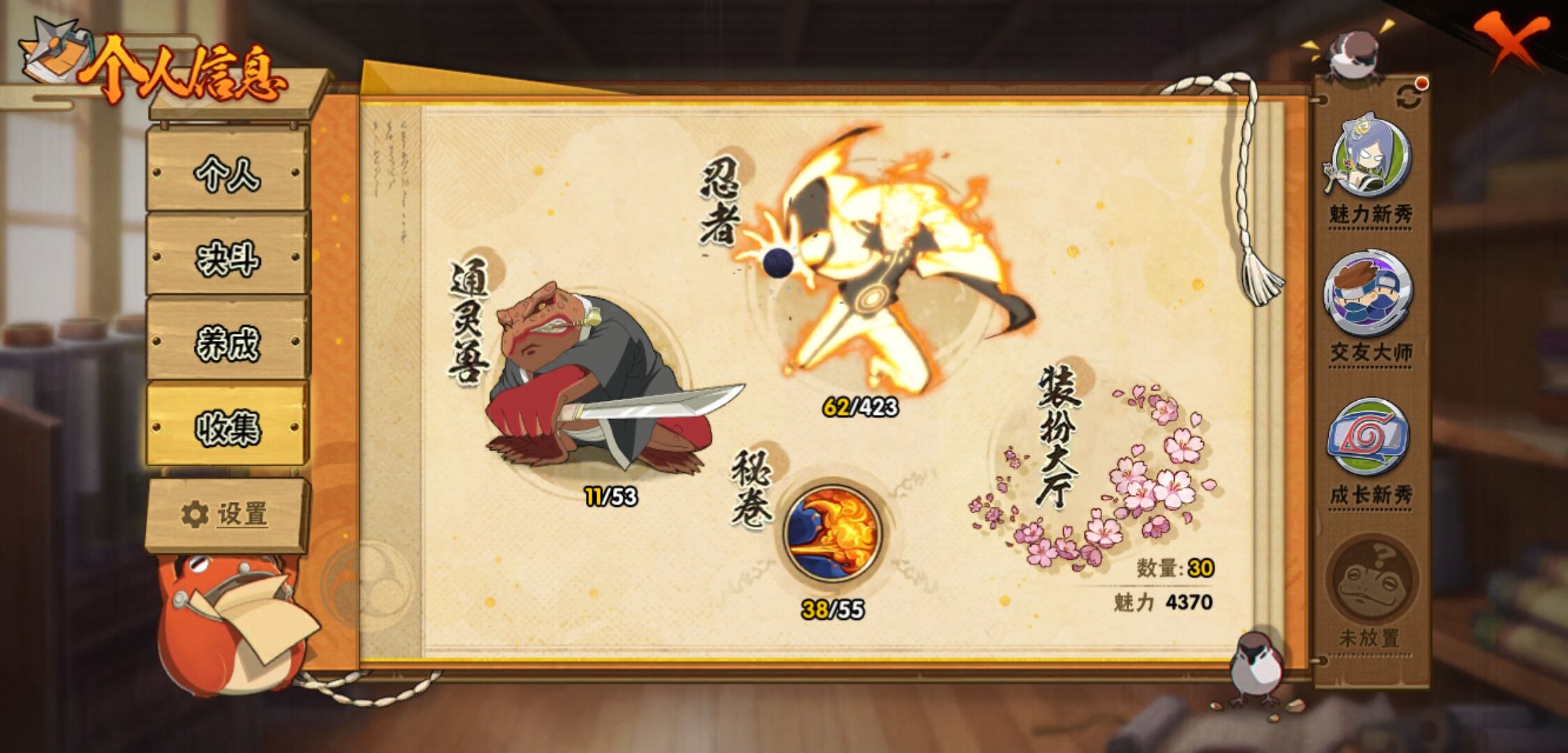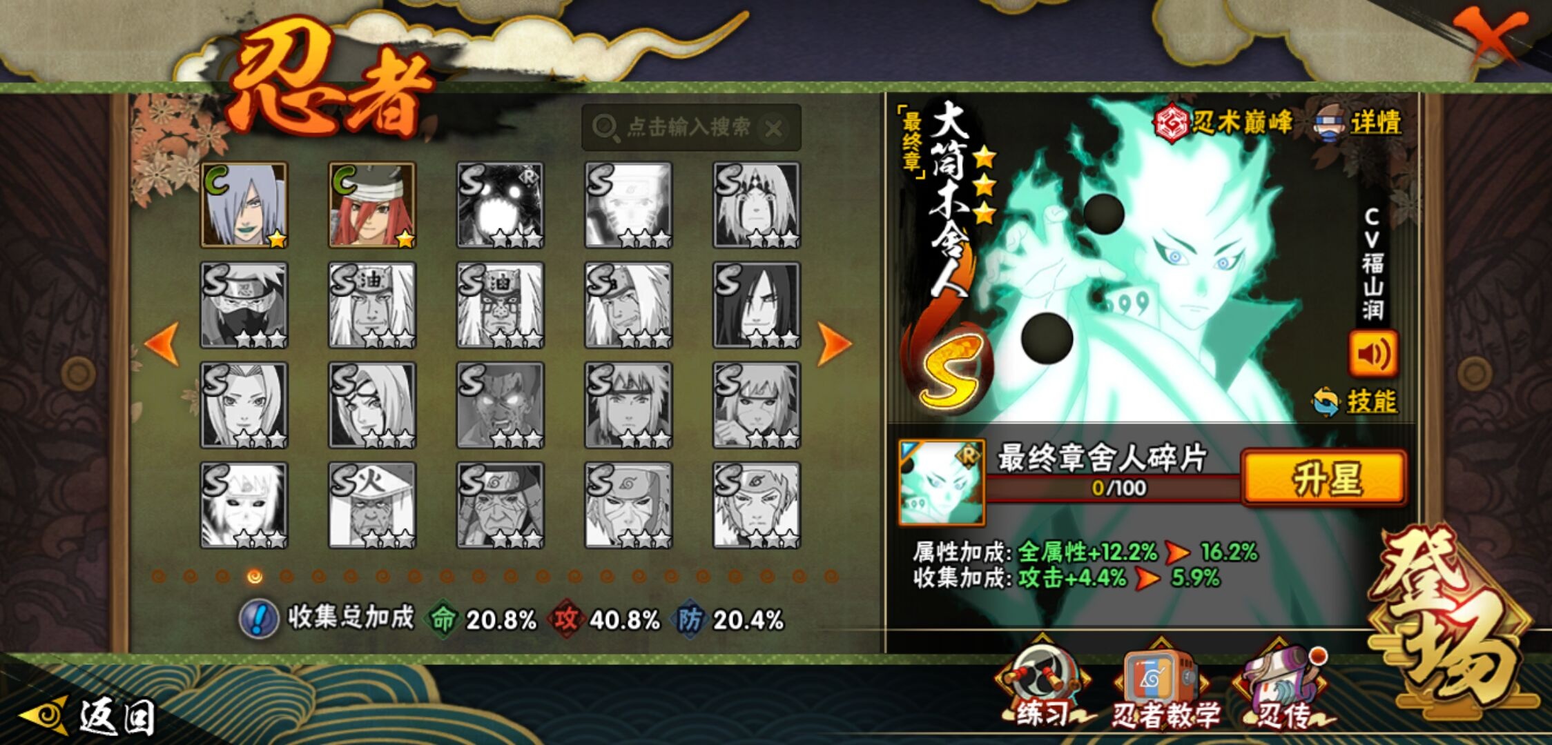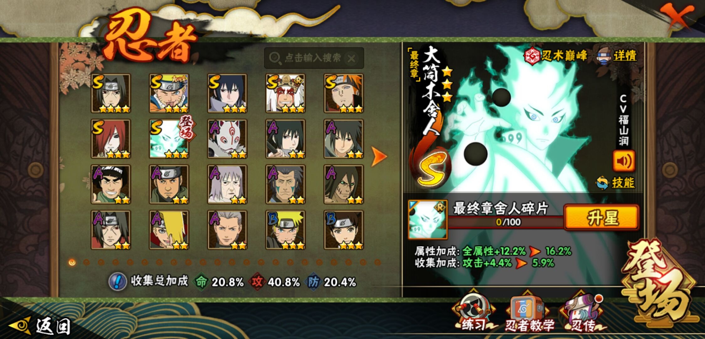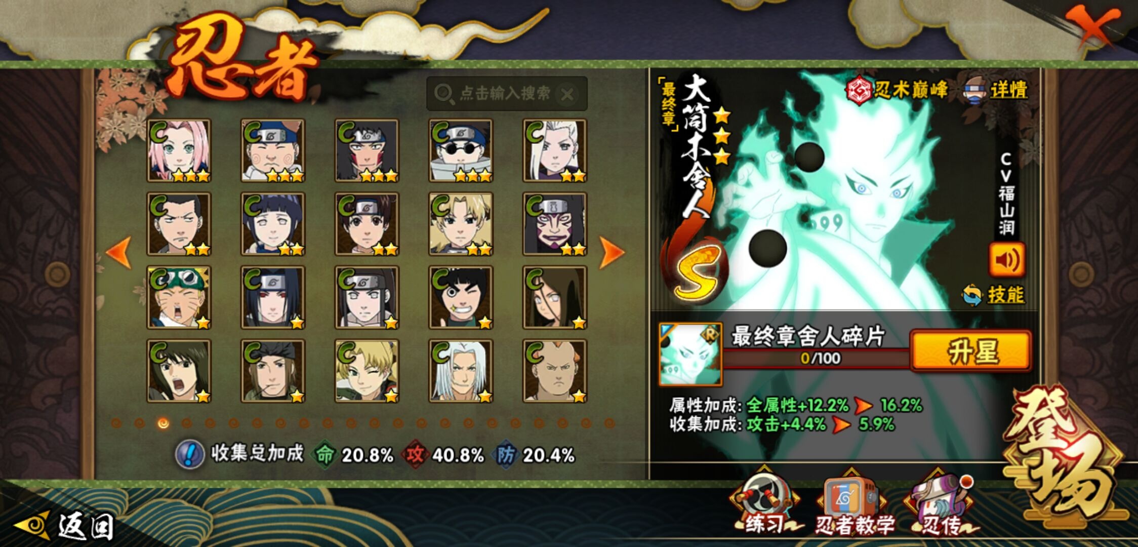 【火影忍者】【lyhy11391】战斗力:243w;段位:中忍2阶;本服排名:2106;vip:v7级;s忍:7个;a忍:11个;通灵兽:11个,s忍:天道佩恩|漩涡鸣人宇智波佐助|永恒万花筒宇智波佐助|最终章大筒木舍人|舞之豪杰自来也|须佐能乎宇智波鼬 4星|秽土转生长门__a忍:秽土转生角都|忍者之路神秘面具男|近松十人卫千代|须佐能乎宇智波佐助|迪达拉(普通)|飞段(普通)|迈特凯(普通)|宇智波鼬(普通)|猿飞阿斯玛(普通)|不动|宇智波泉奈__通灵兽:忍犬(普通)|蓝蛇|蛤蟆吉|忍龟|镰鼬|猿魔|砂之守鹤|山椒鱼|蜃|蛤蟆仙人|鲛鲨