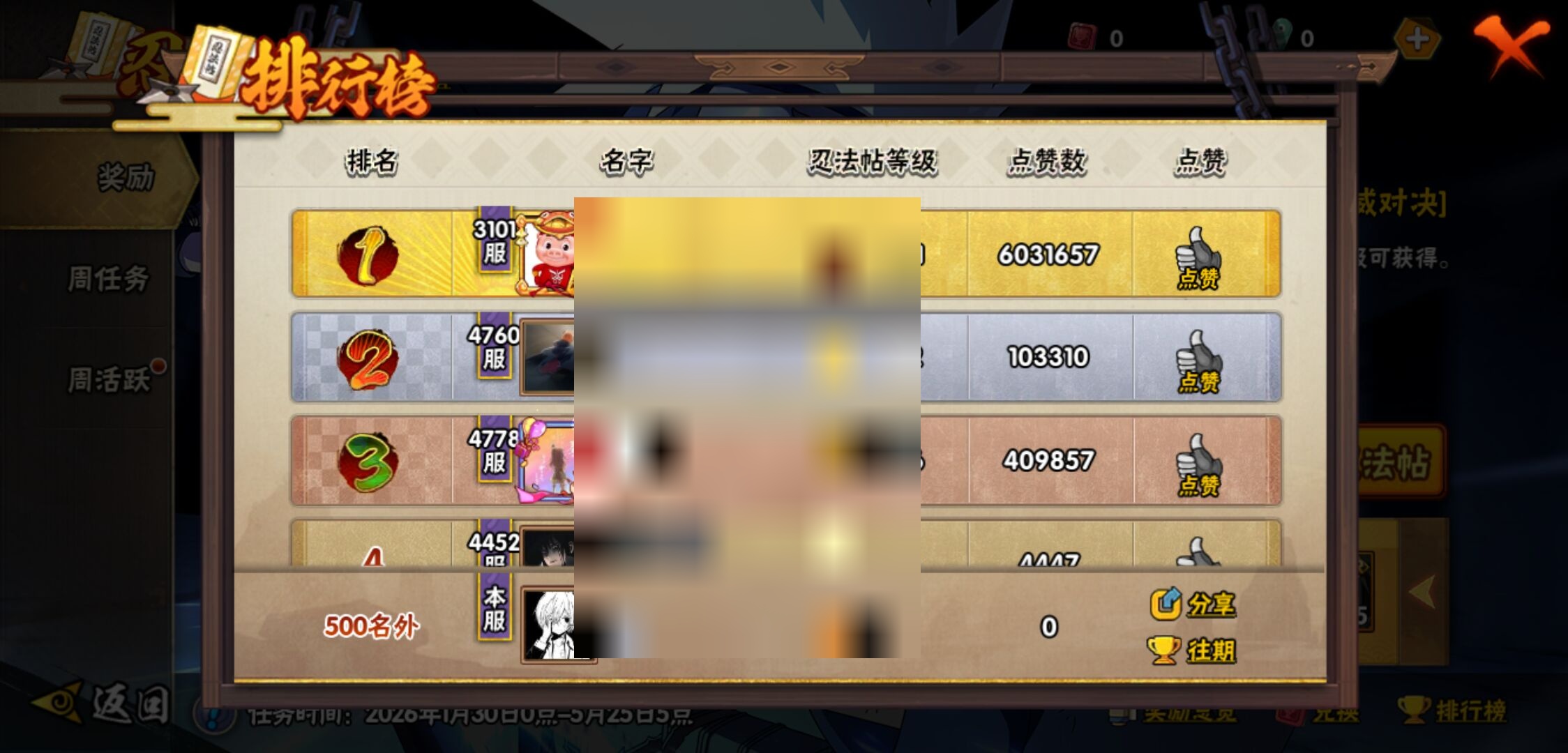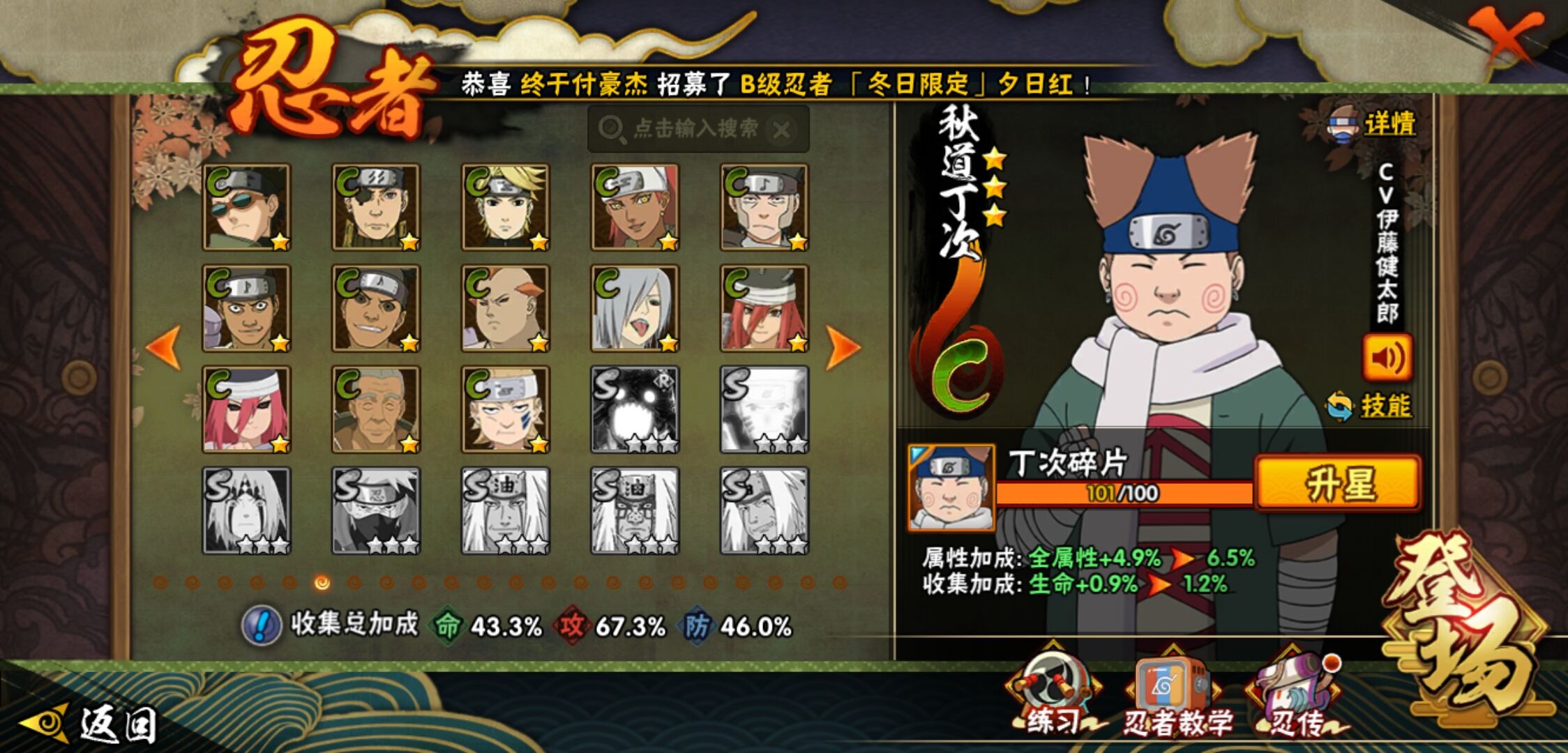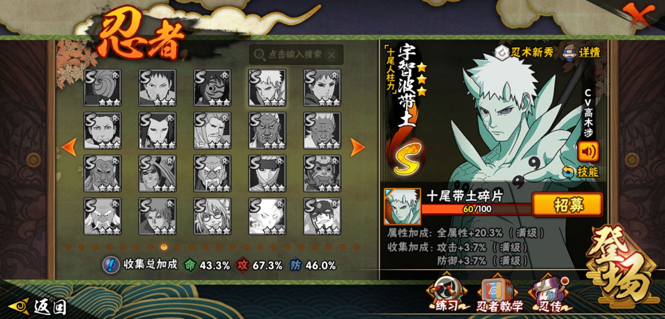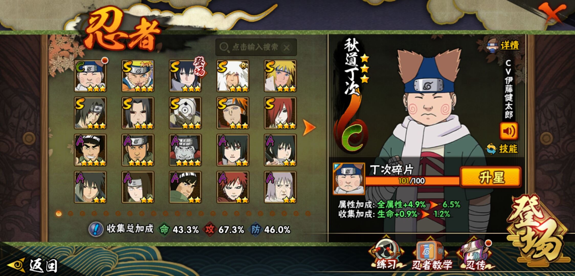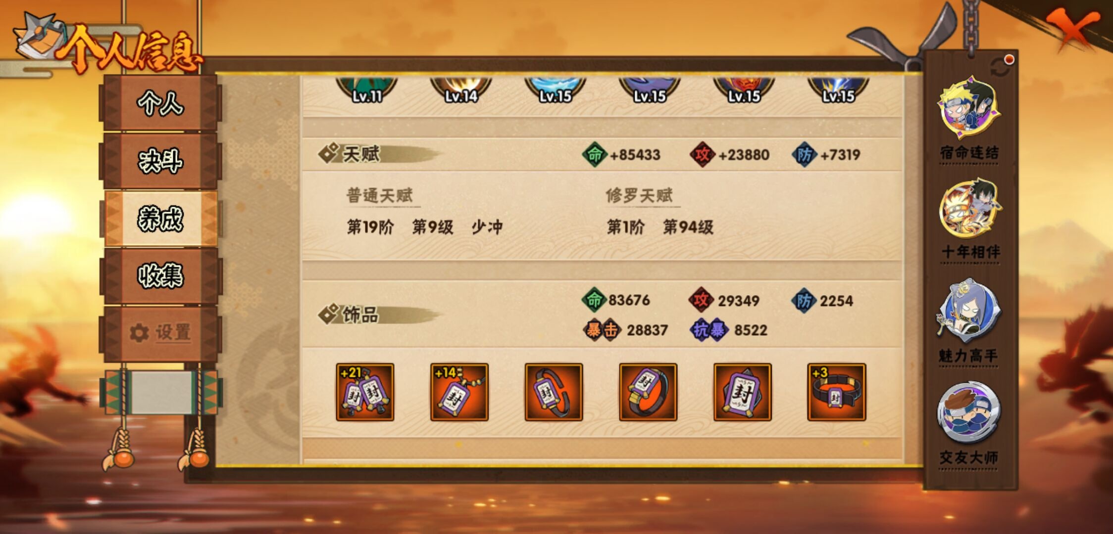 【火影忍者】【lyhy11393】战斗力:463w;段位:上忍2阶;本服排名:1949;vip:v4级;s忍:9个;a忍:18个;通灵兽:13个,s忍:白面具宇智波斑|天道佩恩|漩涡鸣人宇智波佐助|秽土转生宇智波鼬|永恒万花筒宇智波佐助|舞之豪杰自来也|波风水门|须佐能乎宇智波鼬|秽土转生长门__a忍:青春爆炸迈特凯|忍界大战日向宁次|近松十人卫千代|须佐能乎宇智波佐助|万花筒写轮眼宇智波佐助|死司凭血飞段|疾风传我爱罗|迪达拉(普通)|飞段(普通)|迈特凯(普通) 4星|宇智波鼬(普通)|夏日限定宇智波鼬|干柿鬼鲛(普通) 4星|秽土转生桃地再不斩|蝎(普通)|猿飞阿斯玛(普通) 4星|六代目水影长十郎|宇智波泉奈__通灵兽:忍犬(普通)|蓝蛇|蛤蟆吉|忍龟|砂之守鹤|镰鼬|猿魔|山椒鱼|蜃|蛤蟆仙人|鲛鲨|蛤蟆健|乌鸦(普通)