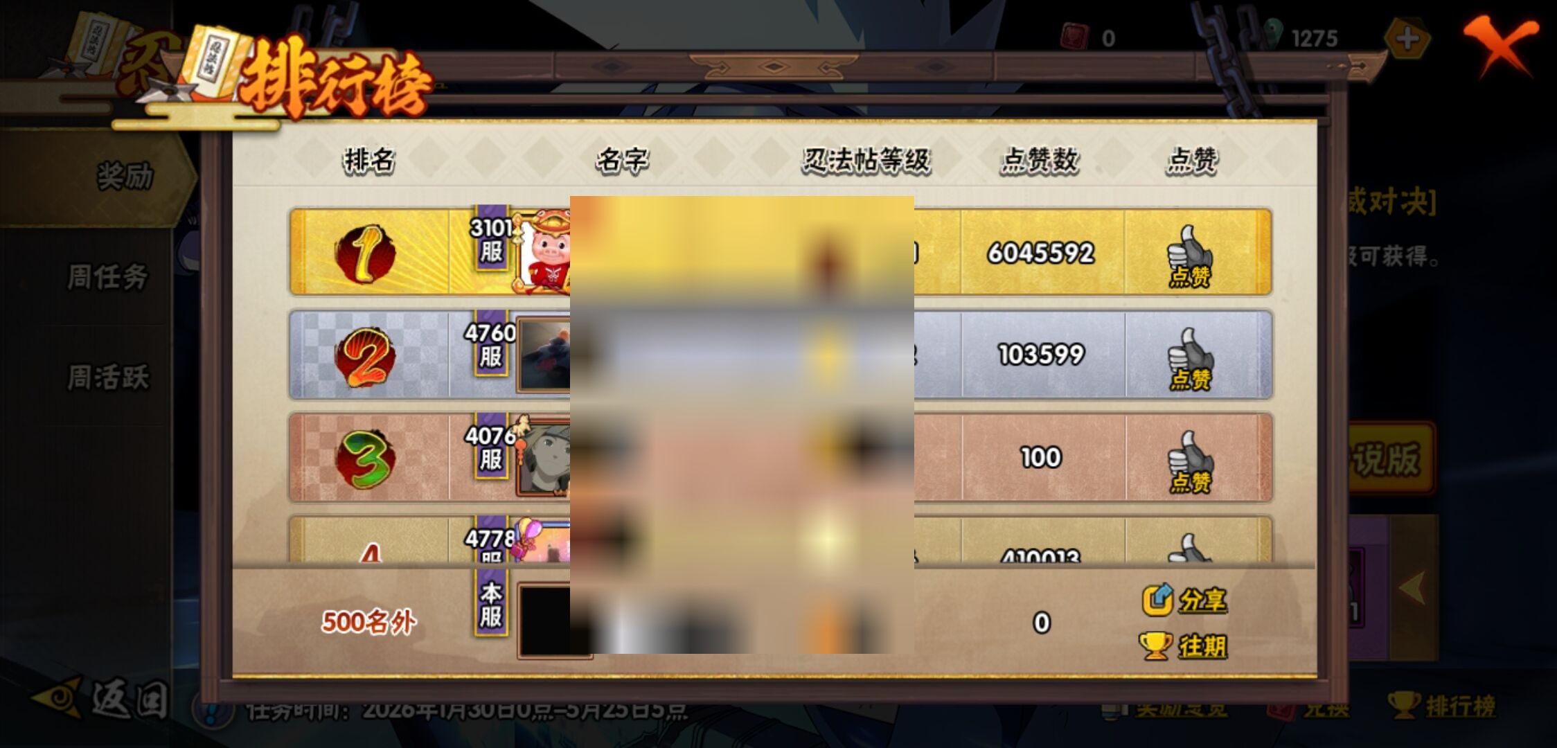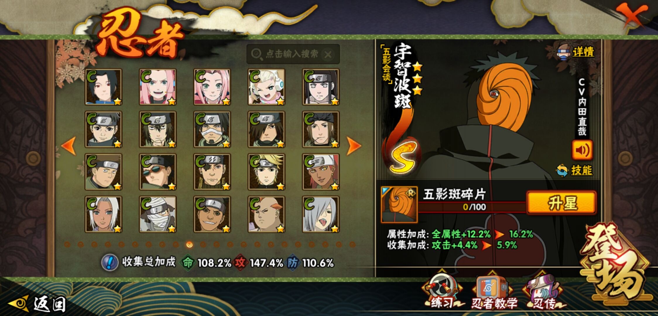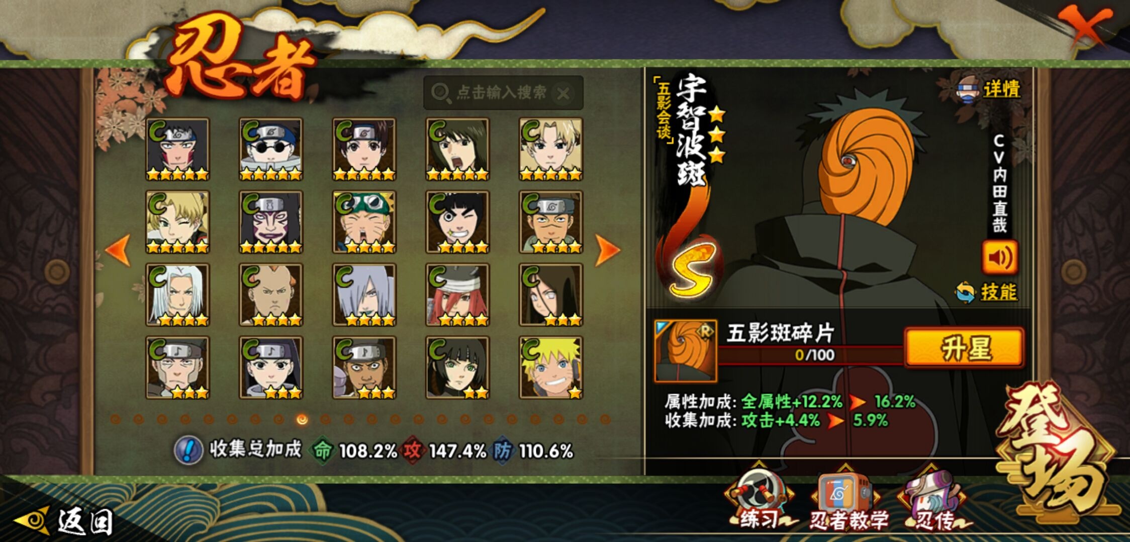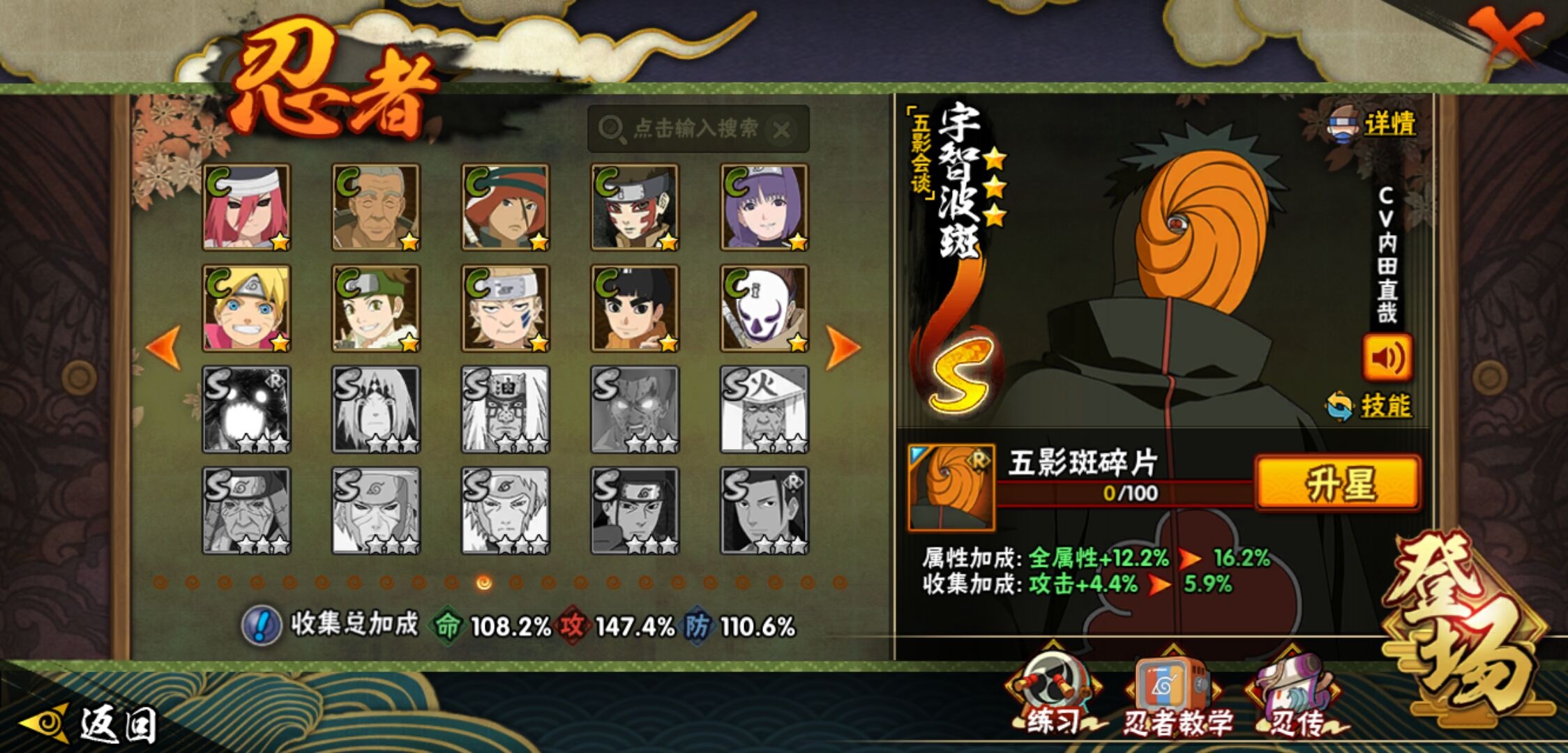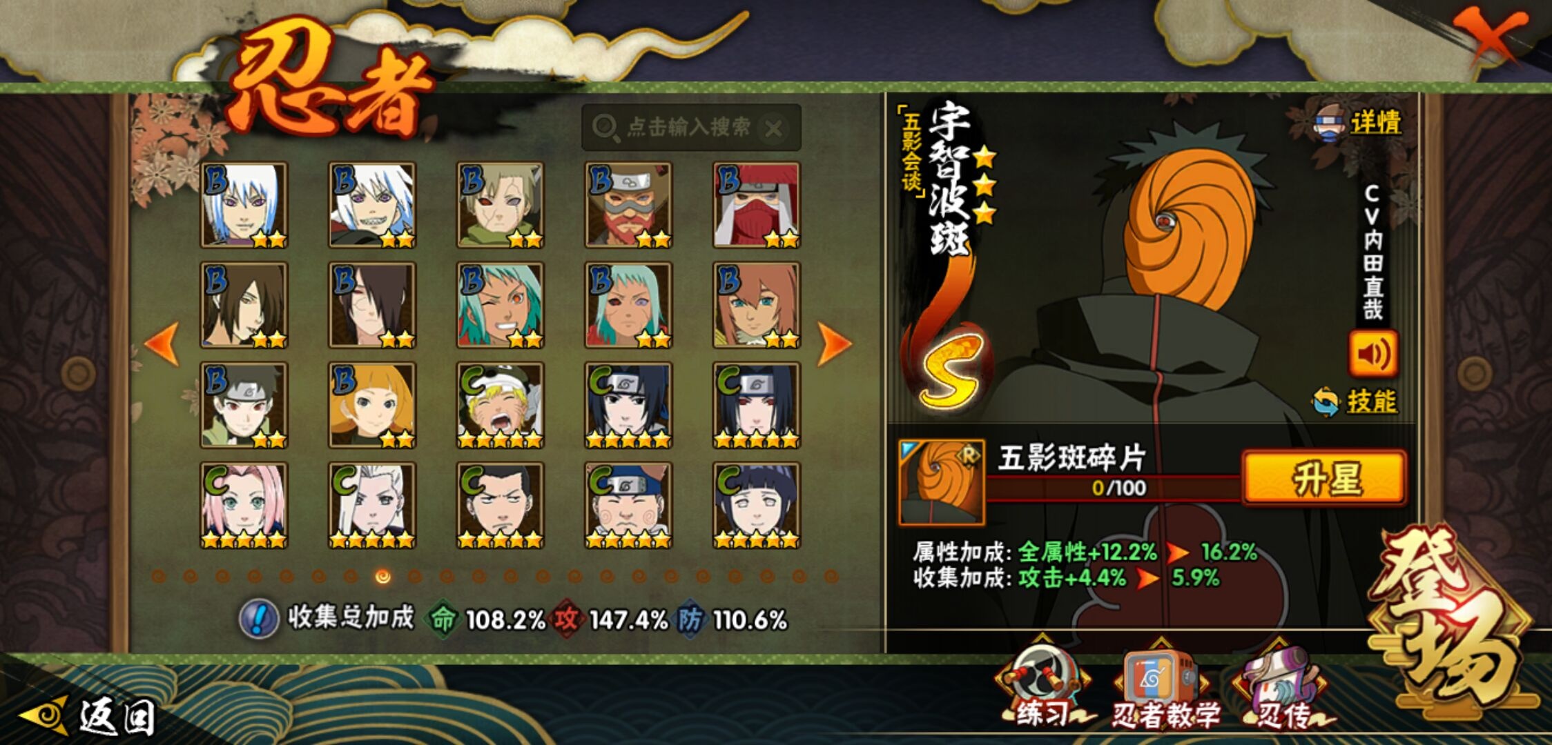 【火影忍者】【lyhy11402】战斗力:1551w;段位:中忍2阶;本服排名:186;vip:v7级;s忍:24个;a忍:46个;通灵兽:19个,s忍:十尾人柱力宇智波带土|秽土转生解宇智波斑|忍界大战宇智波带土|须佐能乎旗木卡卡西|九喇嘛连结波风水门|五影会谈宇智波斑|天道佩恩|传说中的三忍自来也|漩涡鸣人宇智波佐助|秽土转生千手柱间|秽土转生宇智波鼬|永恒万花筒宇智波佐助|舞之豪杰自来也|大蛇丸(普通) 4星|纲手(普通)|百豪纲手|波风水门|秽土转生波风水门|秽土转生宇智波斑|须佐能乎宇智波鼬 4星|秽土转生长门|仙人模式药师兜|九喇嘛连结漩涡鸣人|自来也(普通)__a忍:青春爆炸迈特凯|仙人模式巳月|幻之真容旗木卡卡西|忍界大战李洛克|忍界大战日向宁次|四代目土影黑土|秽土转生迪达拉|志村团藏|宇智波止水(普通)|忍界大战奇拉比|青年波风水门|近松十人卫千代|半蛇斗篷药师兜|须佐能乎宇智波佐助|九尾查克拉漩涡鸣人|晓大蛇丸|百豪春野樱|忍界大战秋道丁次|忍界大战我爱罗|秽土转生猿飞阿斯玛|疾风传咒印宇智波佐助|奇拉比(普通)|万花筒写轮眼宇智波佐助|五代目水影照美冥|五代目雷影达鲁伊|死司凭血飞段 4星|疾风传我爱罗 4星|迪达拉(普通)|飞段(普通) 4星|小南(普通)|仙人模式漩涡鸣人|万花筒写轮眼旗木卡卡西|迈特凯(普通) 5星|宇智波鼬(普通) 3星|干柿鬼鲛(普通) 5星|秽土转生桃地再不斩|桃地再不斩|蝎(普通) 5星|绯流琥蝎|猿飞阿斯玛(普通) 5星|最终章日向雏田|六代目水影长十郎|不动|宇智波泉奈|忍界大战土台|初始形态机械鸣人__通灵兽:忍犬(普通)|蓝蛇|蛤蟆吉|忍龟|镰鼬|猿魔|山椒鱼|蜃|蛤蟆仙人|鲛鲨|蛤蟆健|乌鸦(普通)|蛤蟆龙|怒鬼无臂|蛤蟆广|梦貘|鹰|蜘蛛|砂之守鹤