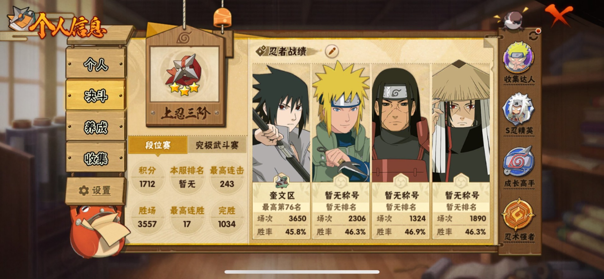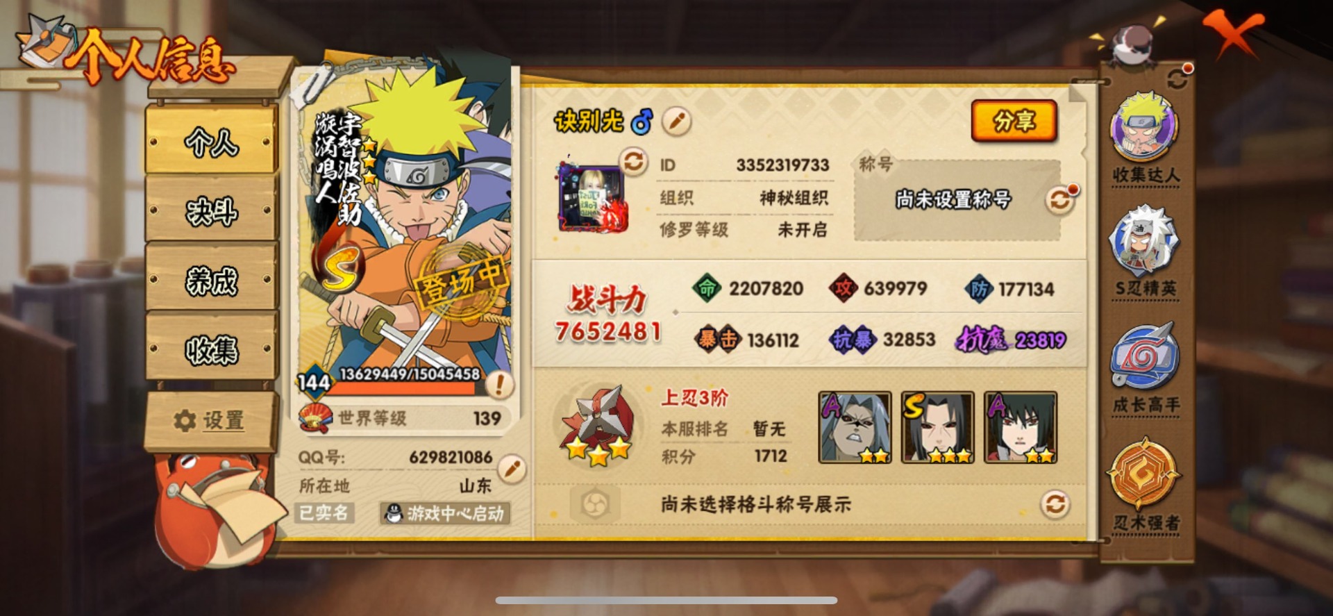 [16454479]v10 16s忍 38a忍 17通灵 765.2w战力 可二次 可修改实名 【s级忍者】宇智波斑「秽土转生·解」宇智波佐助「永恒万花筒」迈特凯「死门」宇智波带土 「忍界大战」千手柱间「秽土转生」自来也 「舞之豪杰」大筒木舍人 「最终章」自来也 「传说中的三忍」漩涡鸣人 「暴怒·第六尾」漩涡鸣人·宇智波佐助宇智波鼬「秽土转生」药师兜「仙人模式」宇智波鼬 「须佐能乎」佩恩「天道」波风水门大蛇丸 【通灵兽】熊猫