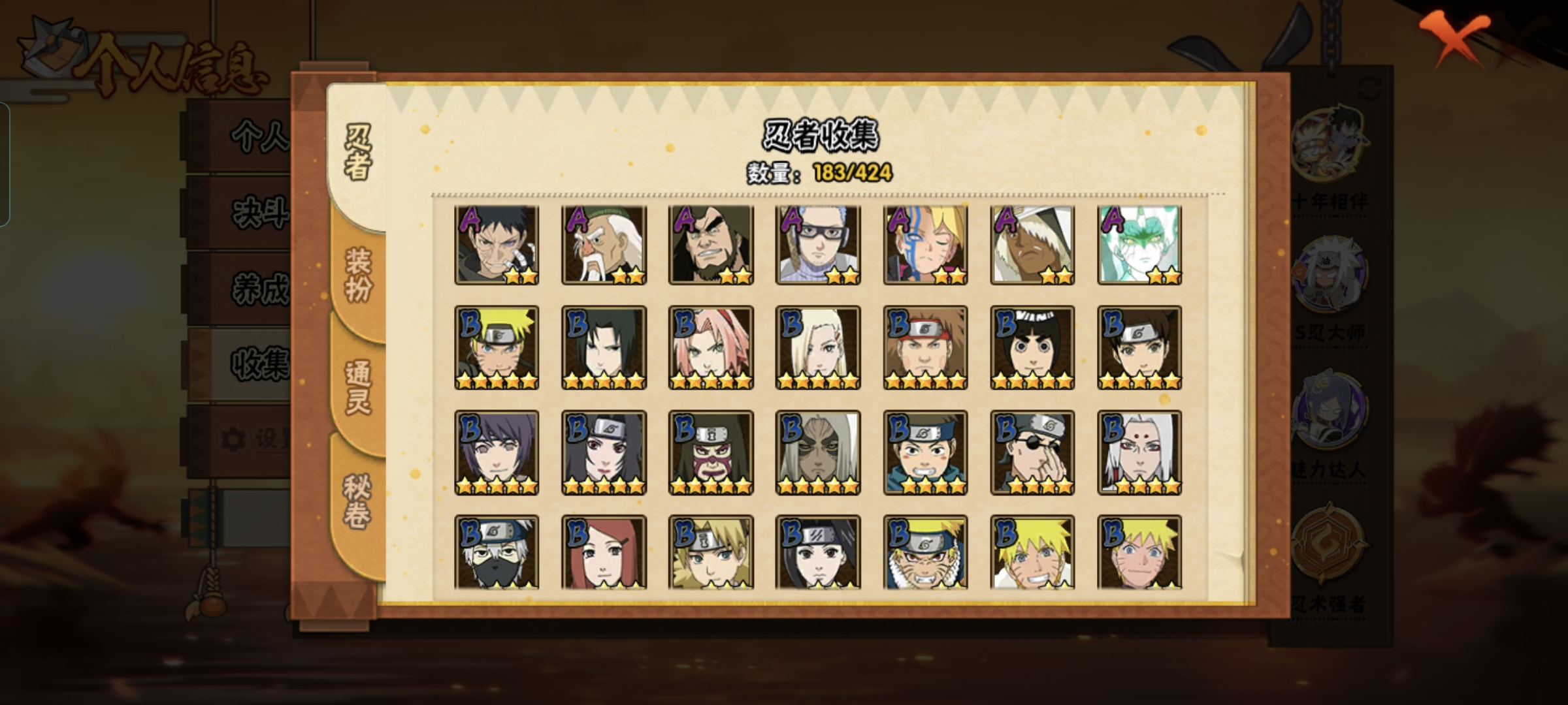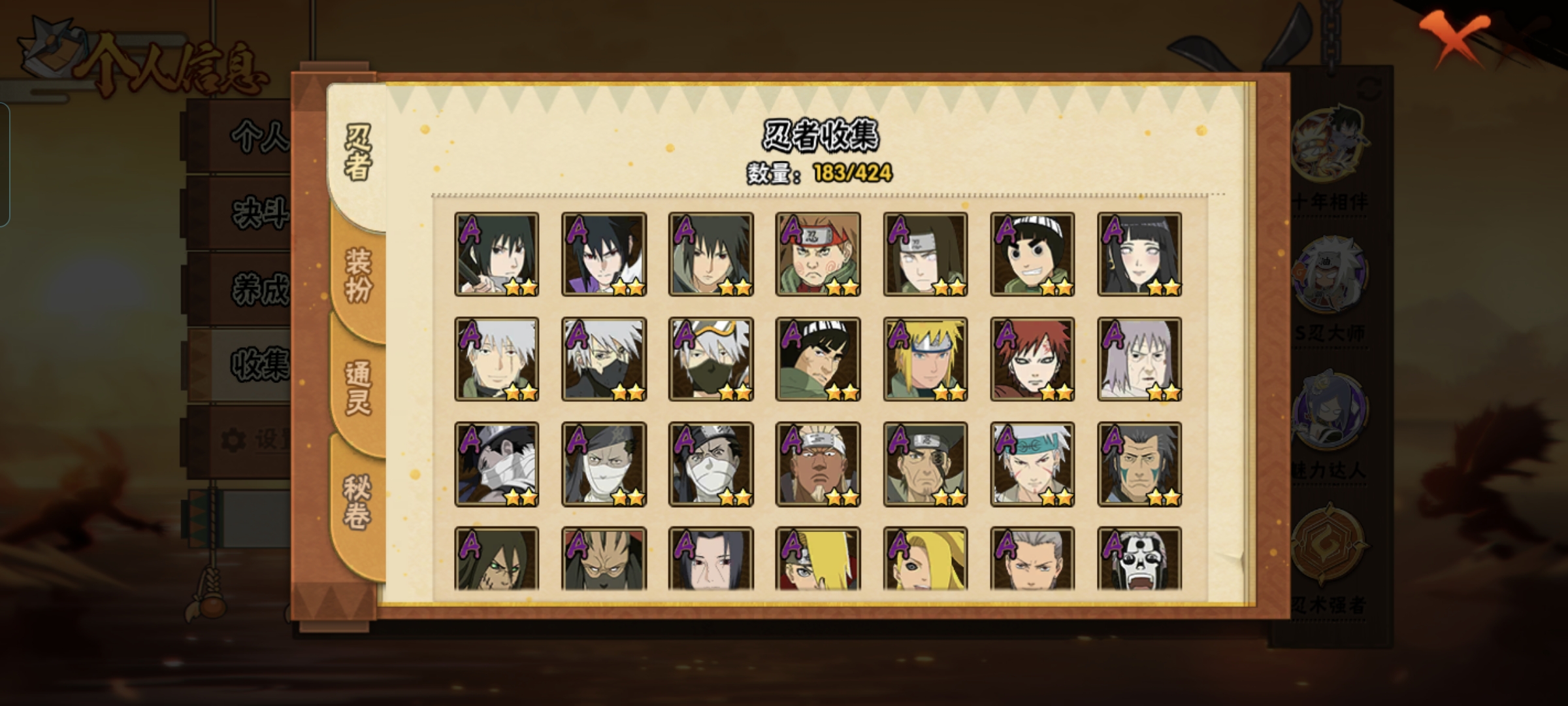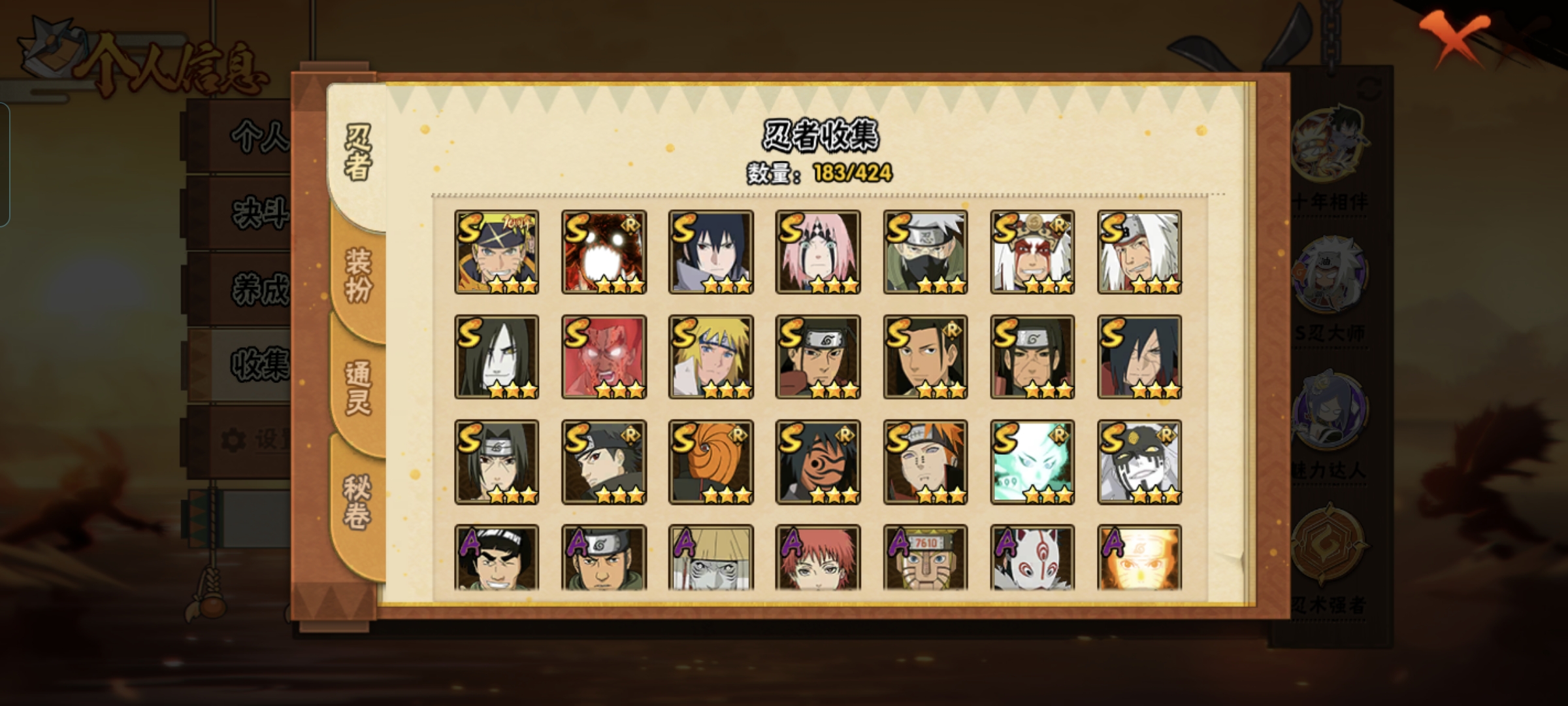 【s忍者21 a忍者42 通灵20】【安卓q-2999区-147级-v12-977万战力】【s级】波风水门 大筒木桃式 大筒木舍人「最终章」 千手柱间 春野樱「忍界大战」 迈特凯「死门」 神秘面具男「红夜之刃」 旗木卡卡西「须佐能乎」 自来也「传说中的三忍」 大蛇丸 佩恩「天道」 宇智波止水「须佐能乎」 千手柱间「木叶创立」 宇智波佐助「永恒万花筒」 千手柱间「秽土转生」 漩涡鸣人·宇智波佐助 宇