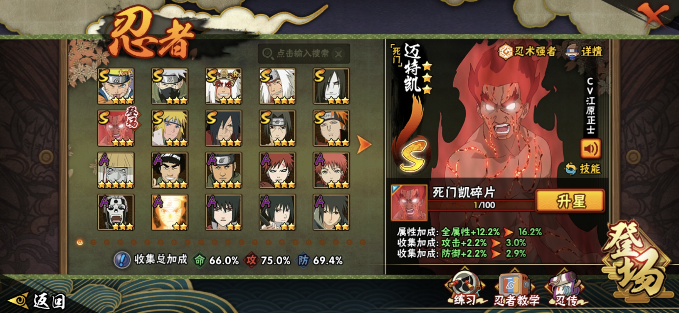 【s忍者10 a忍者26 通灵16】【安卓q-2269区-143级-v5-658万战力】【s级】自来也「舞之豪杰」 佩恩「天道」 波风水门 宇智波鼬「须佐能乎」 宇智波斑「秽土转生·解」 自来也「传说中的三忍」 旗木卡卡西「须佐能乎」 漩涡鸣人·宇智波佐助 迈特凯「死门」 大蛇丸【a级】猿飞阿斯玛 波风水门「青年」 日向宁次「忍界大战」 宇智波带土「暴怒」 蝎 漩涡博人「桃式显