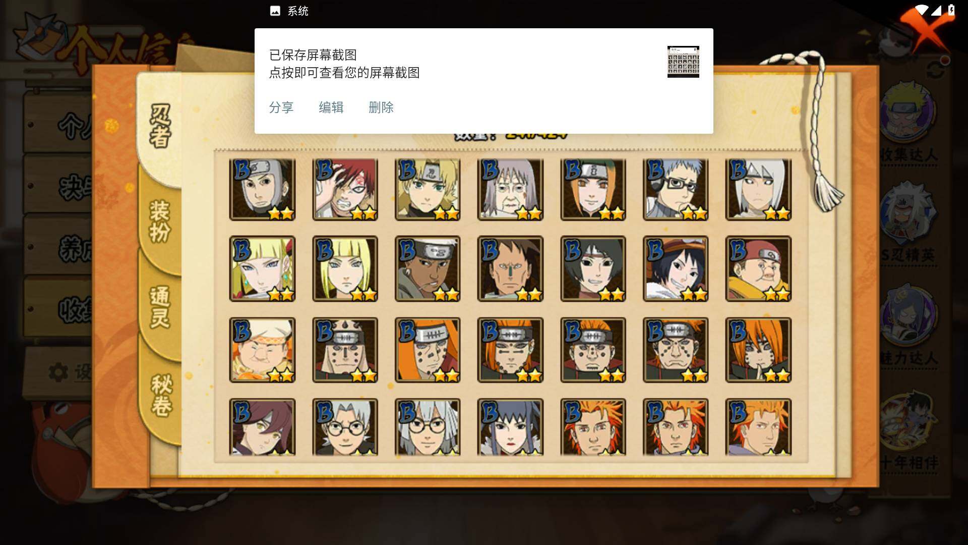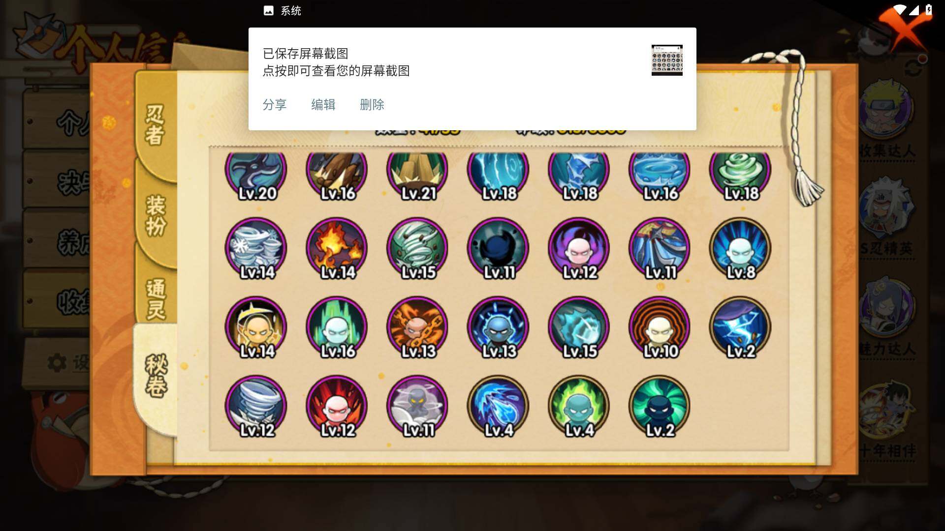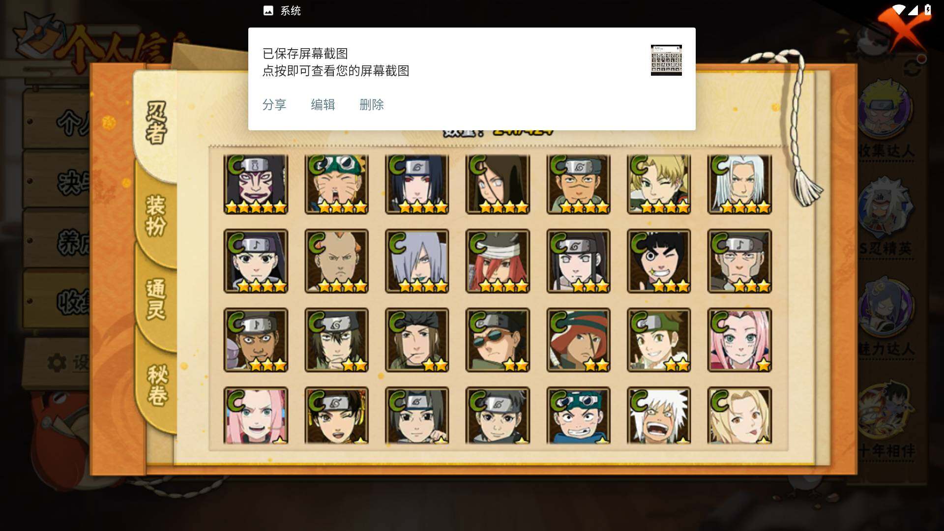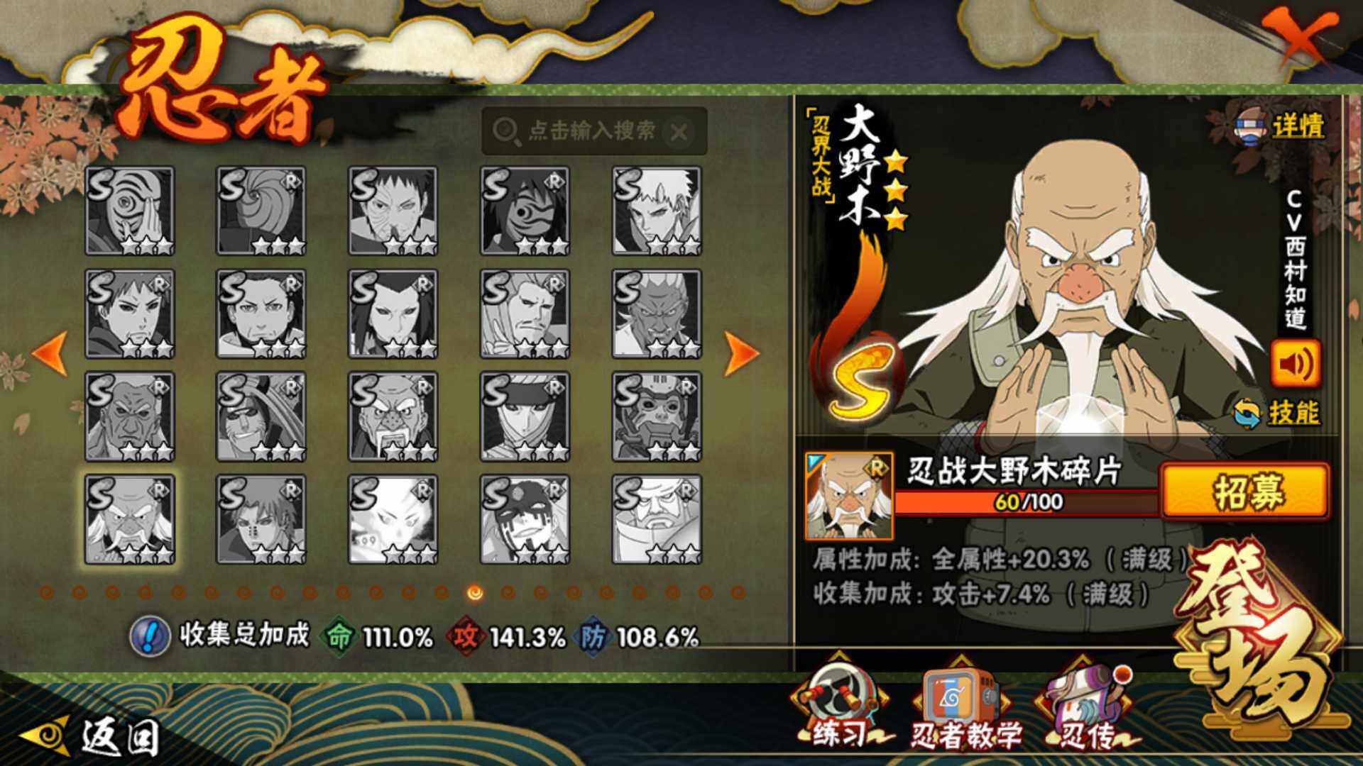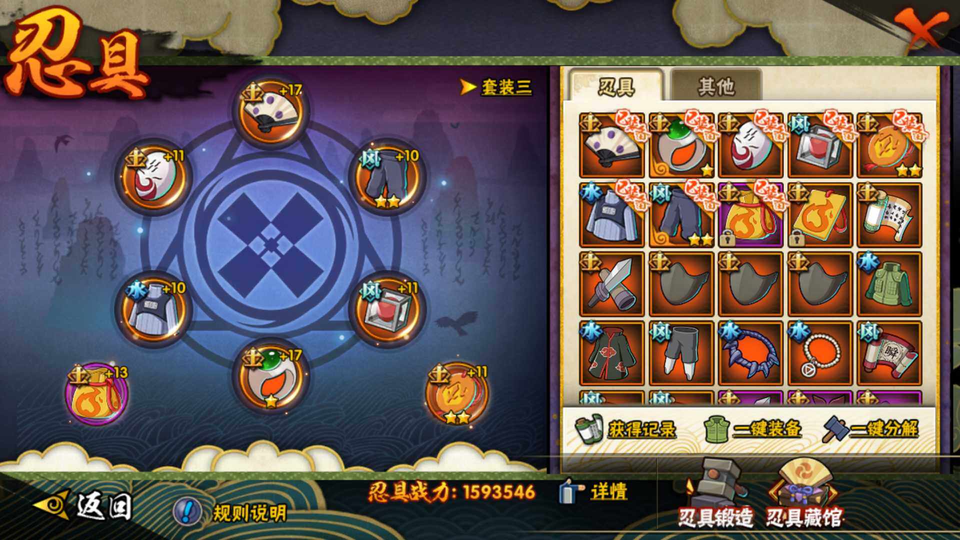 [16504037]v11 970万战力 18s 50a 忍战樱93片 传说自来也79片 十尾57片 半藏60片 忍战大野木60片 zp3457 【s级忍者】:长门「秽土转生」3星,猿飞日斩「秽土转生」3星,千手扉间「秽土转生」3星,宇智波鼬「须佐能乎」3星,艾「四代目雷影」3星,自来也3星,自来也「舞之豪杰」3星,大蛇丸3星,纲手「百豪」3星,千手柱间3星,千手扉间3星,波风水门3星,药师兜「仙人模式」3星,迈特凯「死门」3星,佩恩「天道」3星,宇智波佐助「永恒万花筒」3星,宇智波斑 「白面具」3星宇智波斑「白面具」,漩涡鸣人·宇智波佐助3星 【a级忍者】:艾「青年」2星,波风水门「青年」2星,波风水门「新春限定」2星,达鲁伊「博人传」2星,迪达拉2星,迪达拉「秽土转生」2星,大蛇丸「晓」2星,奇拉比2星,飞段4星,飞段「死司凭血」3星,干柿鬼鲛5星,漩涡博人「桃式显现」2星,漩涡鸣人「仙人模式」2星,漩涡鸣人「九尾查克拉」2星,迈特凯5星,旗木卡卡西「万花筒写轮眼」2星,旗木卡卡西「幻之真容」2星,桃地再不斩「漂泊武士」2星,桃地再不斩「秽土转生」2星,我爱罗「疾风传」4星,蝎4星,小南2星,小南「新春限定」2星,角都2星,角都「地怨虞」2星,角都「晓创生」2星,猿飞阿斯玛5星,猿飞阿斯玛「秽土转生」2星,宇智波止水2星,宇智波鼬2星,宇智波鼬「新春限定」2星,宇智波佐助「须佐能乎」2星,宇智波佐助「疾风传咒印」2星,宇智波佐助「万花筒写轮眼」2星,药师兜「半蛇斗篷」2星,照美冥「五代目水影」2星,绝2星,宇智波带土「暴怒」2星,长十郎「六代目水影」2星,神秘面具男「忍者之路」2星,佩恩·六道「漂泊浪客」2星,猿飞木叶丸「博人传」2星,黑土「博人传」2星,春野樱「百豪」2星,秋道丁次「忍界大战」2星,千代「近松十人卫」2星,不缘2星,地陆2星,宇智波泉奈2星,迈特凯「青春爆炸」2星