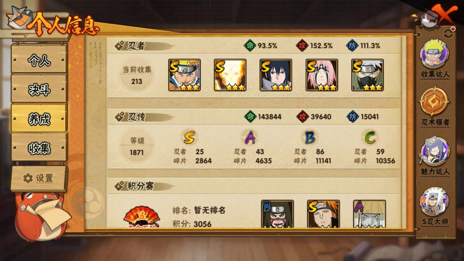 [16517206](可免费转苹果)v10,1176w战力,25s级忍者数-43a级忍者数。十尾带土42片,秽土半藏46片,热门a侠隐佐助,侠影纲手,新春鼬,夏日鼬,漂泊带土等.me2109 【s级忍者】:千手扉间「秽土转生」3星,千手柱间「秽土转生」3星,宇智波鼬「秽土转生」3星,宇智波斑「秽土转生」3星,宇智波斑「秽土转生·解」3星,春野樱「忍界大战」3星,宇智波带土「忍界大战」3星,艾「忍界大战」3星,宇智波鼬「须佐能乎」3星,旗木卡卡西「须佐能乎」3星,宇智波斑「木叶创立」3星,自来也3星,自来也「舞之豪杰」3星,大蛇丸3星,自来也「传说中的三忍」3星,纲手3星,猿飞日斩3星,波风水门3星,漩涡鸣人「九喇嘛连结」3星,迈特凯「死门」3星,佩恩「天道」3星,宇智波佐助「永恒万花筒」3星,宇智波斑 「白面具」3星宇智波斑「白面具」,波风水门「九喇嘛连结」3星,漩涡鸣人·宇智波佐助3星 【a级忍者】:长门「青年」2星,波风水门「青年」2星,达鲁伊「博人传」3星,迪达拉2星,大蛇丸「晓」2星,奇拉比2星,奇拉比「忍界大战」2星,飞段4星,飞段「死司凭血」2星,干柿鬼鲛5星,漩涡博人「桃式显现」2星,漩涡鸣人「仙人模式」2星,漩涡鸣人「九尾查克拉」2星,迈特凯5星,旗木卡卡西「幻之真容」2星,桃地再不斩「秽土转生」2星,我爱罗「疾风传」4星,蝎4星,蝎「绯流琥」2星,猿飞阿斯玛5星,猿飞日斩「火影继承人」2星,宇智波鼬2星,宇智波鼬「新春限定」2星,宇智波鼬「夏日限定」2星,宇智波佐助「须佐能乎」2星,宇智波佐助「万花筒写轮眼」2星,宇智波佐助「侠隐江湖」2星,照美冥「五代目水影」2星,日向宁次「忍界大战」2星,宇智波带土「漂泊浪客」2星,长十郎「六代目水影」2星,纲手「侠隐江湖」2星,李洛克「忍界大战」2星,猿飞木叶丸「博人传」2星,黑土「博人传」2星,春野樱「百豪」2星,秋道丁次「忍界大战」2星,千代「近松十人卫」2星,不缘2星,不风2星,宇智波泉奈2星,巳月「仙人模式」2星,迈特凯「青春爆炸」2星