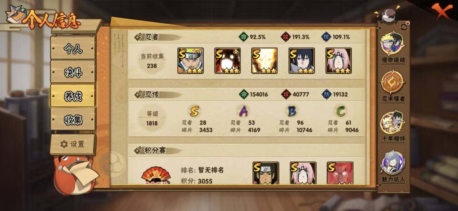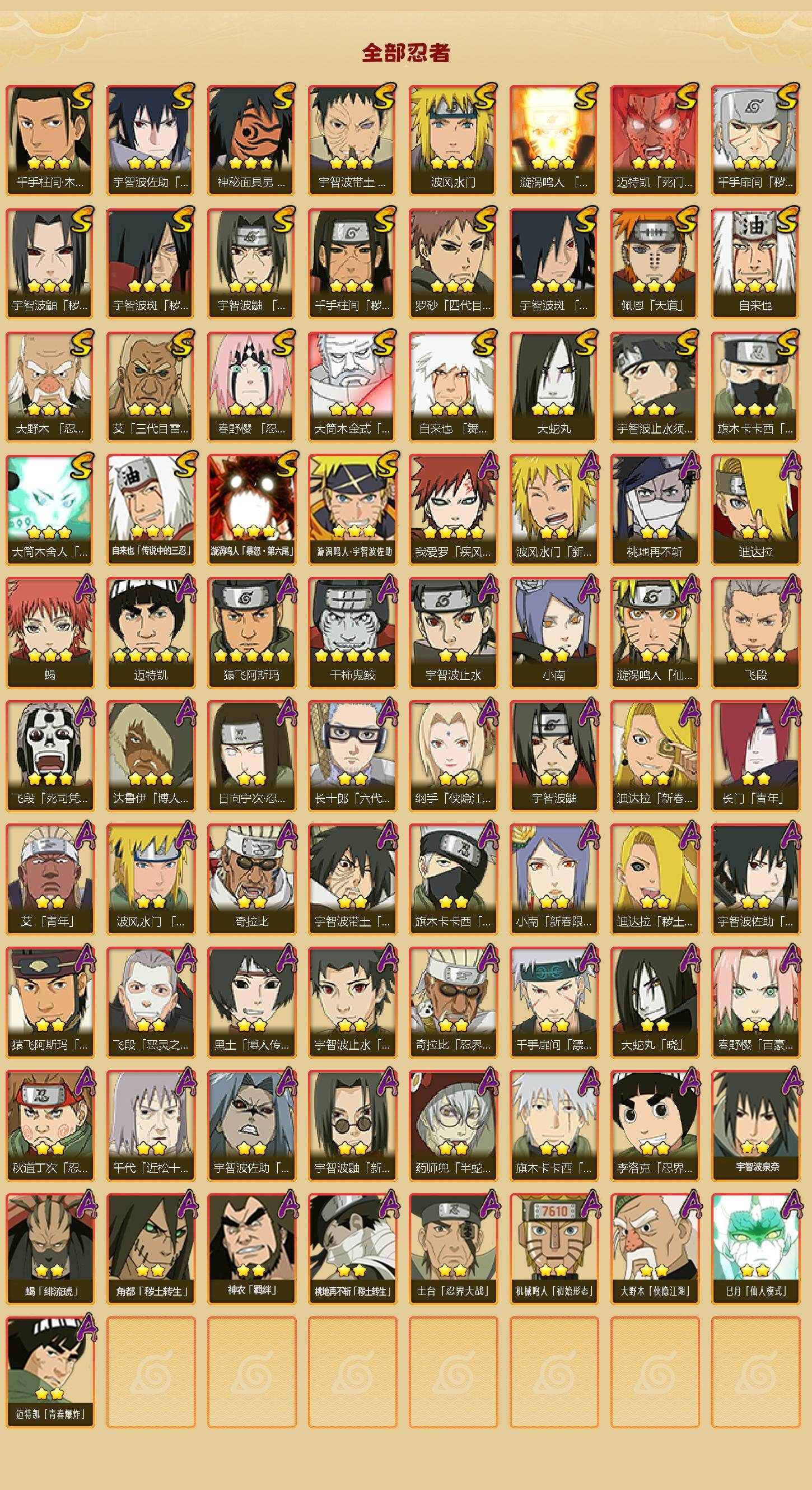 【hyz2997】v13/战力1125w/s忍28/a忍53/3星宇智波斑「秽土转生」/2星波风水门「新春限定」/2星大野木「侠隐江湖」/2星旗木卡卡西「忍界大战」/2星纲手「侠隐江湖」/2星宇智波止水/5星猿飞阿斯玛/3星旗木卡卡西「须佐能乎」/3星蝎/5星迈特凯/2星宇智波鼬「新春限定」/3星自来也/2星奇拉比「忍界大战」/3星千手扉间「秽土转生」/3星千手柱间「木叶创立」/3星罗砂「四代目风影」/2星长十郎「六代目水影」/2星蝎「绯流琥」/3星漩涡鸣人「暴怒·第六尾」/2星桃地再不斩「秽土转生」/2星春野樱「百豪」/3星迈特凯「死门」/3星自来也「传说中的三忍」/2星飞段「恶灵之影」/2星宇智波带土「暴怒」/2星黑土「博人传」/2星迪达拉「秽土转生」/2星药师兜「半蛇斗篷」/2星神农「羁绊」/3星飞段「死司凭血」/3星春野樱「忍界大战」/2星迪达拉/4星我爱罗「疾风传」/2星小南/2星大蛇丸「晓」/2星日向宁次「忍界大战」/2星宇智波鼬/3星宇智波佐助「永恒万花筒」/3星大筒木金式/3星宇智波鼬「秽土转生」/2星长门「青年」/2星桃地再不斩/2星宇智波佐助「疾风传咒印」/3星宇智波带土「忍界大战」/3星佩恩「天道」/3星漩涡鸣人·宇智波佐助/3星波风水门/3星大筒木舍人「最终章」/3星漩涡鸣人「九喇嘛连结」/2星秋道丁次「忍界大战」/2星角都「秽土转生」/3星艾「三代目雷影」/3星千手柱间「秽土转生」/3星达鲁伊「博人传」/2星迪达拉「新春限定」/2星李洛克「忍界大战」/2星土台「忍界大战」/2星波风水门「青年」/3星自来也「舞之豪杰」/2星千手扉间「漂泊武士」/3星神秘面具男「红夜之刃」/2星小南「新春限定」/3星宇智波止水「须佐能乎」/4星飞段/2星奇拉比/2星漩涡鸣人「仙人模式」/2星宇智波泉奈/2星宇智波止水「新春限定」/2星旗木卡卡西「幻之真容」/2星巳月「仙人模式」/3星宇智波斑「木叶创立」/3星大蛇丸/2星艾「青年」/3星大野木「忍界大战」/2星迈特凯「青春爆炸」/2星宇智波佐助「须佐能乎」/2星猿飞阿斯玛「七夕限定」/5星干柿鬼鲛/2星机械鸣人「初始形态」/2星千代「近松十人卫」/3星宇智波鼬「须佐能乎」