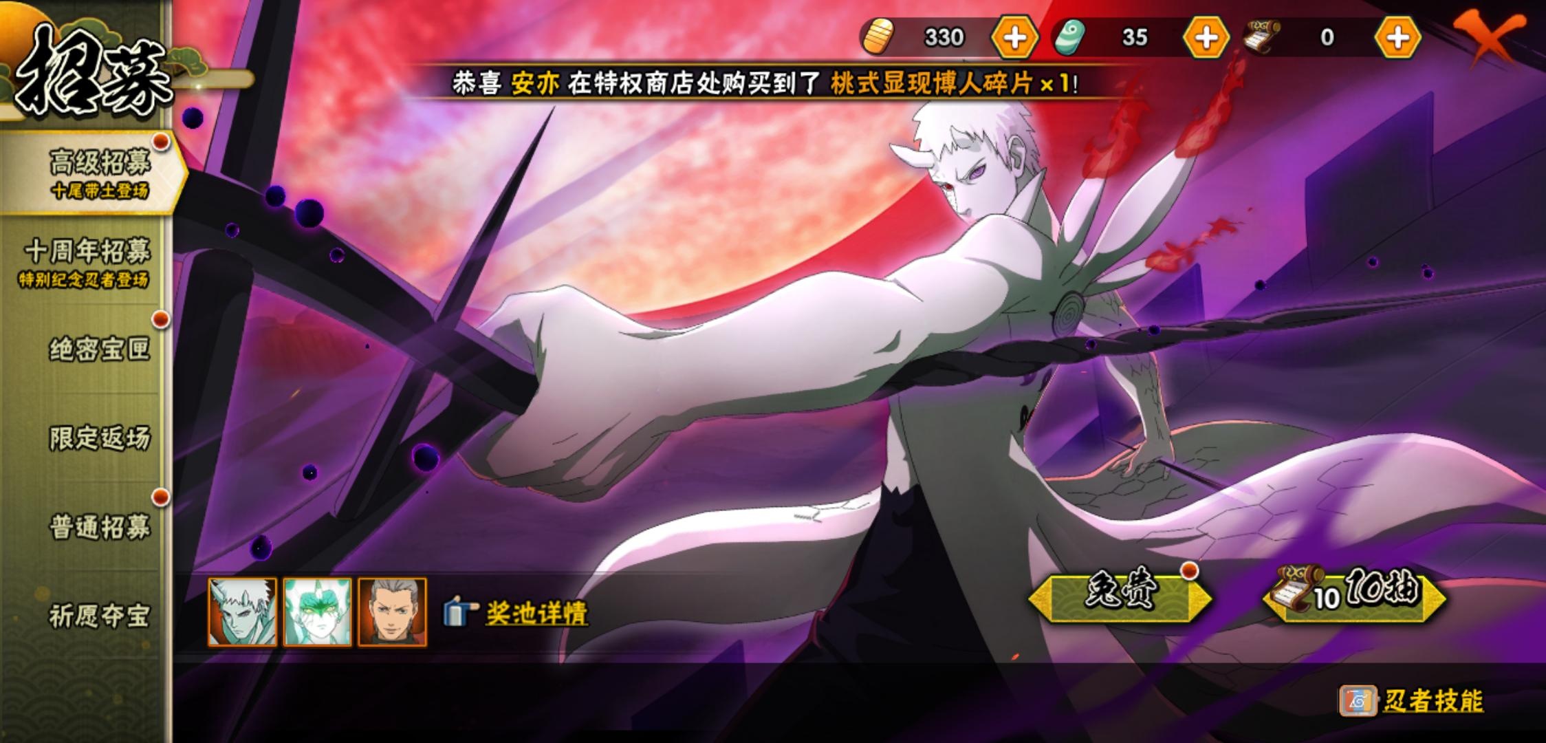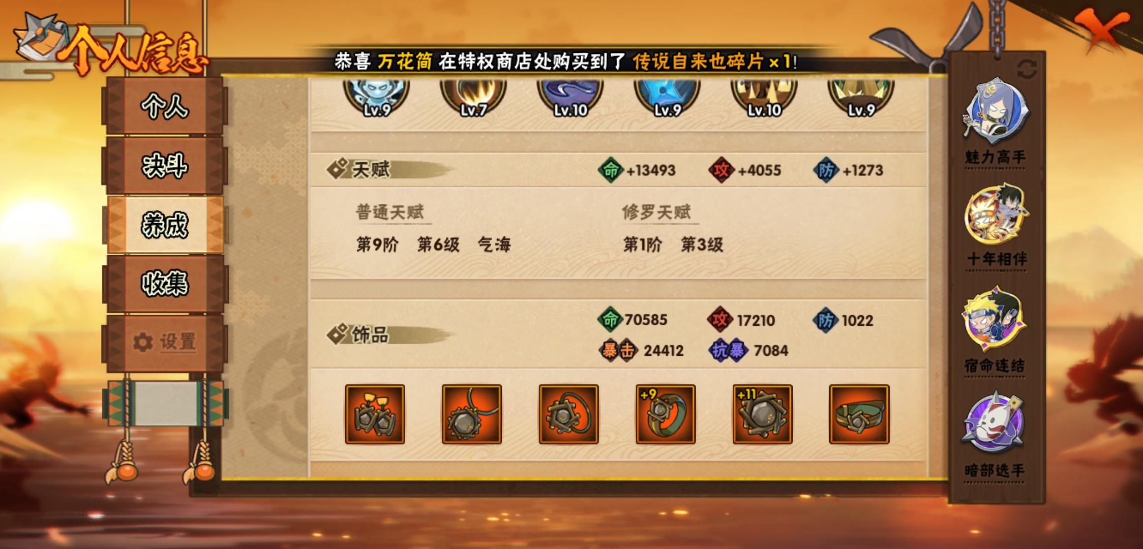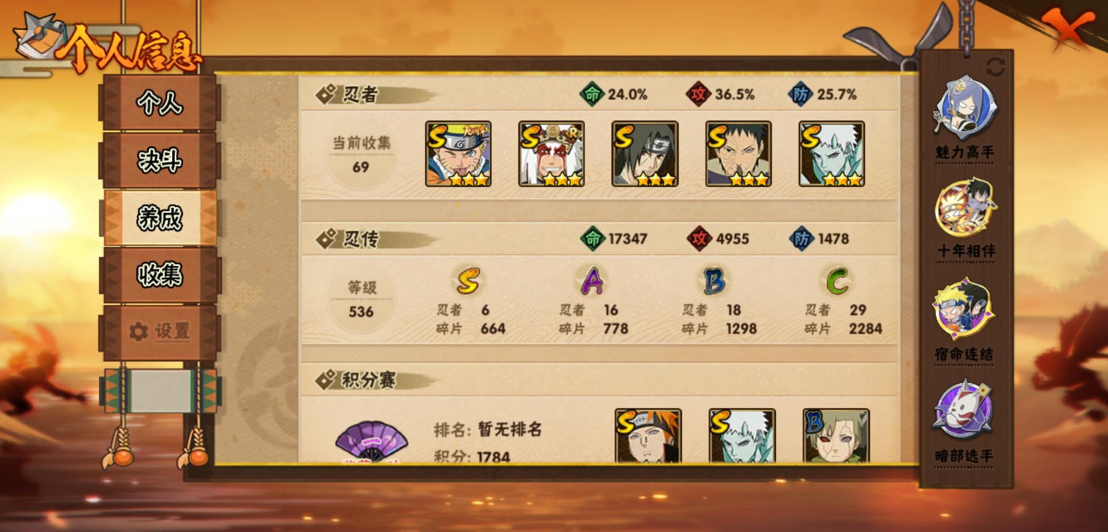 【火影忍者】【lyhy11420】战斗力:232w;段位:中忍3阶;本服排名:1866;vip:v7级;s忍:6个;a忍:16个;通灵兽:11个,s忍:十尾人柱力宇智波带土|忍界大战宇智波带土|天道佩恩|漩涡鸣人宇智波佐助|舞之豪杰自来也|须佐能乎宇智波鼬__a忍:青春爆炸迈特凯|仙人模式巳月|幻之真容旗木卡卡西|火之意志继承者卑留呼|青年波风水门|百豪春野樱|忍界大战秋道丁次|黑绝|迪达拉(普通)|飞段(普通)|迈特凯(普通)|宇智波鼬(普通)|干柿鬼鲛(普通)|蝎(普通)|猿飞阿斯玛(普通)|宇智波泉奈__通灵兽:忍犬(普通)|蓝蛇|蛤蟆吉|忍龟|镰鼬|猿魔|山椒鱼|蜃|蛤蟆仙人|鲛鲨|砂之守鹤