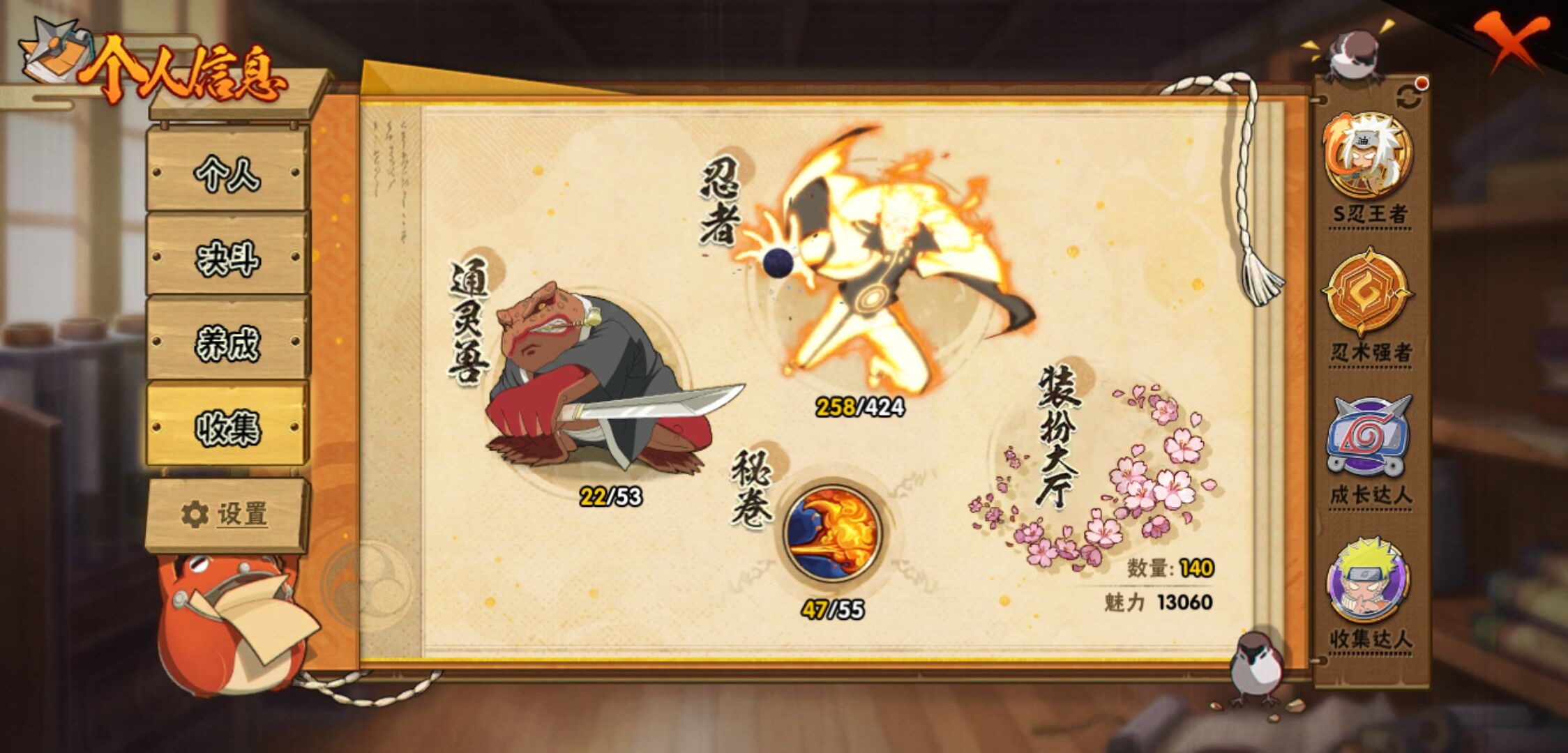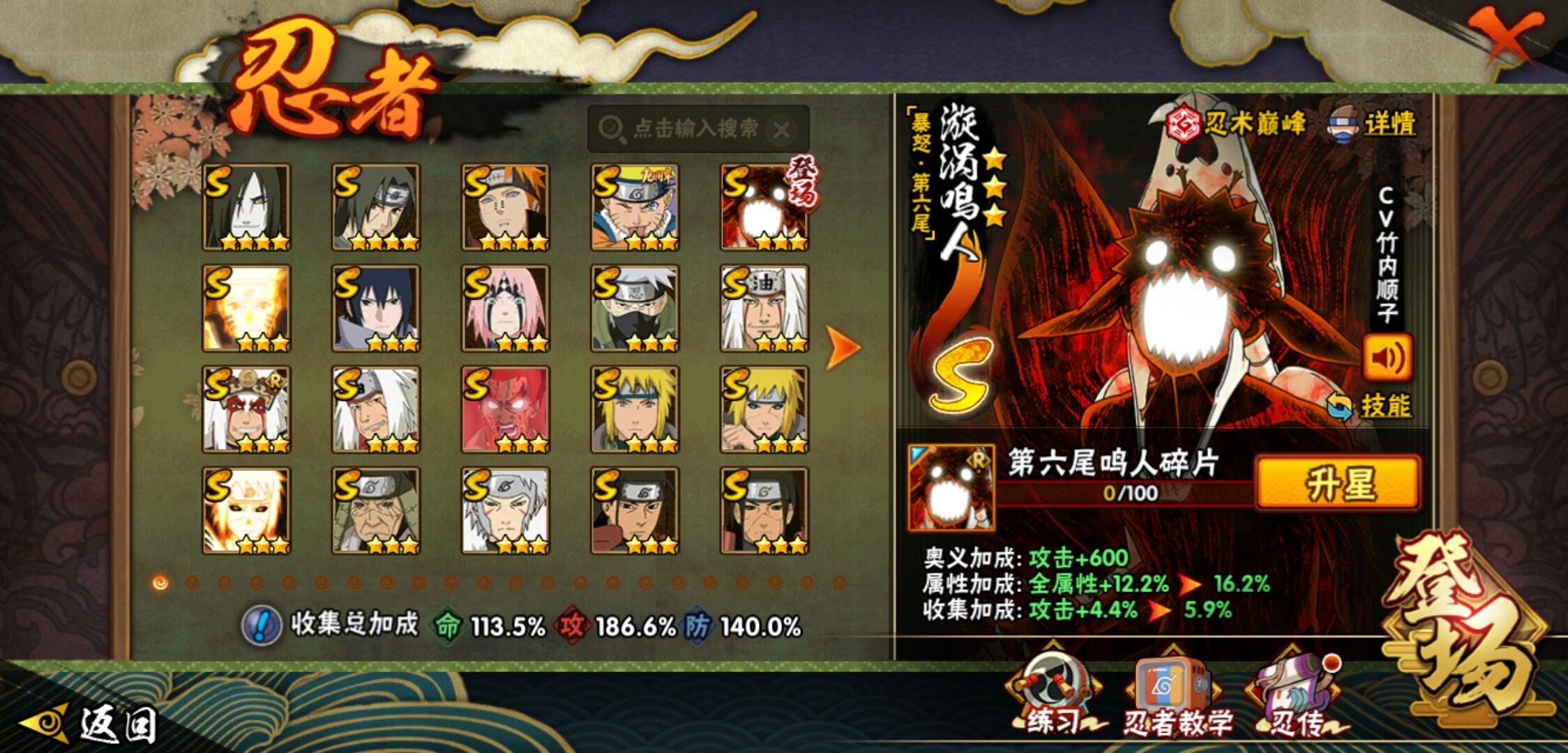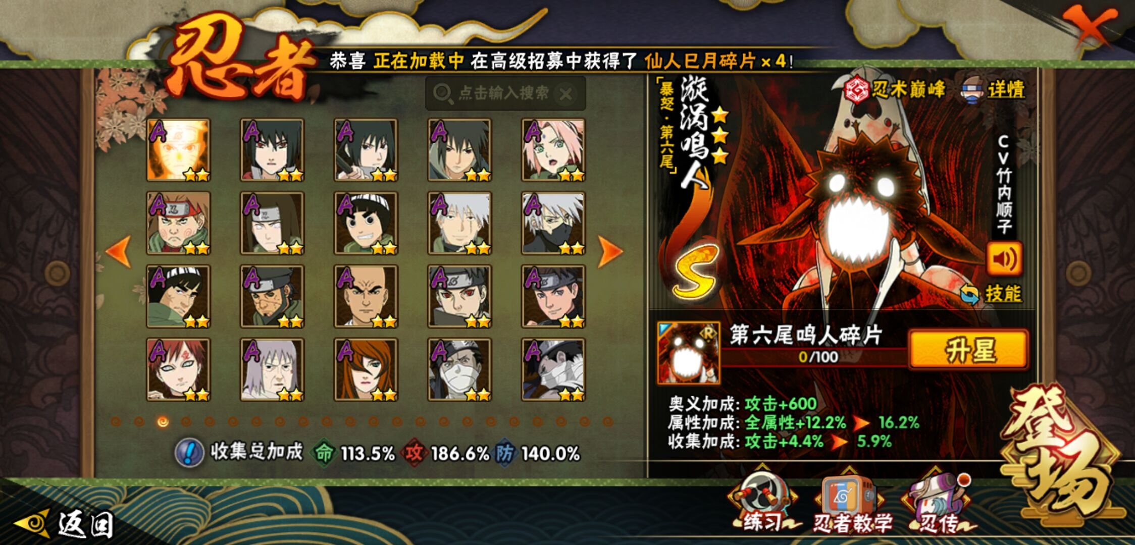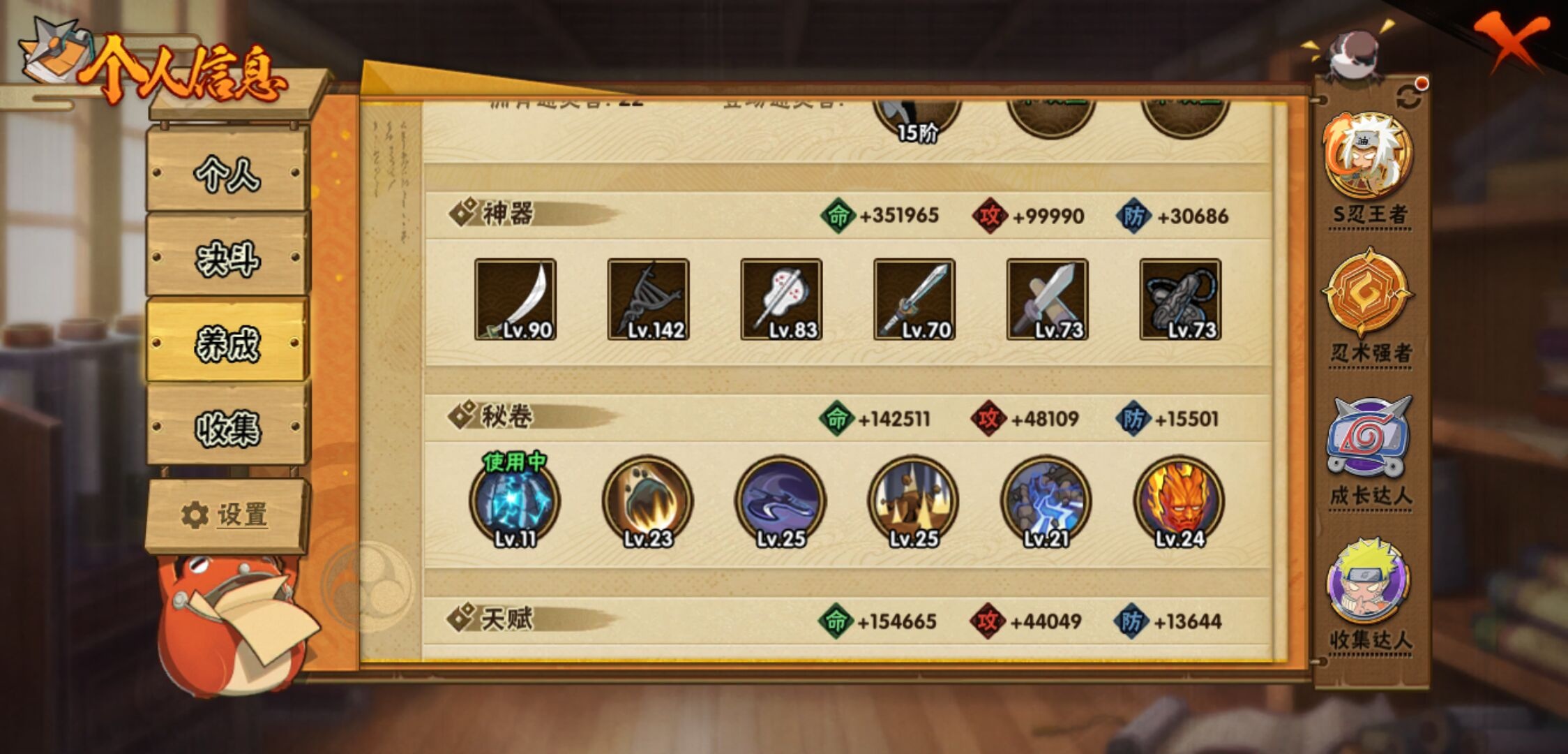 【火影忍者】【lyhy11419】战斗力:1329w;段位:中忍3阶;本服排名:567;vip:v10级;s忍:30个;a忍:56个;通灵兽:19个,s忍:秽土转生解宇智波斑|白面具宇智波斑|忍界大战宇智波带土|须佐能乎旗木卡卡西|超佩恩天道|九喇嘛连结波风水门|天道佩恩 4星|传说中的三忍自来也|漩涡鸣人宇智波佐助|秽土转生千手柱间|木叶创立宇智波斑|秽土转生宇智波鼬|永恒万花筒宇智波佐助|忍界大战艾|舞之豪杰自来也|大蛇丸(普通) 4星|波风水门|秽土转生波风水门|千手扉间(普通)|千手柱间(普通)|秽土转生宇智波斑|宇智波斑(普通)|须佐能乎宇智波鼬 4星|神秘面具男(普通)|死门迈特凯|忍界大战春野樱|九喇嘛连结漩涡鸣人|秽土转生猿飞日斩|自来也(普通)|暴怒第六尾漩涡鸣人__a忍:青春爆炸迈特凯|仙人模式巳月|幻之真容旗木卡卡西|忍界大战李洛克|忍界大战日向宁次|四代目土影黑土|木叶上忍猿飞木叶丸|青年长门|秽土转生迪达拉|宇智波止水(普通)|忍界大战奇拉比|青年波风水门 3星|青年艾|漂泊武士千手扉间|近松十人卫千代|晓创生角都|半蛇斗篷药师兜|须佐能乎宇智波佐助|九尾查克拉漩涡鸣人|晓大蛇丸|地陆|火影继承人猿飞日斩|百豪春野樱|忍界大战秋道丁次|忍界大战我爱罗|秽土转生猿飞阿斯玛|奇拉比(普通)|万花筒写轮眼宇智波佐助|五代目水影照美冥|五代目雷影达鲁伊|死司凭血飞段|角都(普通)|疾风传我爱罗 5星|迪达拉(普通) 3星|飞段(普通) 5星|小南(普通)|漂泊浪客小南|仙人模式漩涡鸣人|万花筒写轮眼旗木卡卡西|迈特凯(普通) 5星|宇智波鼬(普通)|夏日限定宇智波鼬|干柿鬼鲛(普通) 5星|桃地再不斩|秽土转生桃地再不斩|蝎(普通) 3星|绯流琥蝎|猿飞阿斯玛(普通) 5星|桃式显现漩涡博人|六代目水影长十郎|不缘|宇智波泉奈|羁绊神农|忍界大战土台|初始形态机械鸣人|侠隐江湖大野木__通灵兽:忍犬(普通)|蓝蛇|蛤蟆吉|忍龟|镰鼬|猿魔|山椒鱼|蜃|蛤蟆仙人|鲛鲨|蛤蟆健|乌鸦(普通)|蛤蟆龙|蛤蟆广|砂之守鹤|蛞蝓(普通)|梦貘|鹰|蜘蛛1
