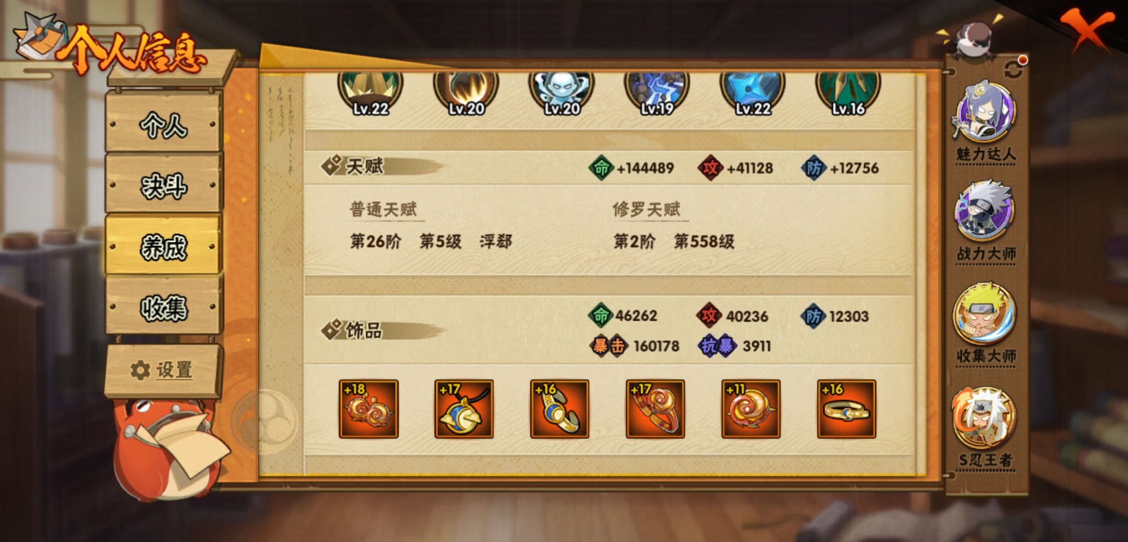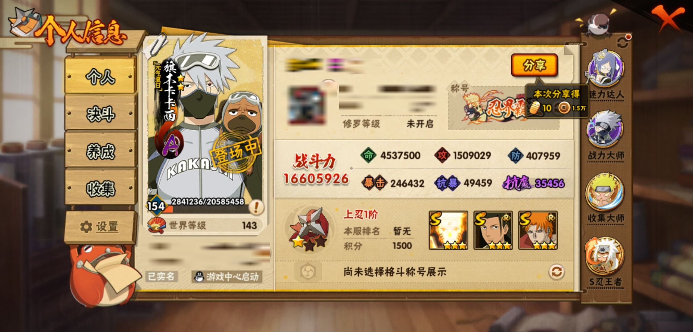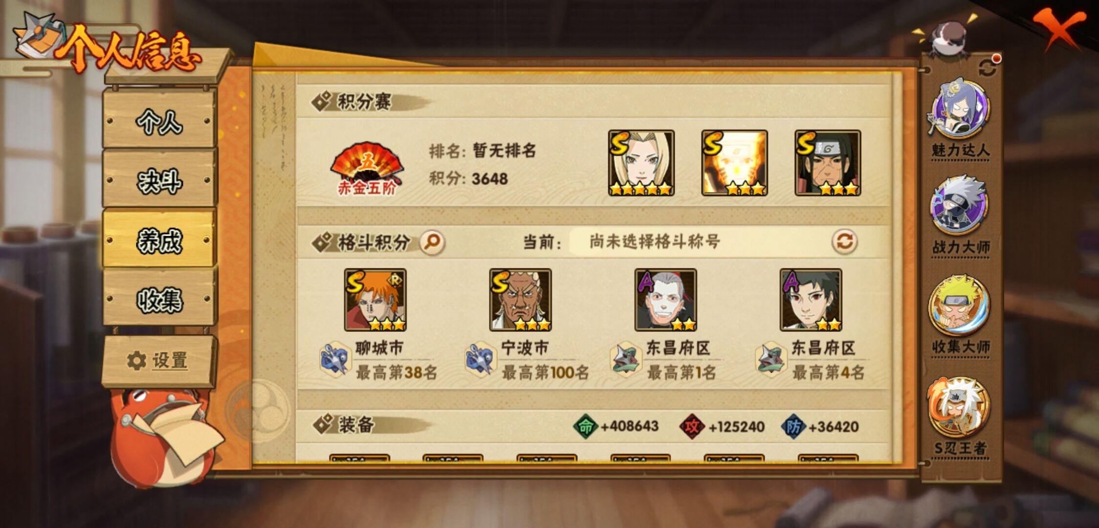 【火影忍者】【lyhy11437】战斗力:1660w;段位:上忍1阶;本服排名:104;vip:v13级;s忍:37个;a忍:63个;通灵兽:23个,s忍:秽土转生解宇智波斑|白面具宇智波斑|忍界大战宇智波带土|须佐能乎旗木卡卡西|秽土转生千手扉间|超佩恩天道|九喇嘛连结波风水门|天道佩恩|传说中的三忍自来也|漩涡鸣人宇智波佐助|须佐能乎宇智波止水|秽土转生千手柱间|木叶创立宇智波斑|秽土转生宇智波鼬|永恒万花筒宇智波佐助|最终章大筒木舍人|木叶创立千手柱间|忍界大战艾|舞之豪杰自来也|大蛇丸(普通)|纲手(普通) 5星|波风水门|秽土转生波风水门|须佐能乎宇智波鼬|红夜之刃神秘面具男|秽土转生三代目风影|四代目雷影艾|四代目风影罗砂|死门迈特凯|忍界大战大野木|忍界大战春野樱|九喇嘛连结漩涡鸣人|博人传大筒木金式|大筒木桃式|猿飞日斩(普通)|秽土转生猿飞日斩|自来也(普通)__a忍:青春爆炸迈特凯|仙人模式巳月|侠隐江湖纲手|幻之真容旗木卡卡西|忍界大战李洛克|漂泊浪客佩恩六道|秽土转生角都|忍界大战日向宁次|四代目土影黑土|火之意志继承者卑留呼|青年长门|忍者之路神秘面具男|秽土转生迪达拉|宇智波止水(普通)|新春限定宇智波止水|元气夏日旗木卡卡西|不风|忍界大战奇拉比|青年波风水门|青年艾|漂泊武士千手扉间|鲛肌融合干柿鬼鲛|忍界大战旗木卡卡西|漂泊武士桃地再不斩|近松十人卫千代|忍界大战迈特凯|须佐能乎宇智波佐助|恶灵之影飞段|暴怒宇智波带土|晓大蛇丸|百豪春野樱|忍界大战秋道丁次|忍界大战我爱罗|秽土转生猿飞阿斯玛|新春限定波风水门|夏日泳装小南|新春限定宇智波鼬|奇拉比(普通)|万花筒写轮眼宇智波佐助|五代目水影照美冥|五代目雷影达鲁伊|死司凭血飞段 3星|疾风传我爱罗 4星|迪达拉(普通) 3星|飞段(普通) 4星|小南(普通)|漂泊浪客小南|迈特凯(普通) 5星|宇智波鼬(普通) 3星|干柿鬼鲛(普通) 5星|秽土转生桃地再不斩|桃地再不斩|蝎(普通) 4星|绯流琥蝎|猿飞阿斯玛(普通) 5星|桃式显现漩涡博人|最终章日向雏田|六代目水影长十郎|宇智波泉奈|羁绊神农|忍界大战土台|初始形态机械鸣人|侠隐江湖大野木__通灵兽:忍犬(普通)|蓝蛇|砂之守鹤|蛤蟆吉|忍龟|镰鼬|猿魔|山椒鱼|蛞蝓(普通)|蜃|蛤蟆仙人|鲛鲨|蛤蟆健|熊猫|乌鸦(普通)|螃蟹|蛤蟆龙|蛤蟆广|蛞蝓侠隐江湖|梦貘|辛牙|鹰|蜘蛛