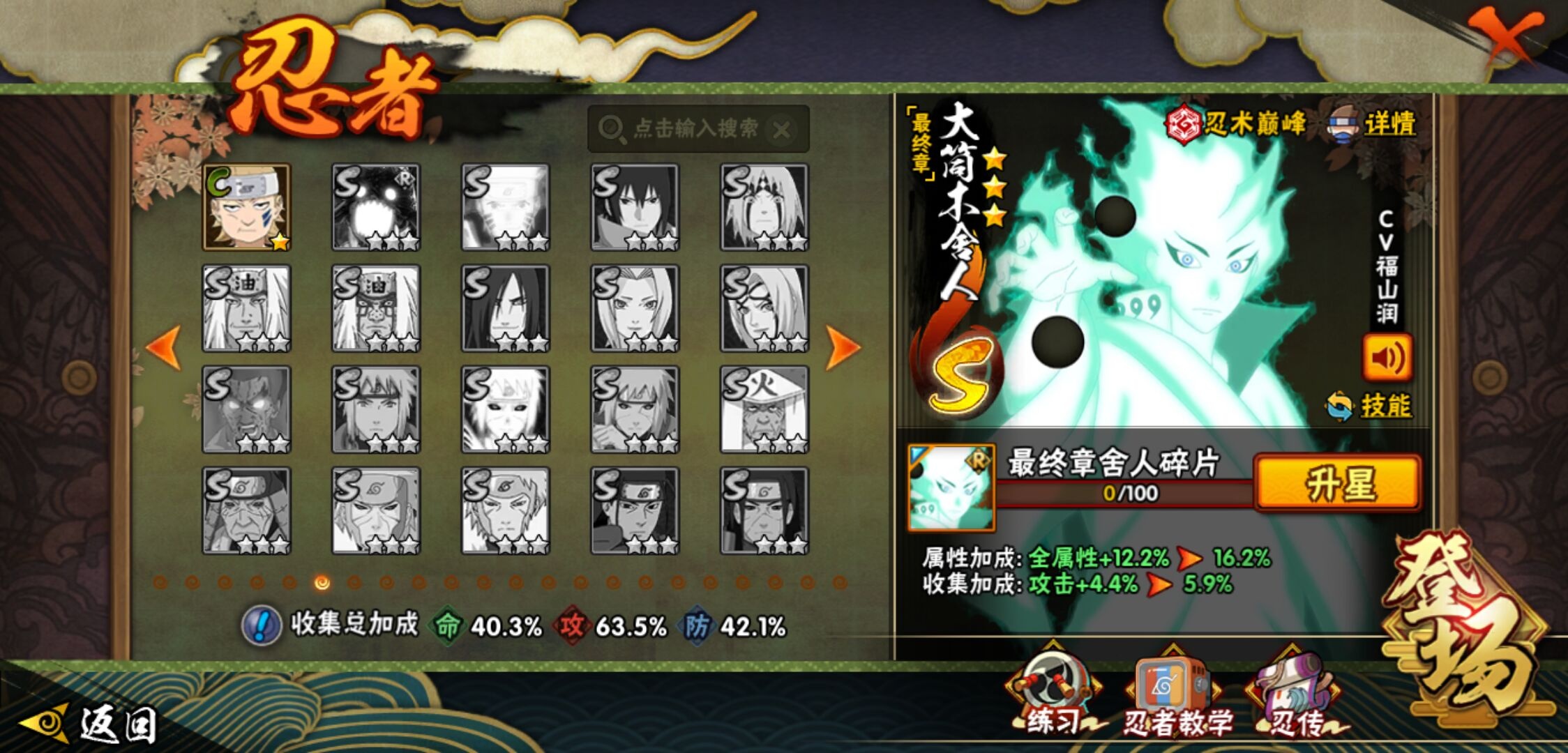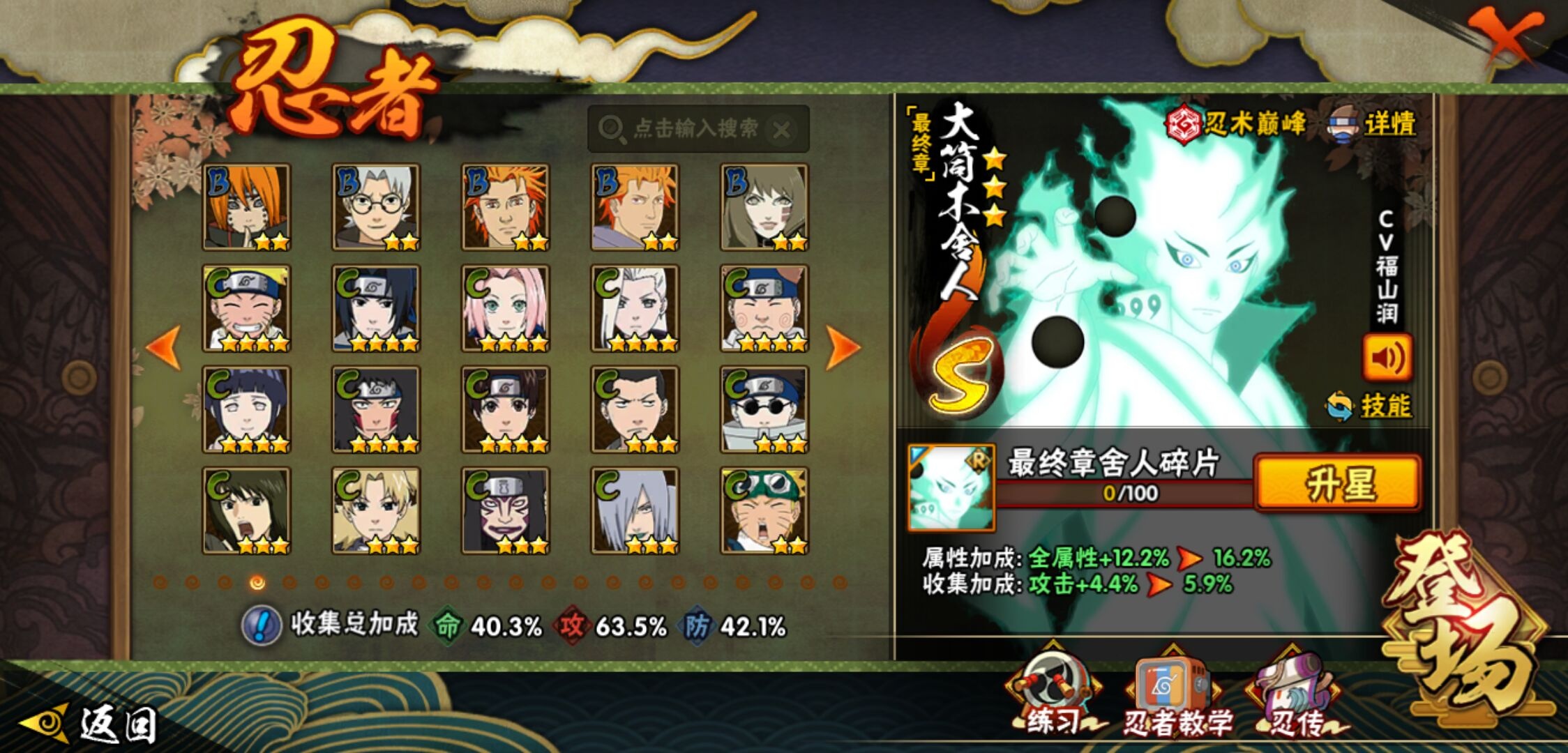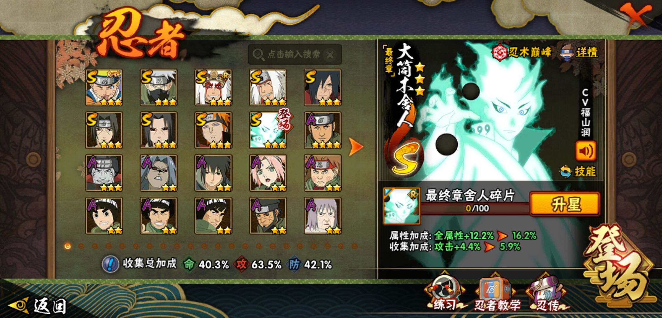 【火影忍者】【lyhy11449】战斗力:406w;段位:上忍1阶;本服排名:1012;vip:v6级;s忍:9个;a忍:19个;通灵兽:13个,s忍:秽土转生解宇智波斑|须佐能乎旗木卡卡西|天道佩恩|传说中的三忍自来也|漩涡鸣人宇智波佐助|秽土转生宇智波鼬|最终章大筒木舍人|舞之豪杰自来也|须佐能乎宇智波鼬__a忍:青春爆炸迈特凯|忍界大战李洛克|秽土转生角都|近松十人卫千代|百豪春野樱|忍界大战秋道丁次|秽土转生猿飞阿斯玛|疾风传咒印宇智波佐助|迪达拉(普通)|飞段(普通)|迈特凯(普通)|宇智波鼬(普通)|干柿鬼鲛(普通) 3星|绯流琥蝎|蝎(普通)|猿飞阿斯玛(普通) 4星|不缘|宇智波泉奈|侠隐江湖大野木__通灵兽:忍犬(普通)|蓝蛇|蛤蟆吉|忍龟|砂之守鹤|镰鼬|猿魔|山椒鱼|蜃|蛤蟆仙人|鲛鲨|蛤蟆健|乌鸦(普通)