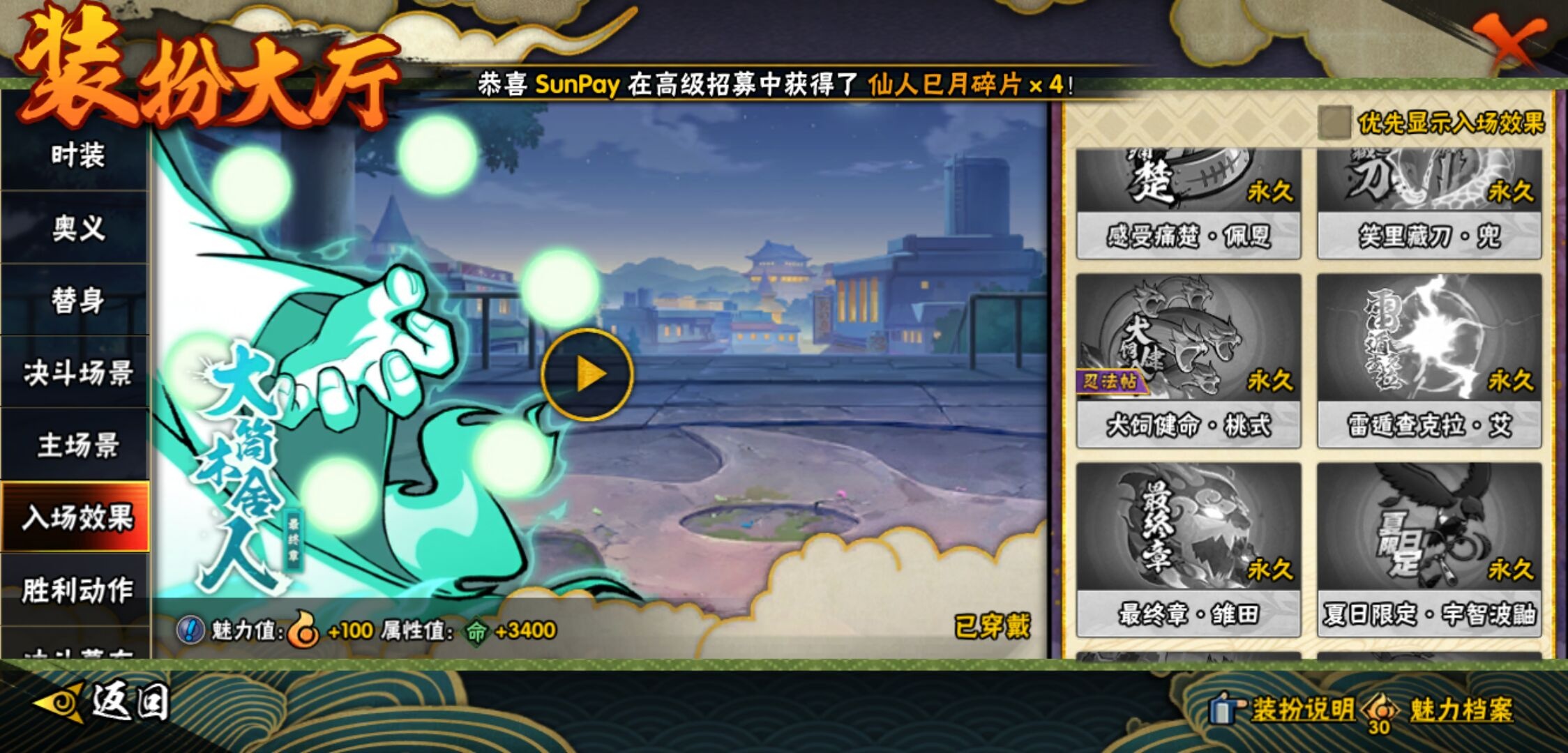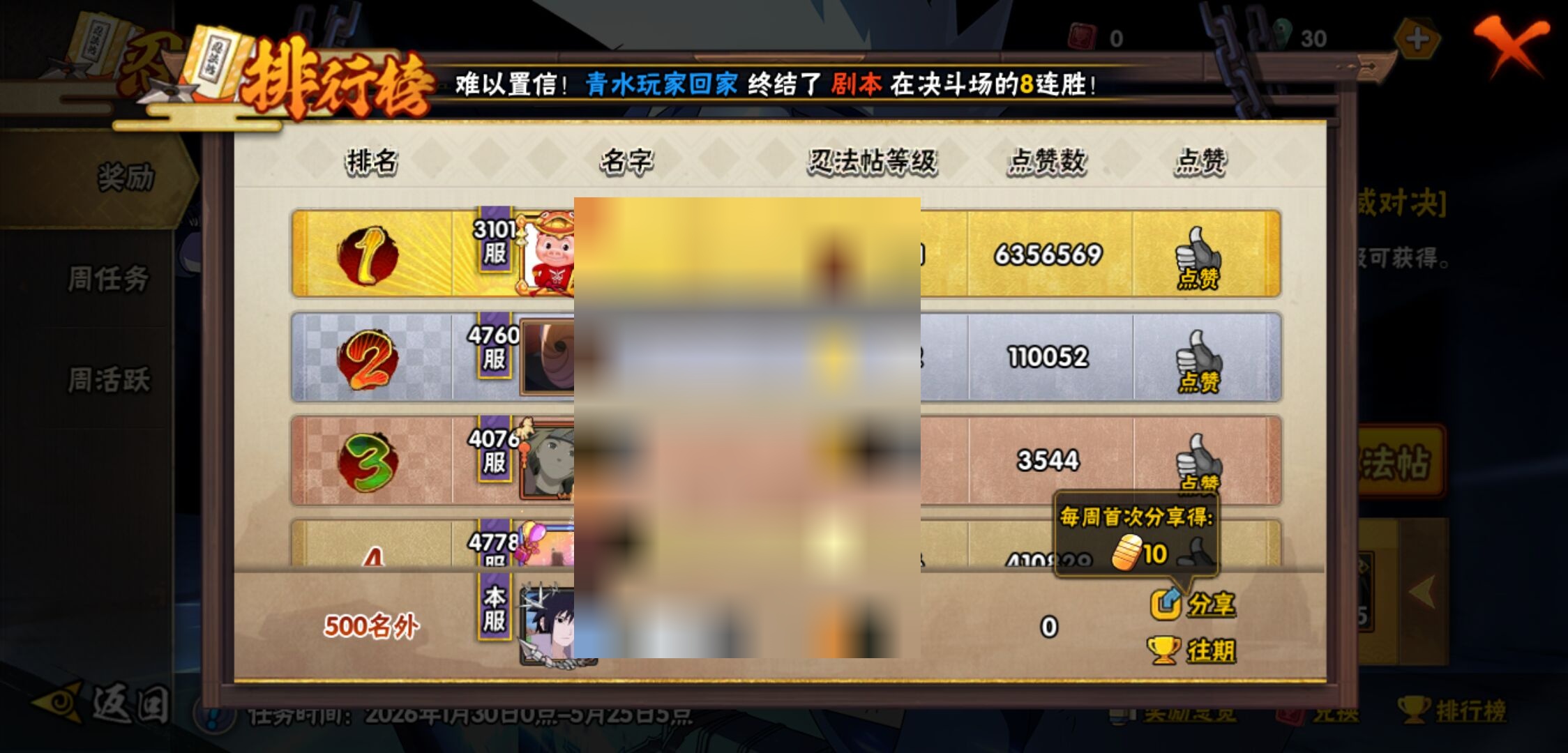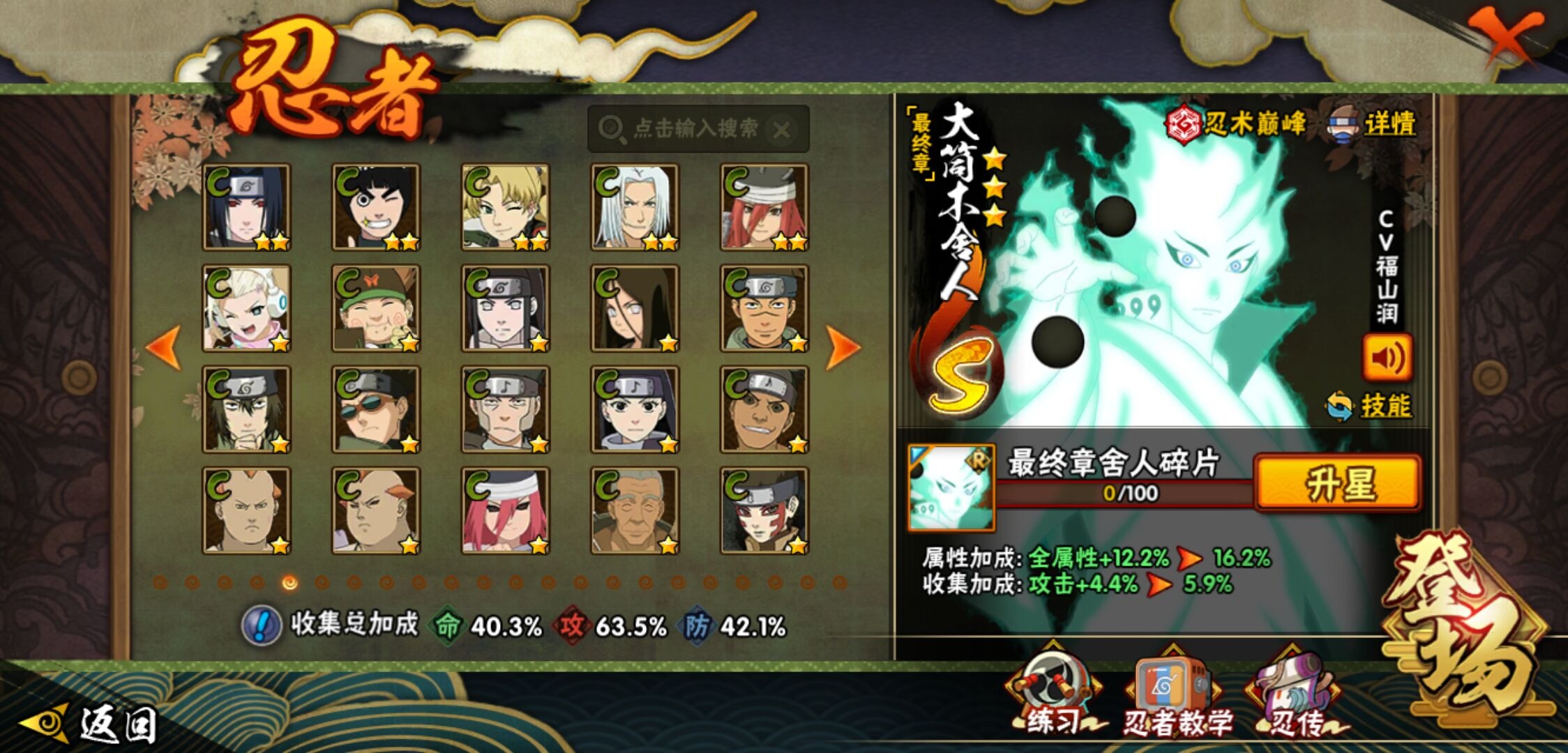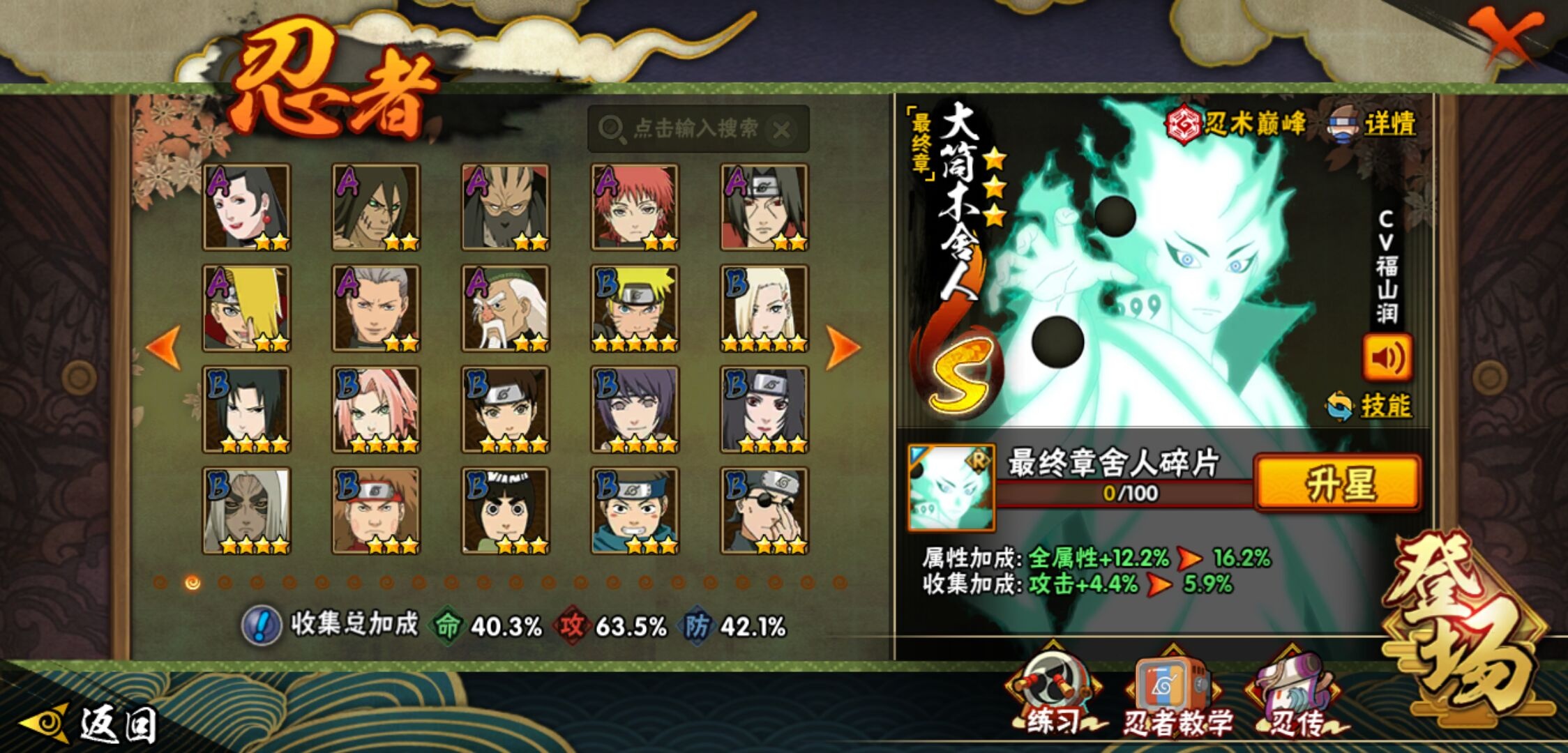 【火影忍者】【lyhy11449】战斗力:406w;段位:上忍1阶;本服排名:1012;vip:v6级;s忍:9个;a忍:19个;通灵兽:13个,s忍:秽土转生解宇智波斑|须佐能乎旗木卡卡西|天道佩恩|传说中的三忍自来也|漩涡鸣人宇智波佐助|秽土转生宇智波鼬|最终章大筒木舍人|舞之豪杰自来也|须佐能乎宇智波鼬__a忍:青春爆炸迈特凯|忍界大战李洛克|秽土转生角都|近松十人卫千代|百豪春野樱|忍界大战秋道丁次|秽土转生猿飞阿斯玛|疾风传咒印宇智波佐助|迪达拉(普通)|飞段(普通)|迈特凯(普通)|宇智波鼬(普通)|干柿鬼鲛(普通) 3星|绯流琥蝎|蝎(普通)|猿飞阿斯玛(普通) 4星|不缘|宇智波泉奈|侠隐江湖大野木__通灵兽:忍犬(普通)|蓝蛇|蛤蟆吉|忍龟|砂之守鹤|镰鼬|猿魔|山椒鱼|蜃|蛤蟆仙人|鲛鲨|蛤蟆健|乌鸦(普通)