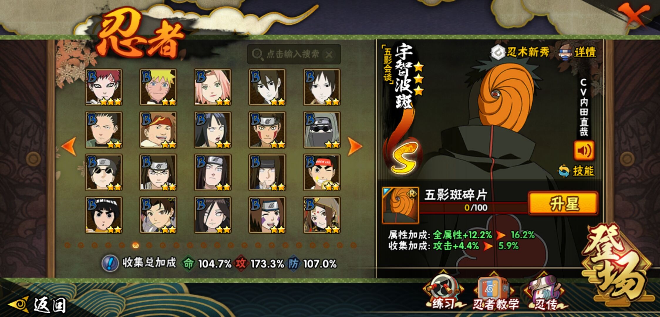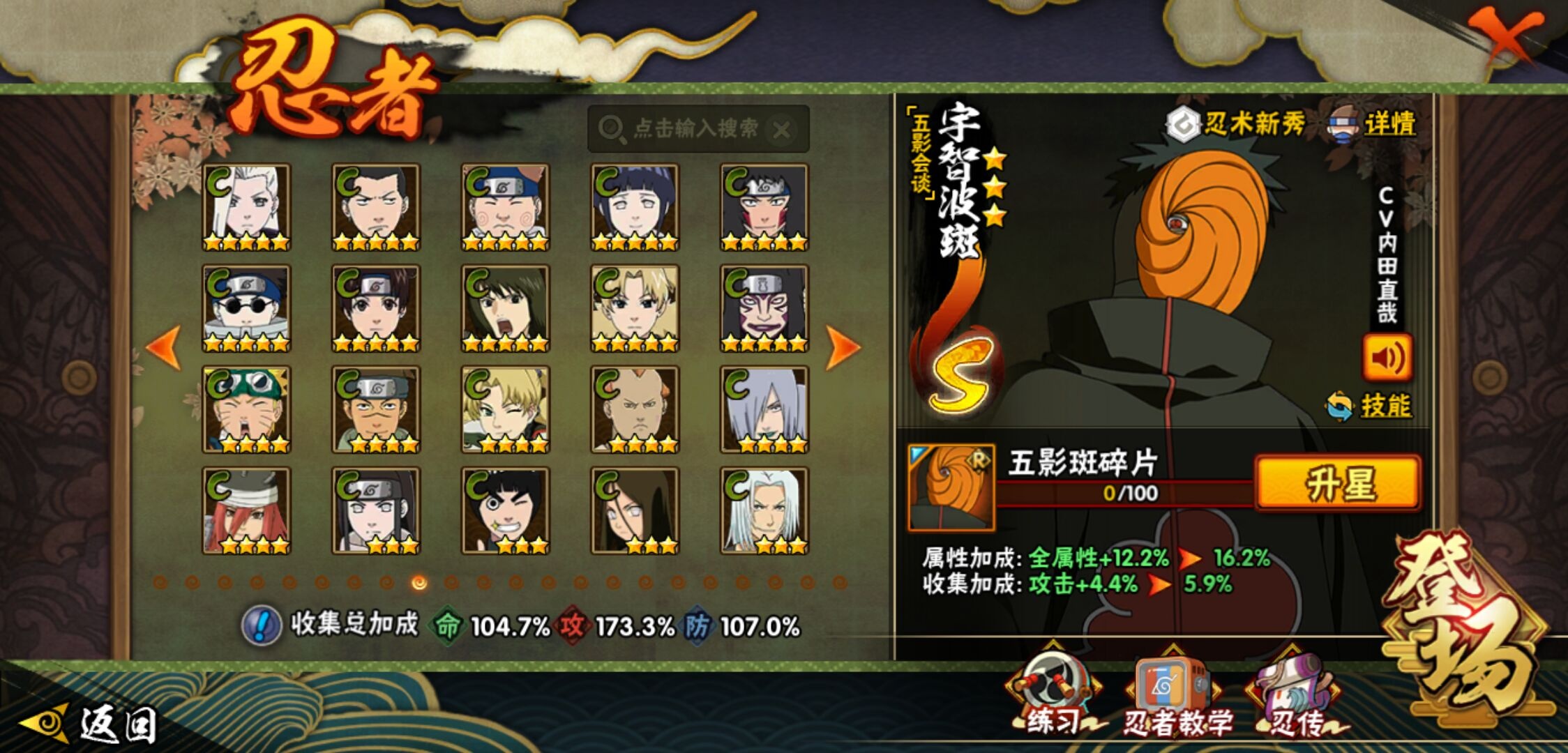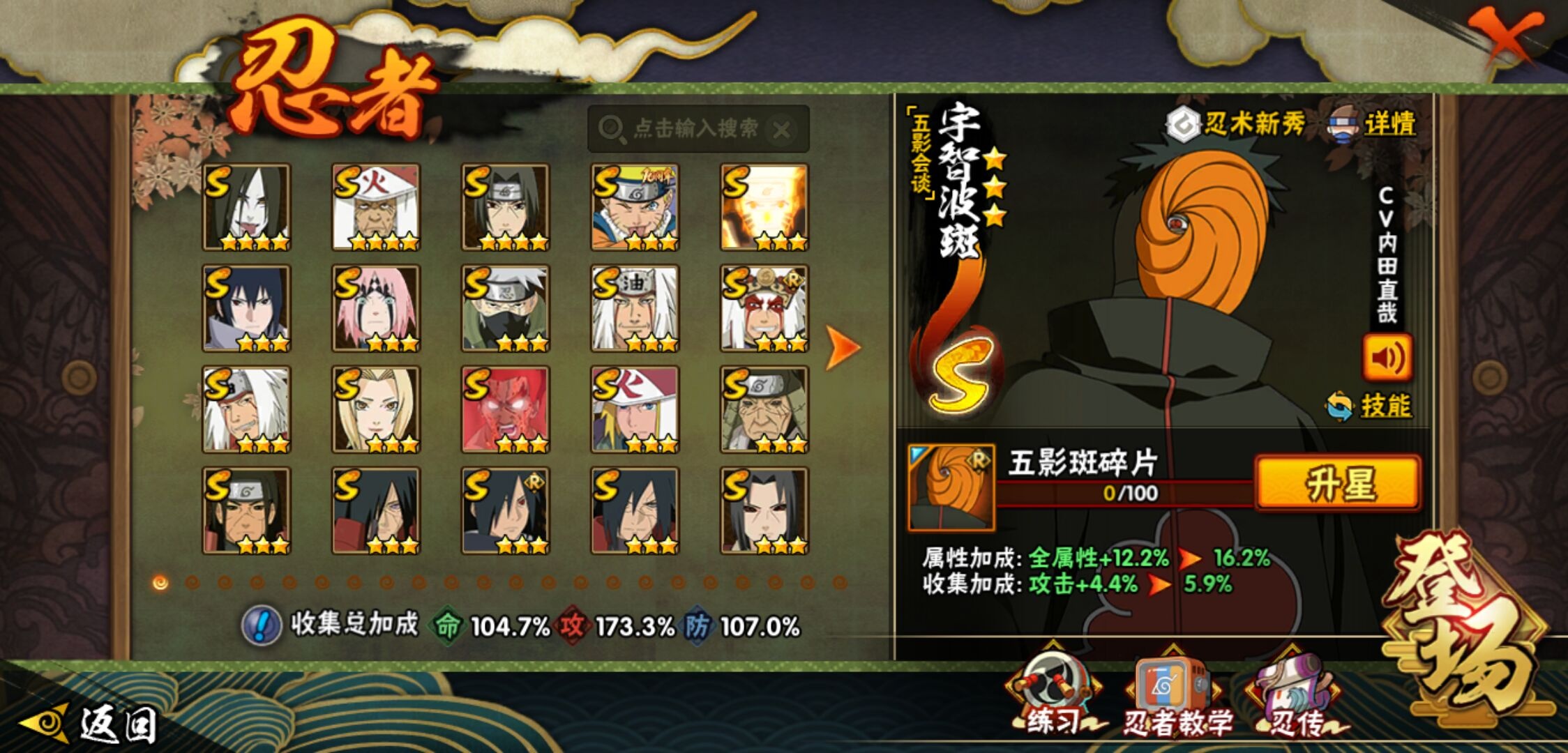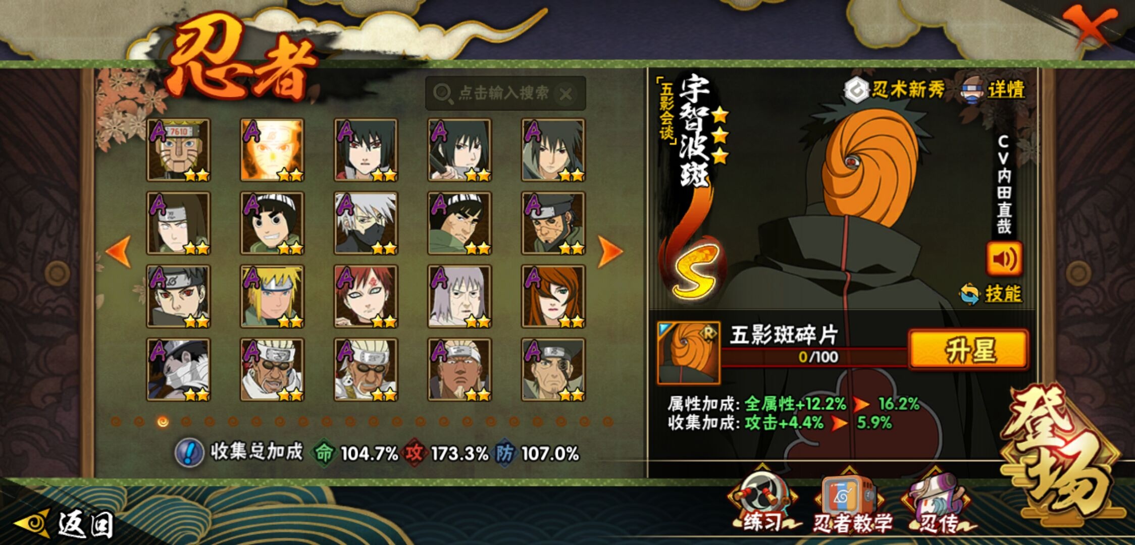 【火影忍者】【lyhy11450】战斗力:1179w;段位:上忍1阶;本服排名:159;vip:v11级;s忍:30个;a忍:45个;通灵兽:18个,s忍:秽土转生解宇智波斑|白面具宇智波斑|忍界大战宇智波带土|须佐能乎旗木卡卡西|超佩恩天道|五影会谈宇智波斑|天道佩恩|传说中的三忍自来也|漩涡鸣人宇智波佐助|秽土转生千手柱间|木叶创立宇智波斑|秽土转生宇智波鼬|永恒万花筒宇智波佐助|忍界大战艾|舞之豪杰自来也|大蛇丸(普通) 4星|纲手(普通)|波风水门|秽土转生宇智波斑|须佐能乎宇智波鼬 4星|神秘面具男(普通)|三代目雷影艾|四代目雷影艾|仙人模式药师兜|死门迈特凯|忍界大战春野樱|九喇嘛连结漩涡鸣人|猿飞日斩(普通) 4星|秽土转生猿飞日斩|自来也(普通)__a忍:青春爆炸迈特凯|忍界大战李洛克|忍界大战日向宁次|四代目土影黑土|木叶上忍猿飞木叶丸|青年长门|忍者之路神秘面具男|秽土转生迪达拉|宇智波止水(普通)|忍界大战奇拉比|青年波风水门|青年艾|漂泊武士千手扉间|加藤断|近松十人卫千代|须佐能乎宇智波佐助|九尾查克拉漩涡鸣人|晓大蛇丸|忍界大战秋道丁次 3星|忍界大战我爱罗|秽土转生猿飞阿斯玛|奇拉比(普通)|万花筒写轮眼宇智波佐助|五代目水影照美冥|五代目雷影达鲁伊|死司凭血飞段 3星|地怨虞角都|疾风传我爱罗 4星|迪达拉(普通)|飞段(普通) 4星|小南(普通)|仙人模式漩涡鸣人|万花筒写轮眼旗木卡卡西|迈特凯(普通) 5星|宇智波鼬(普通)|干柿鬼鲛(普通) 5星|秽土转生桃地再不斩|蝎(普通) 5星|绯流琥蝎|猿飞阿斯玛(普通) 5星|桃式显现漩涡博人|六代目水影长十郎|宇智波泉奈|忍界大战土台|初始形态机械鸣人__通灵兽:忍犬(普通)|蓝蛇|蛤蟆吉|忍龟|镰鼬|猿魔|山椒鱼|蜃|蛤蟆仙人|鲛鲨|蛤蟆健|砂之守鹤|乌鸦(普通)|蛞蝓(普通)|蛤蟆龙|蛤蟆广|梦貘|鹰1