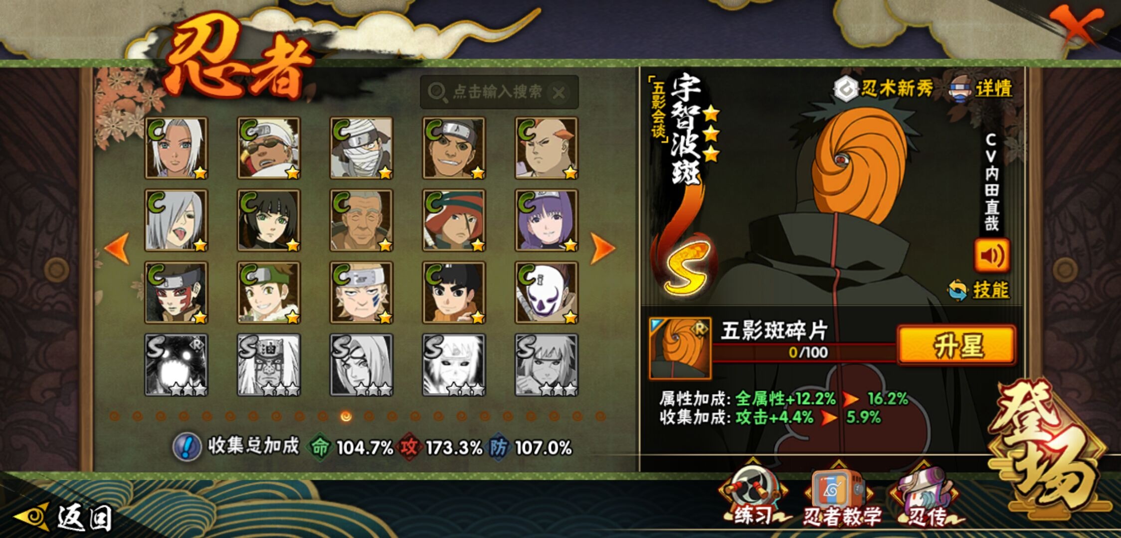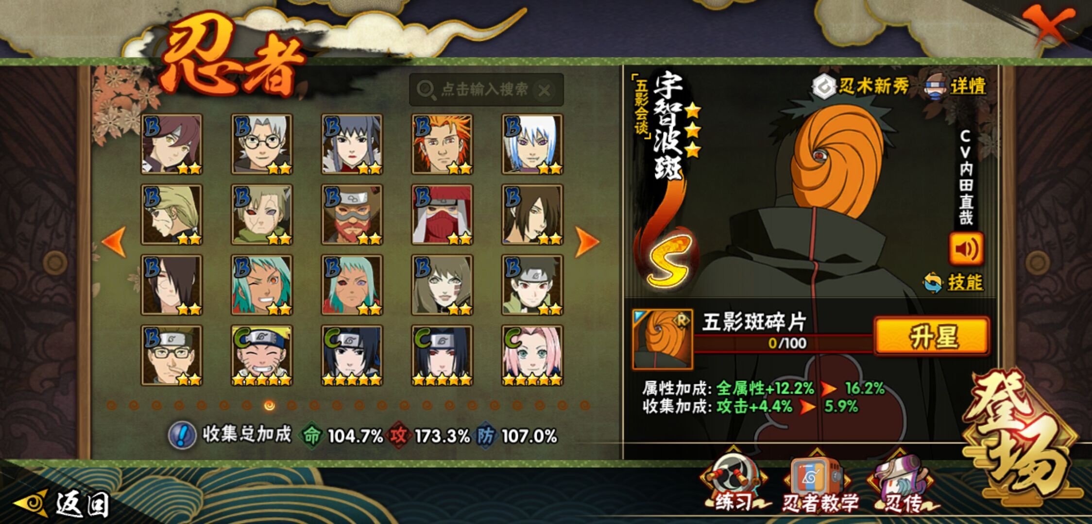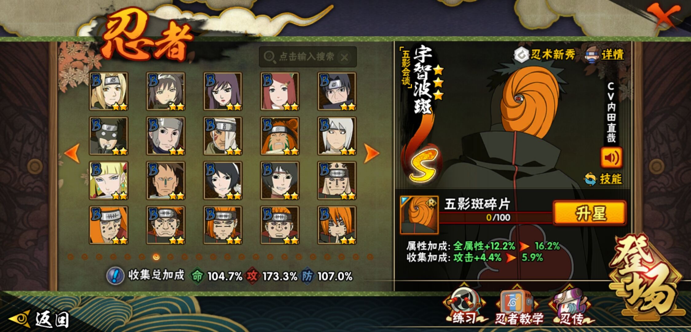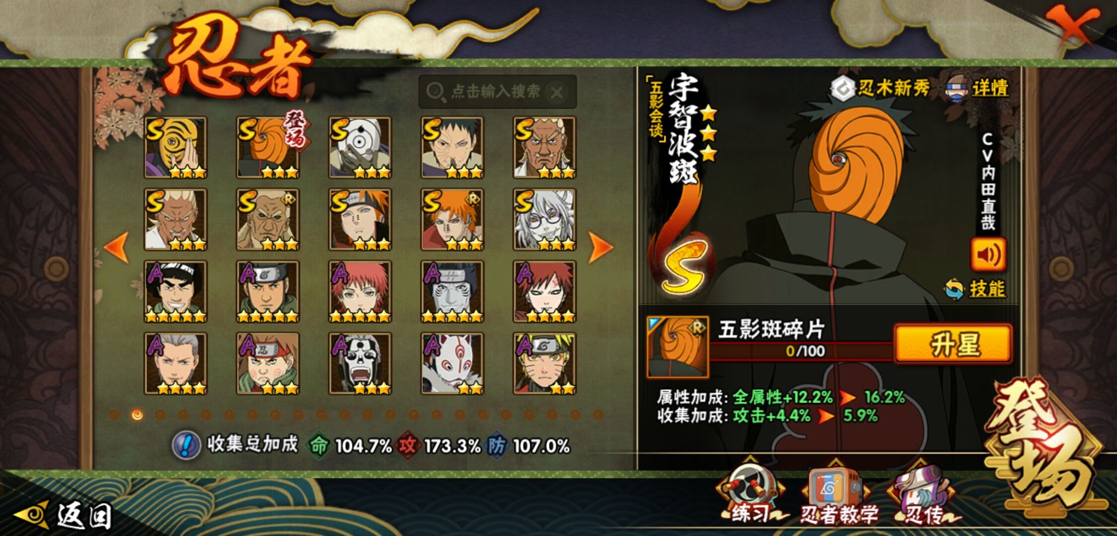 【火影忍者】【lyhy11450】战斗力:1179w;段位:上忍1阶;本服排名:159;vip:v11级;s忍:30个;a忍:45个;通灵兽:18个,s忍:秽土转生解宇智波斑|白面具宇智波斑|忍界大战宇智波带土|须佐能乎旗木卡卡西|超佩恩天道|五影会谈宇智波斑|天道佩恩|传说中的三忍自来也|漩涡鸣人宇智波佐助|秽土转生千手柱间|木叶创立宇智波斑|秽土转生宇智波鼬|永恒万花筒宇智波佐助|忍界大战艾|舞之豪杰自来也|大蛇丸(普通) 4星|纲手(普通)|波风水门|秽土转生宇智波斑|须佐能乎宇智波鼬 4星|神秘面具男(普通)|三代目雷影艾|四代目雷影艾|仙人模式药师兜|死门迈特凯|忍界大战春野樱|九喇嘛连结漩涡鸣人|猿飞日斩(普通) 4星|秽土转生猿飞日斩|自来也(普通)__a忍:青春爆炸迈特凯|忍界大战李洛克|忍界大战日向宁次|四代目土影黑土|木叶上忍猿飞木叶丸|青年长门|忍者之路神秘面具男|秽土转生迪达拉|宇智波止水(普通)|忍界大战奇拉比|青年波风水门|青年艾|漂泊武士千手扉间|加藤断|近松十人卫千代|须佐能乎宇智波佐助|九尾查克拉漩涡鸣人|晓大蛇丸|忍界大战秋道丁次 3星|忍界大战我爱罗|秽土转生猿飞阿斯玛|奇拉比(普通)|万花筒写轮眼宇智波佐助|五代目水影照美冥|五代目雷影达鲁伊|死司凭血飞段 3星|地怨虞角都|疾风传我爱罗 4星|迪达拉(普通)|飞段(普通) 4星|小南(普通)|仙人模式漩涡鸣人|万花筒写轮眼旗木卡卡西|迈特凯(普通) 5星|宇智波鼬(普通)|干柿鬼鲛(普通) 5星|秽土转生桃地再不斩|蝎(普通) 5星|绯流琥蝎|猿飞阿斯玛(普通) 5星|桃式显现漩涡博人|六代目水影长十郎|宇智波泉奈|忍界大战土台|初始形态机械鸣人__通灵兽:忍犬(普通)|蓝蛇|蛤蟆吉|忍龟|镰鼬|猿魔|山椒鱼|蜃|蛤蟆仙人|鲛鲨|蛤蟆健|砂之守鹤|乌鸦(普通)|蛞蝓(普通)|蛤蟆龙|蛤蟆广|梦貘|鹰1
