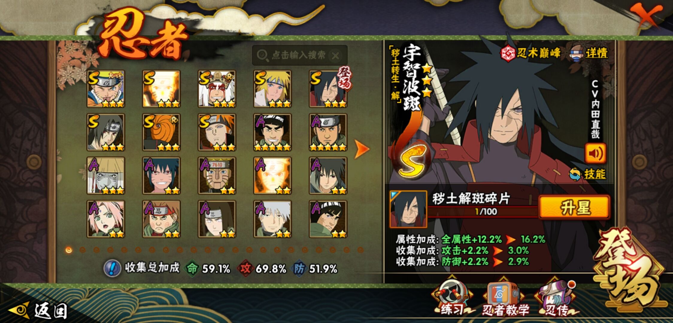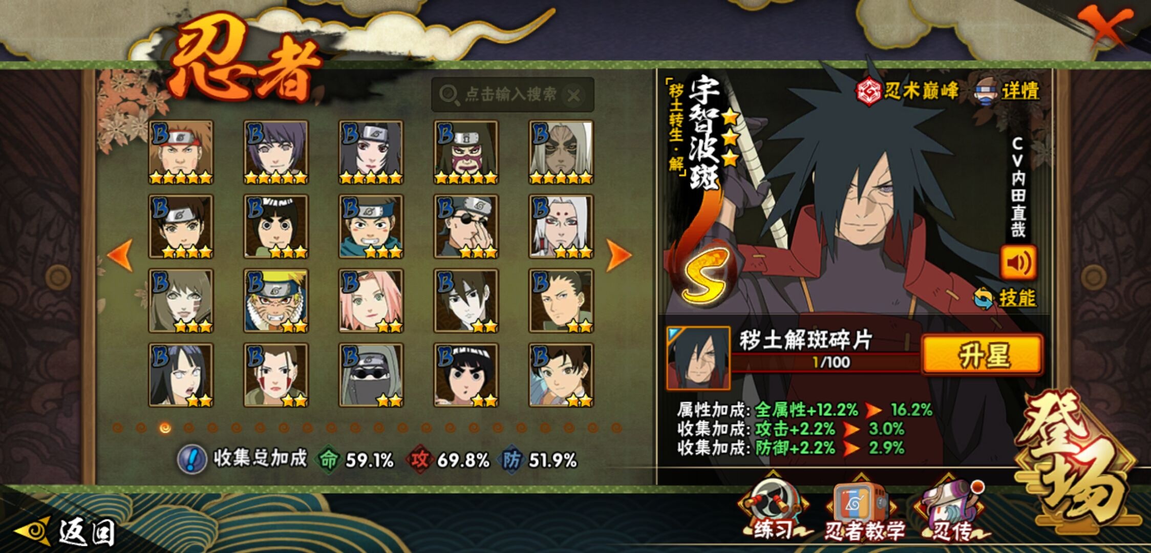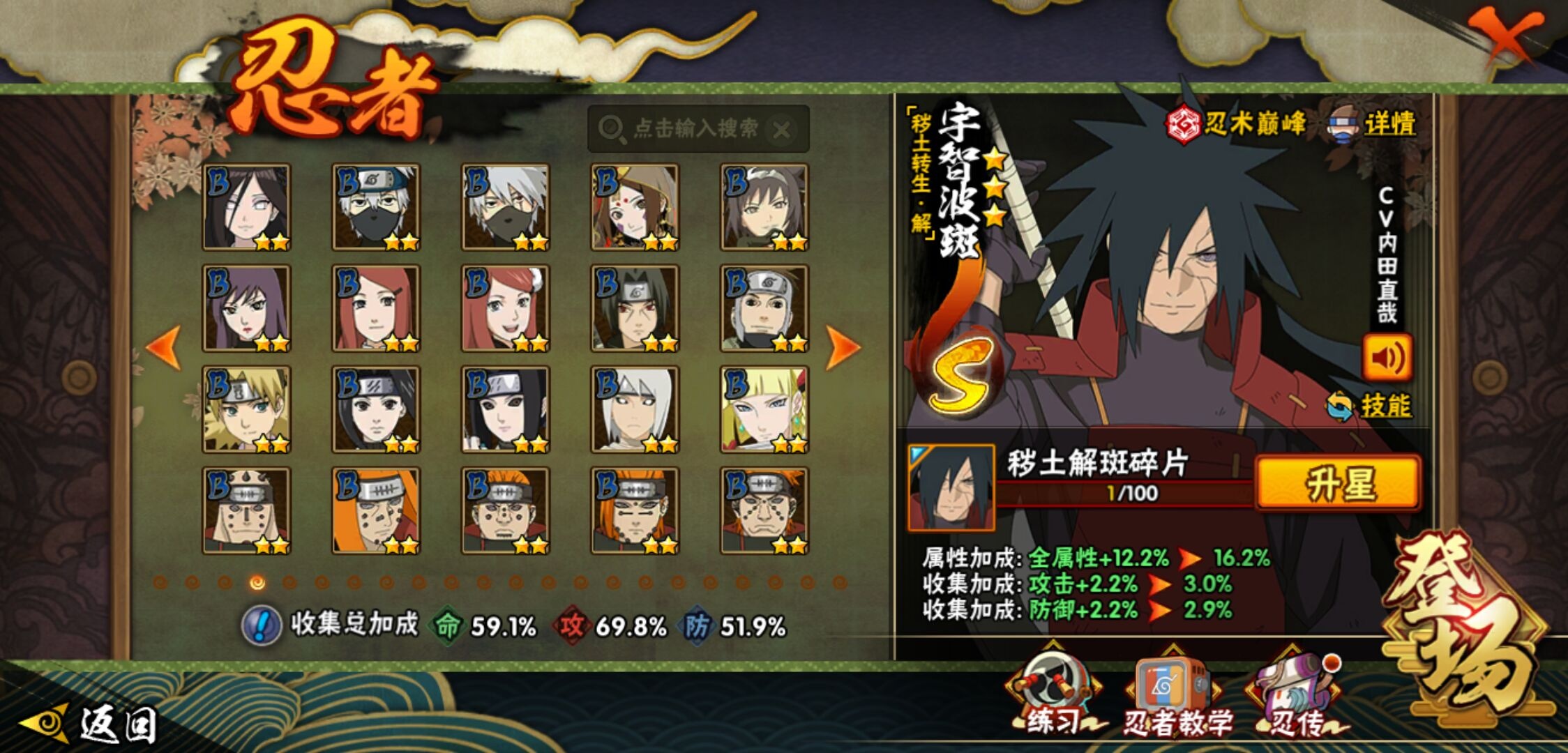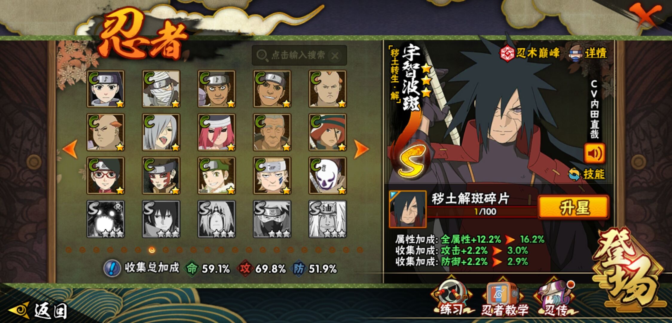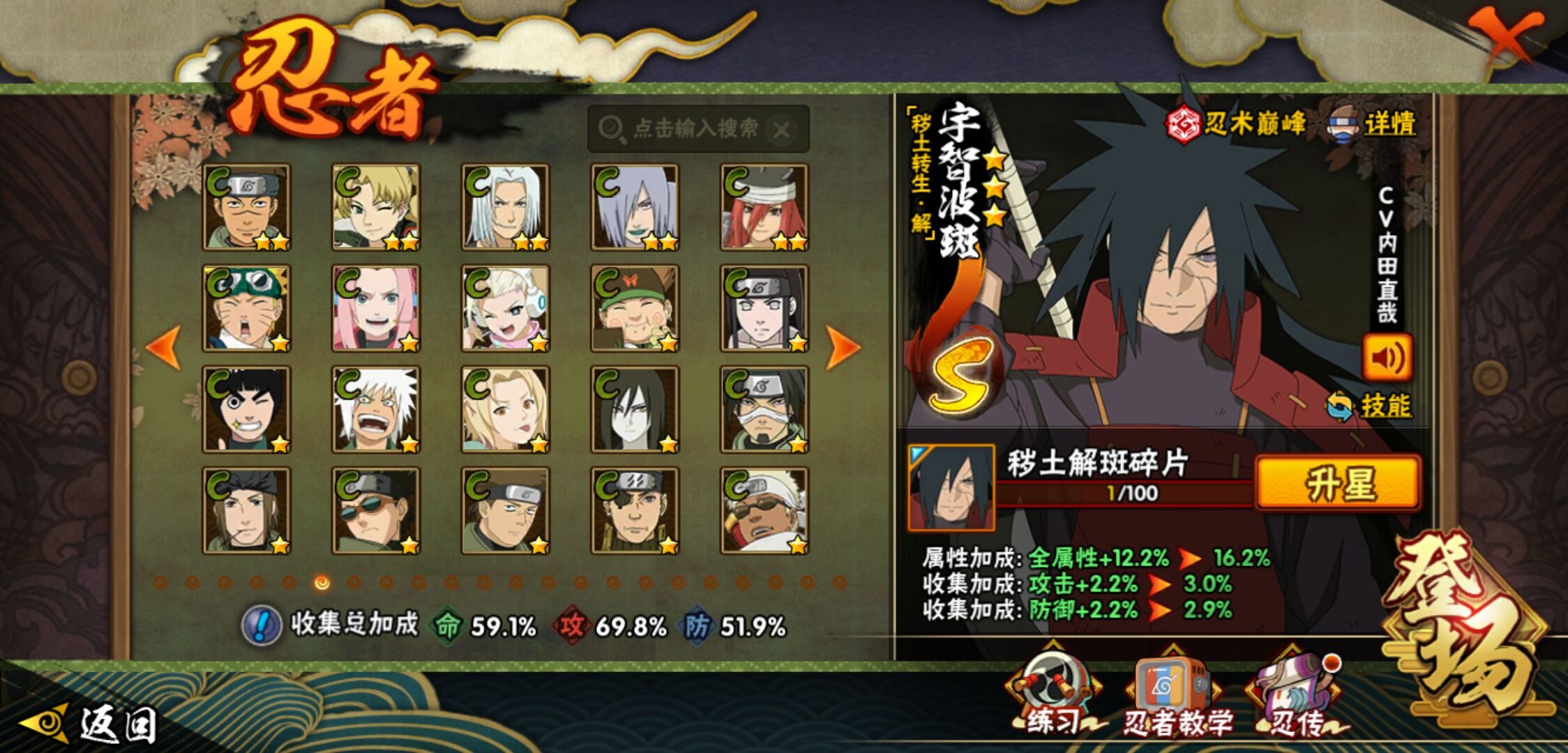 【火影忍者】【lyhy11455】战斗力:620w;段位:中忍3阶;本服排名:970;vip:v8级;s忍:8个;a忍:28个;通灵兽:15个,s忍:秽土转生解宇智波斑|五影会谈宇智波斑|天道佩恩|漩涡鸣人宇智波佐助|舞之豪杰自来也|波风水门|须佐能乎宇智波鼬|九喇嘛连结漩涡鸣人__a忍:青春爆炸迈特凯|幻之真容旗木卡卡西|秽土转生角都|忍界大战日向宁次|青年长门|忍者之路神秘面具男|秽土转生迪达拉|青年波风水门|青年艾|九尾查克拉漩涡鸣人|晓大蛇丸|百豪春野樱|忍界大战秋道丁次|五代目雷影达鲁伊|死司凭血飞段|疾风传我爱罗|飞段(普通)|迈特凯(普通) 5星|宇智波鼬(普通)|干柿鬼鲛(普通) 3星|蝎(普通)|猿飞阿斯玛(普通) 5星|桃式显现漩涡博人|宇智波泉奈|羁绊神农|忍界大战土台|初始形态机械鸣人|侠隐江湖大野木__通灵兽:忍犬(普通)|蓝蛇|蛤蟆吉|忍龟|镰鼬|猿魔|山椒鱼|蜃|蛤蟆仙人|鲛鲨|蛤蟆健|砂之守鹤|蛞蝓(普通)|乌鸦(普通)|蛤蟆龙