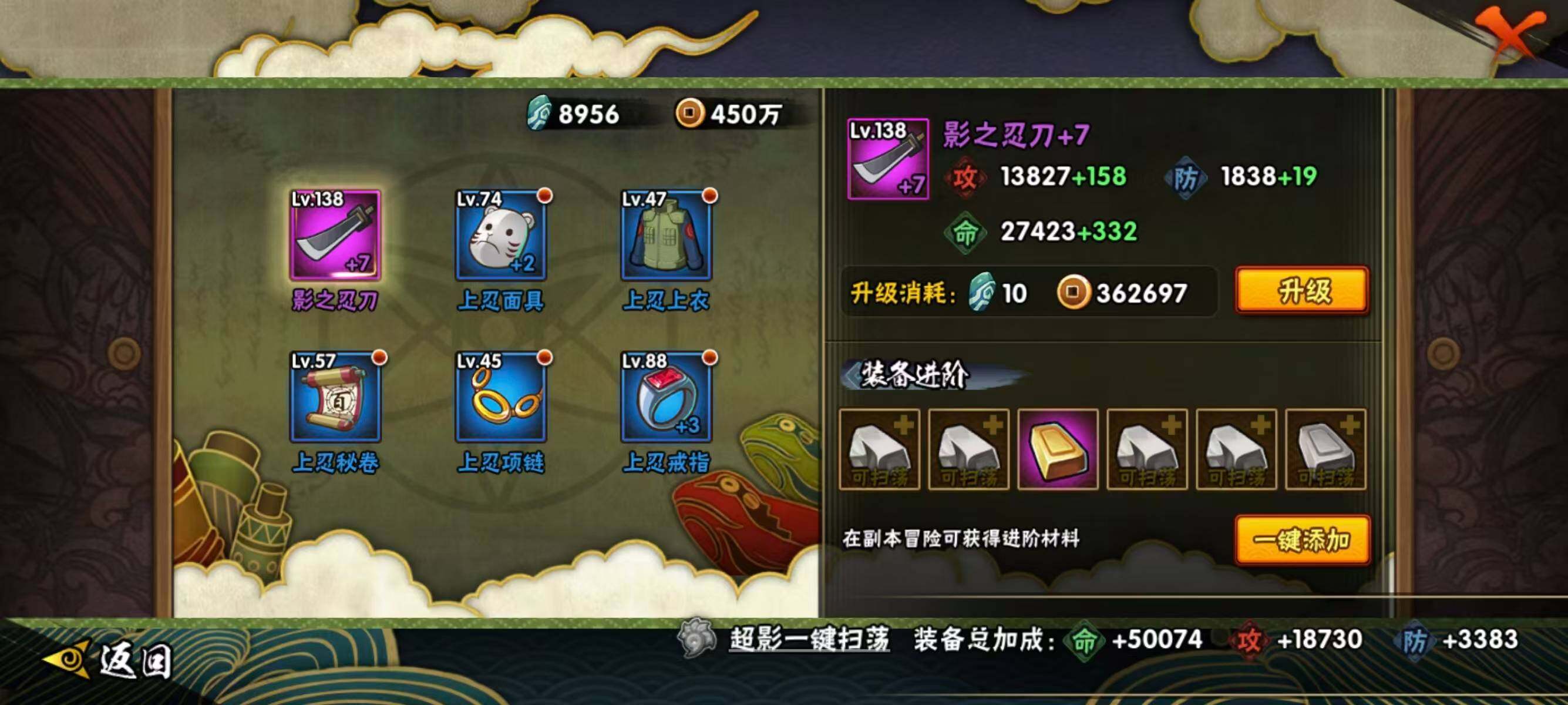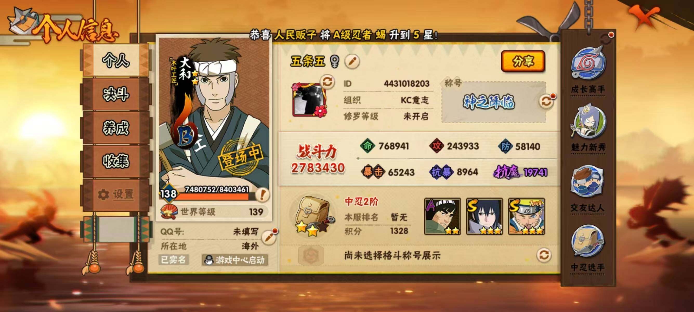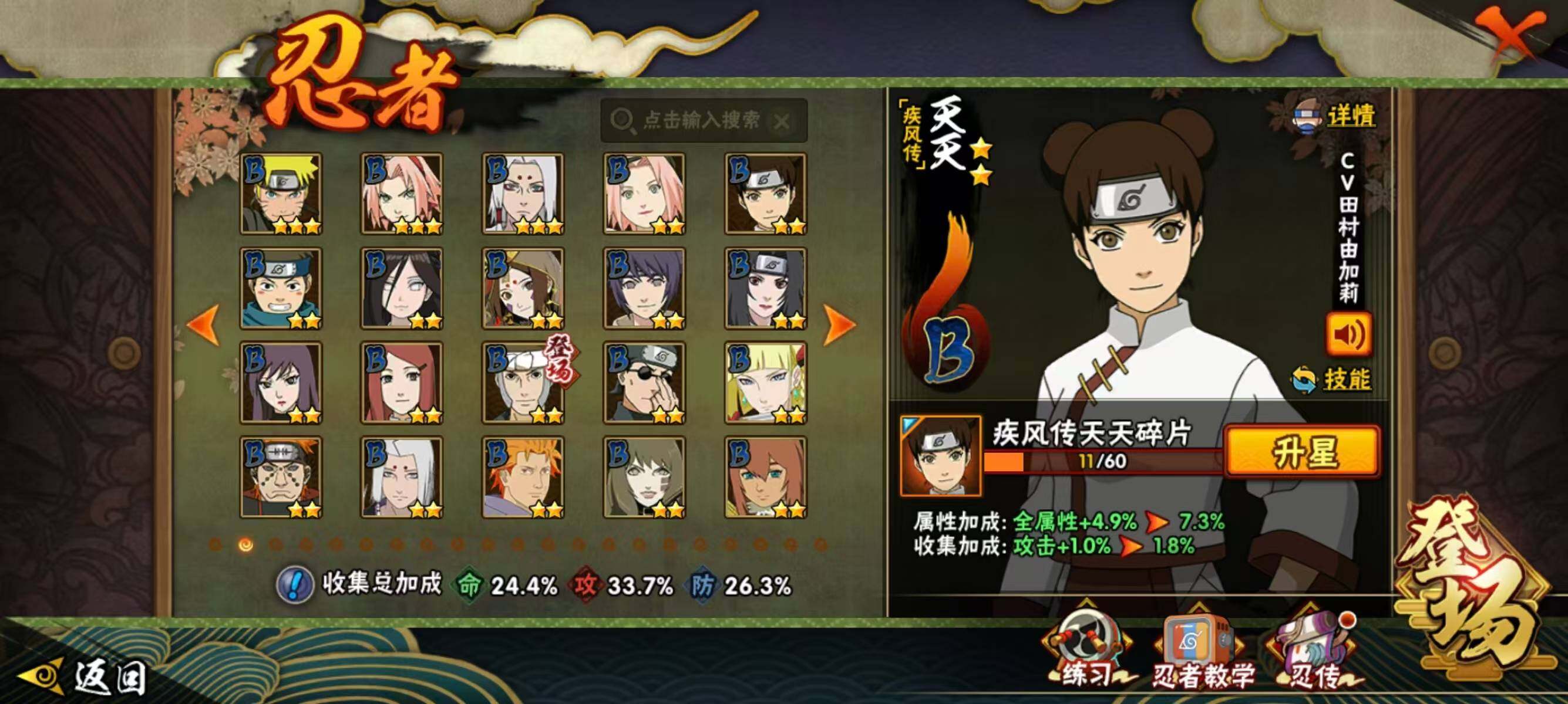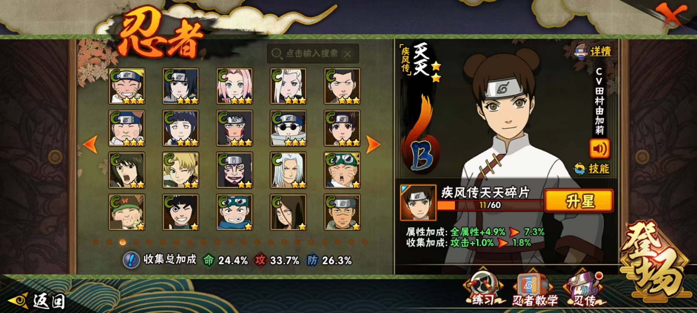 【209】【连体王者4传说】6s级忍者数-14a级忍者数 【s级忍者】:宇智波鼬「须佐能乎」3星,自来也「舞之豪杰」3星,波风水门3星,佩恩「天道」3星,宇智波佐助「永恒万花筒」3星,漩涡鸣人·宇智波佐助3星 【a级忍者】:波风水门「青年」2星,迪达拉2星,干柿鬼鲛2星,漩涡博人「桃式显现」2星,我爱罗「疾风传」2星,蝎2星,角都「地怨虞」2星,药师兜「半蛇斗篷」2星,长十郎「六代目水影」2星,神秘面具男「忍者之路」2星,秋道丁次「忍界大战」2星,千代「近松十人卫」2星,宇智波泉奈2星,迈特凯「青春爆炸」2星