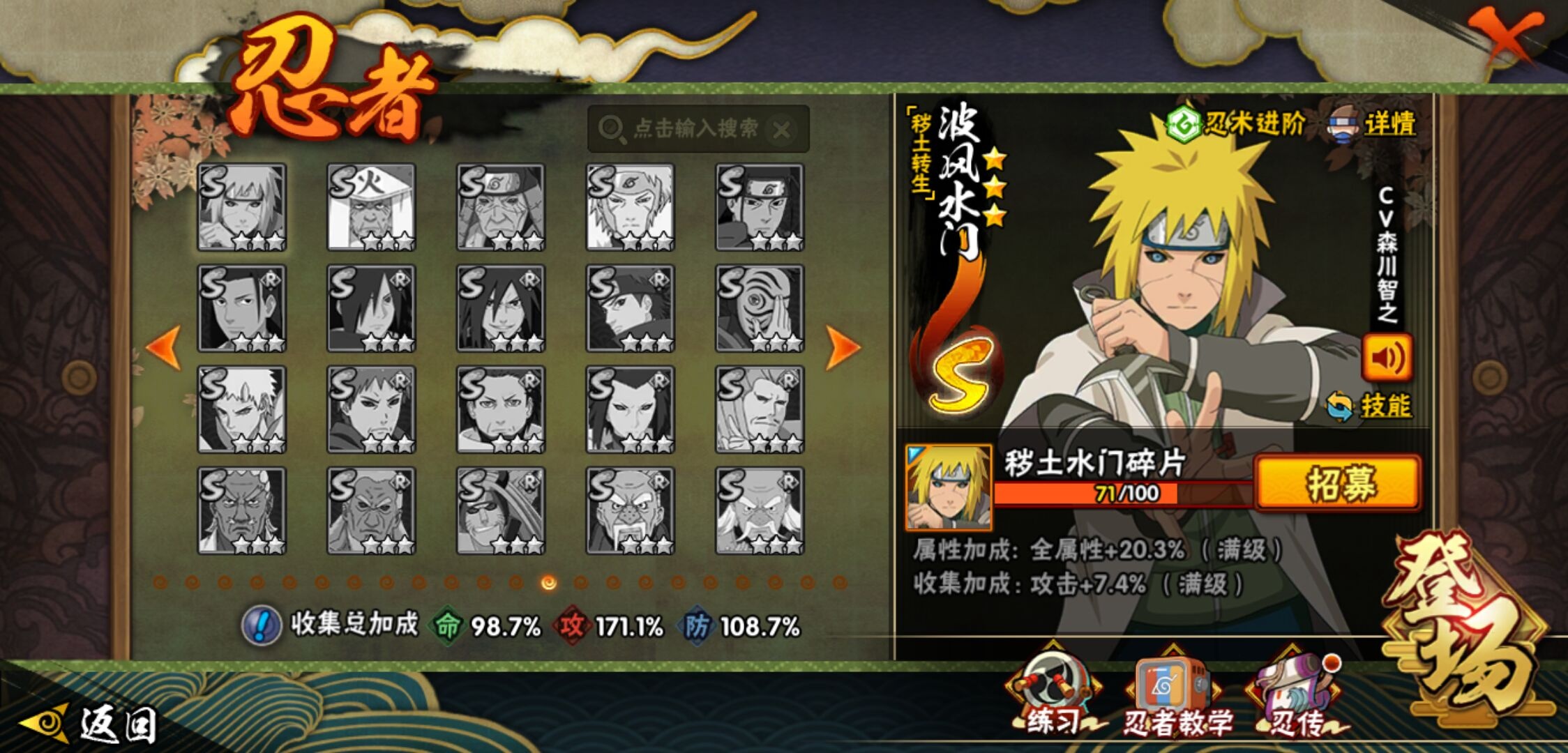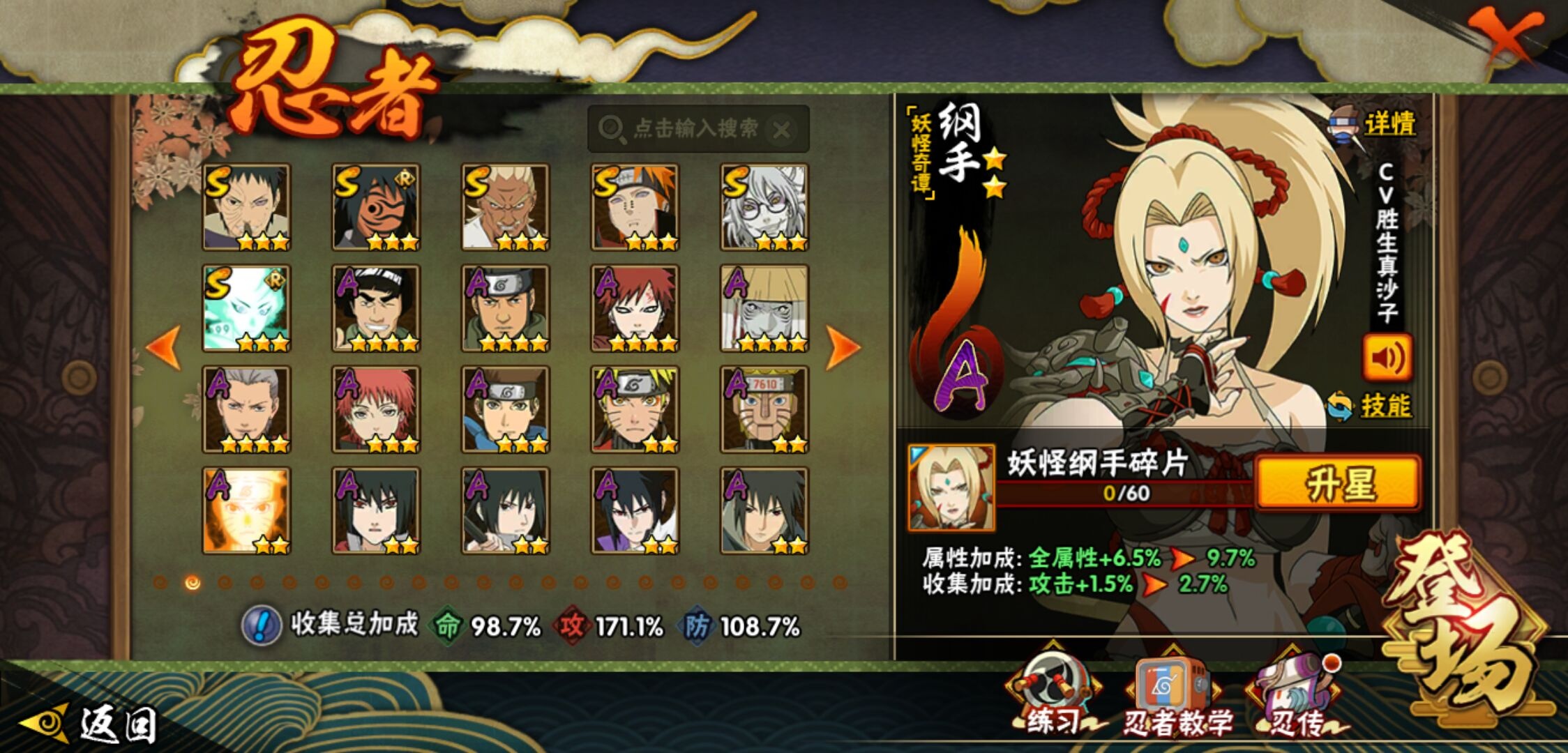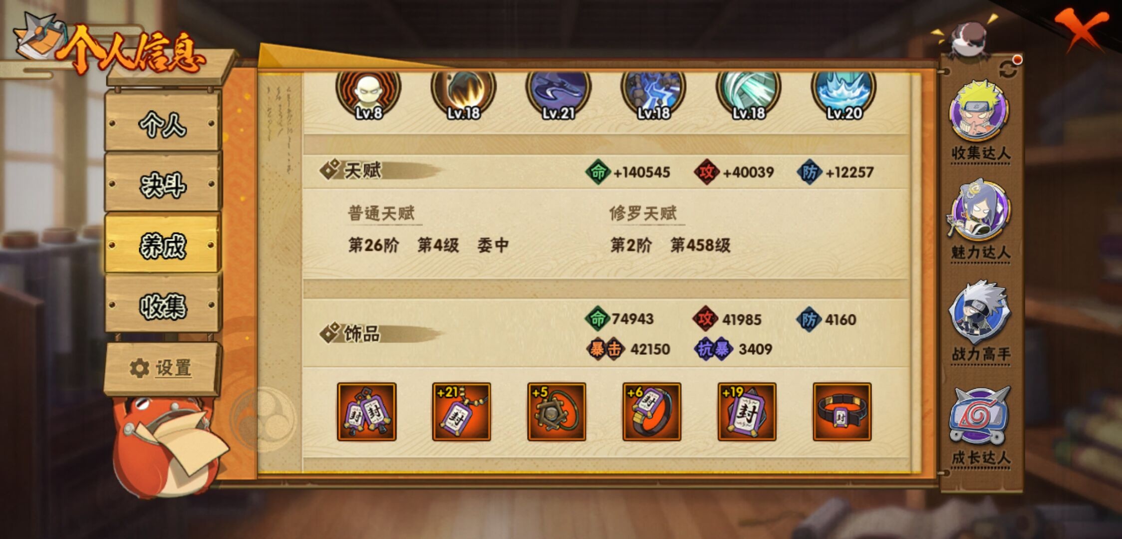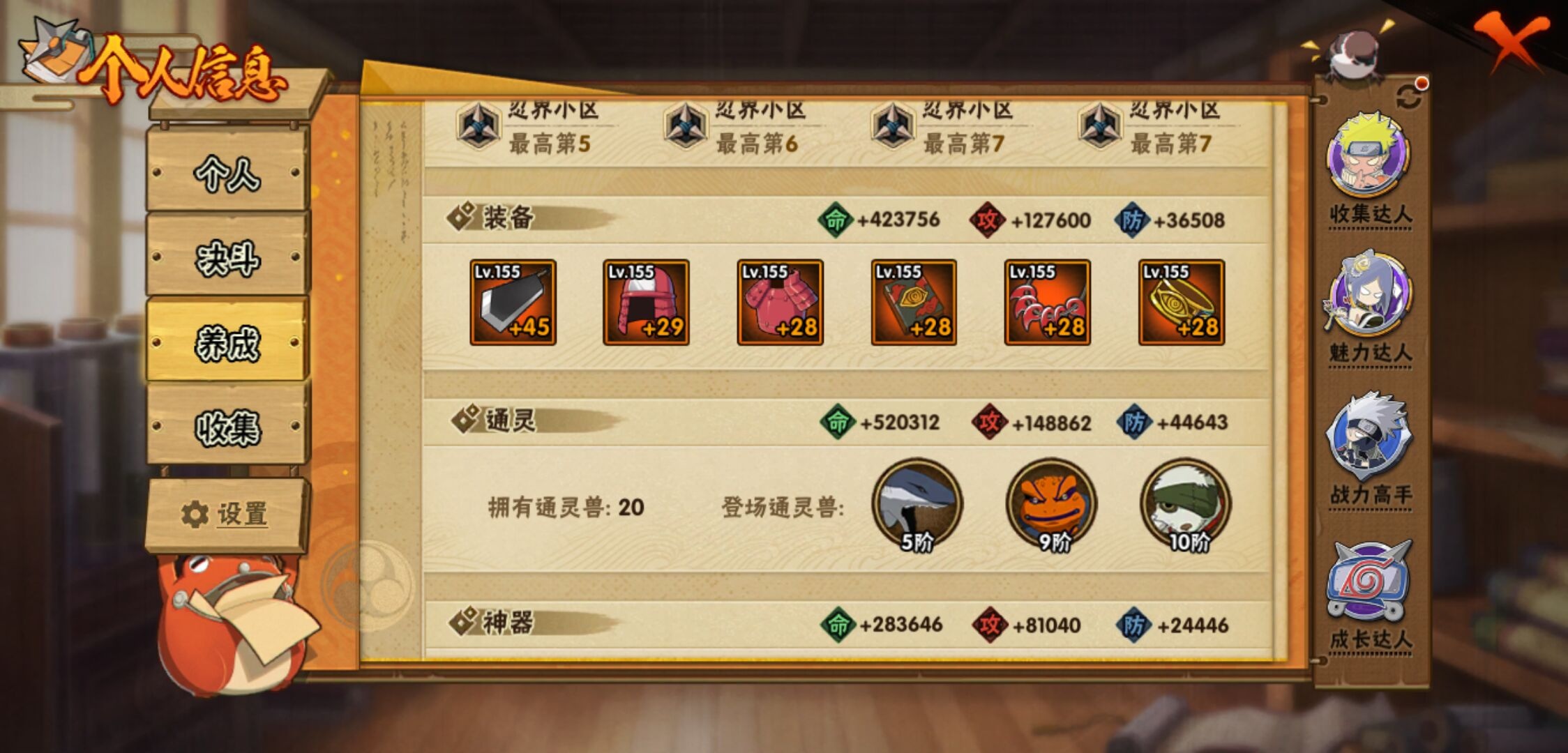 【火影忍者】【lyhy11461】战斗力:895w;段位:上忍1阶;本服排名:1080;vip:v13级;s忍:26个;a忍:51个;通灵兽:18个,s忍:秽土转生解宇智波斑|白面具宇智波斑|忍界大战宇智波带土|须佐能乎旗木卡卡西|秽土转生千手扉间|九喇嘛连结波风水门|五影会谈宇智波斑|天道佩恩|传说中的三忍自来也|漩涡鸣人宇智波佐助|秽土转生千手柱间|秽土转生宇智波鼬|永恒万花筒宇智波佐助|最终章大筒木舍人|忍界大战艾|舞之豪杰自来也|大蛇丸(普通)|波风水门|秽土转生宇智波斑|宇智波斑(普通)|须佐能乎宇智波鼬|红夜之刃神秘面具男|仙人模式药师兜|死门迈特凯|忍界大战春野樱|九喇嘛连结漩涡鸣人__a忍:青春爆炸迈特凯|漂泊浪客宇智波带土|妖怪奇谭纲手|仙人模式巳月|侠隐江湖宇智波佐助|侠隐江湖纲手|幻之真容旗木卡卡西|忍界大战李洛克|秽土转生角都|忍界大战日向宁次|四代目土影黑土|木叶上忍猿飞木叶丸 3星|青年长门|秽土转生迪达拉|志村团藏|忍界大战奇拉比|青年波风水门|青年艾|漂泊武士千手扉间|忍界大战旗木卡卡西|近松十人卫千代|半蛇斗篷药师兜|须佐能乎宇智波佐助|九尾查克拉漩涡鸣人|暴怒宇智波带土|晓大蛇丸|百豪春野樱|新春限定宇智波鼬|万花筒写轮眼宇智波佐助|五代目水影照美冥|五代目雷影达鲁伊|三船(普通)|死司凭血飞段|地怨虞角都|疾风传我爱罗 4星|飞段(普通) 4星|小南(普通)|仙人模式漩涡鸣人|万花筒写轮眼旗木卡卡西|迈特凯(普通) 4星|宇智波鼬(普通)|干柿鬼鲛(普通) 4星|秽土转生桃地再不斩|蝎(普通) 3星|绯流琥蝎|猿飞阿斯玛(普通) 4星|桃式显现漩涡博人|宇智波泉奈|羁绊神农|初始形态机械鸣人|侠隐江湖大野木__通灵兽:忍犬(普通)|蓝蛇|蛤蟆吉|忍龟|镰鼬|猿魔|山椒鱼|蜃|蛞蝓(普通)|蛤蟆仙人|鲛鲨|蛤蟆健|乌鸦(普通)|砂之守鹤|蛤蟆龙|蛤蟆广|梦貘|鹰