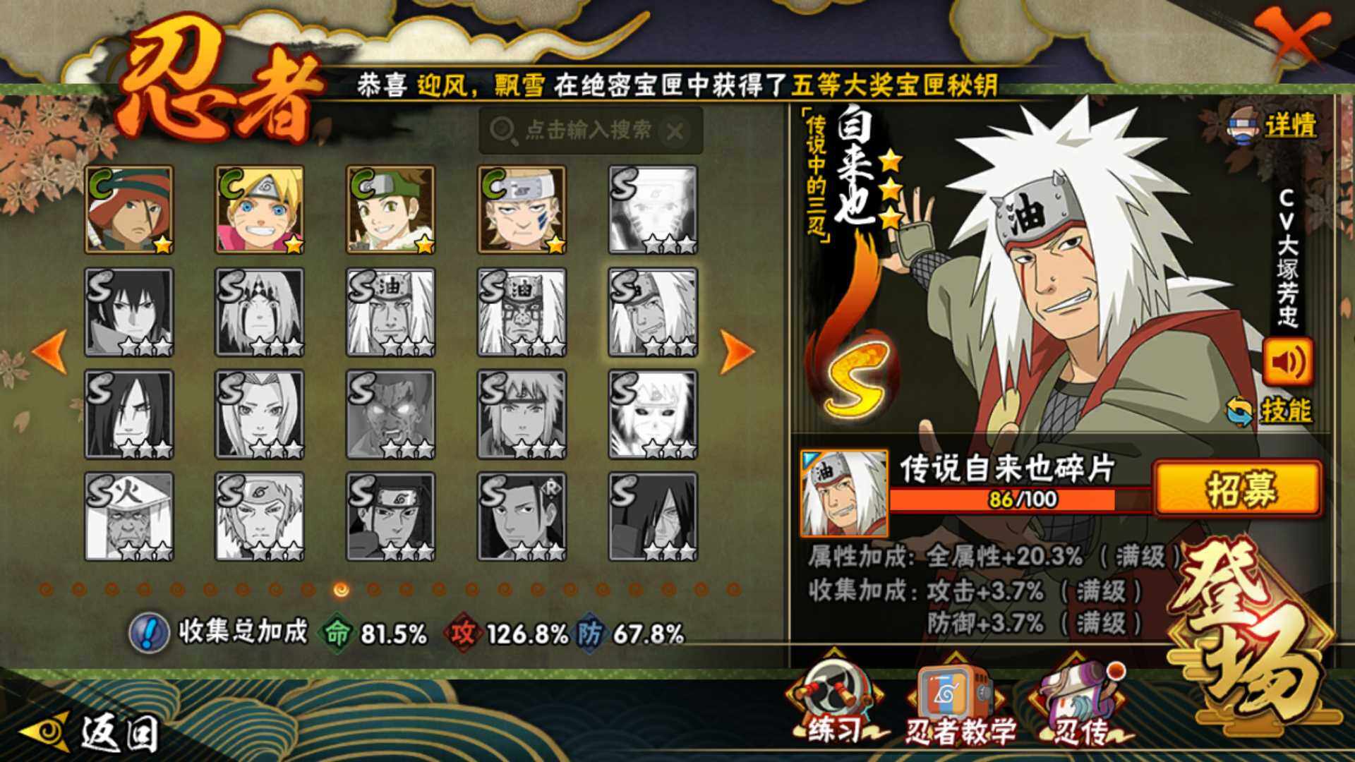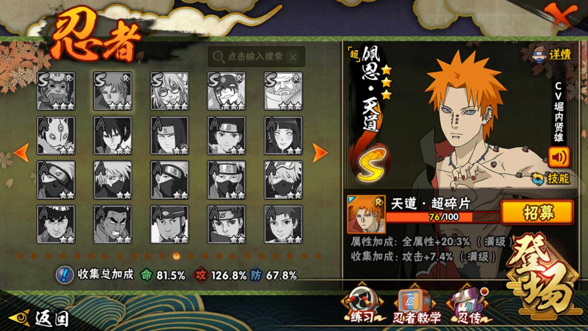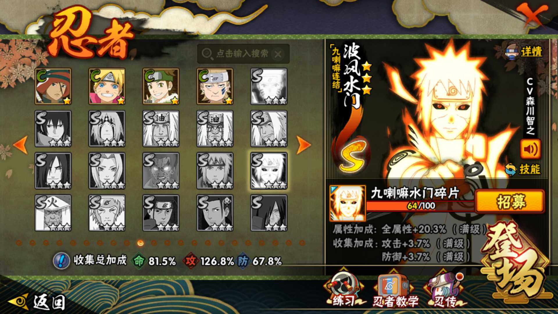 [16546407]可免费转苹果 v11 945万战力 16s-44a 有熊猫 天道超76片 九喇嘛水门64片 传说自来也86片 十尾带土83片 ll5856 【s级忍者】:长门「秽土转生」3星,猿飞日斩「秽土转生」3星,波风水门「秽土转生」3星,千手扉间「秽土转生」3星,千手柱间「秽土转生」3星,宇智波带土「忍界大战」3星,宇智波鼬「须佐能乎」3星,旗木卡卡西「须佐能乎」3星,无「二代目土影」3星,自来也「舞之豪杰」3星,纲手「百豪」3星,宇智波斑3星,佩恩「天道」3星,大筒木舍人「最终章」3星,漩涡鸣人「暴怒·第六尾」3星,漩涡鸣人·宇智波佐助3星 【a级忍者】:波风水门「青年」2星,大蛇丸「晓」2星,奇拉比「忍界大战」2星,飞段4星,飞段「死司凭血」2星,飞段「恶灵之影」2星,干柿鬼鲛4星,漩涡鸣人「仙人模式」2星,漩涡鸣人「九尾查克拉」2星,机械鸣人「初始形态」2星,迈特凯5星,旗木卡卡西「幻之真容」2星,桃地再不斩2星,桃地再不斩「秽土转生」2星,我爱罗「疾风传」3星,我爱罗「忍界大战」2星,蝎2星,小南「漂泊浪客」2星,角都「地怨虞」2星,角都「秽土转生」2星,猿飞阿斯玛4星,猿飞阿斯玛「秽土转生」2星,宇智波鼬2星,宇智波鼬「新春限定」2星,宇智波佐助「须佐能乎」2星,宇智波佐助「疾风传咒印」2星,宇智波佐助「万花筒写轮眼」2星,药师兜「半蛇斗篷」2星,照美冥「五代目水影」2星,宇智波带土「漂泊浪客」2星,佩恩·六道「漂泊浪客」2星,李洛克「忍界大战」2星,猿飞木叶丸「博人传」2星,黑土「夏日限定」2星,黑土「博人传」2星,春野樱「百豪」2星,秋道丁次「忍界大战」2星,千代「近松十人卫」2星,神农「羁绊」2星,土台「忍界大战」2星,地陆2星,宇智波泉奈2星,不动2星,迈特凯「青春爆炸」2星