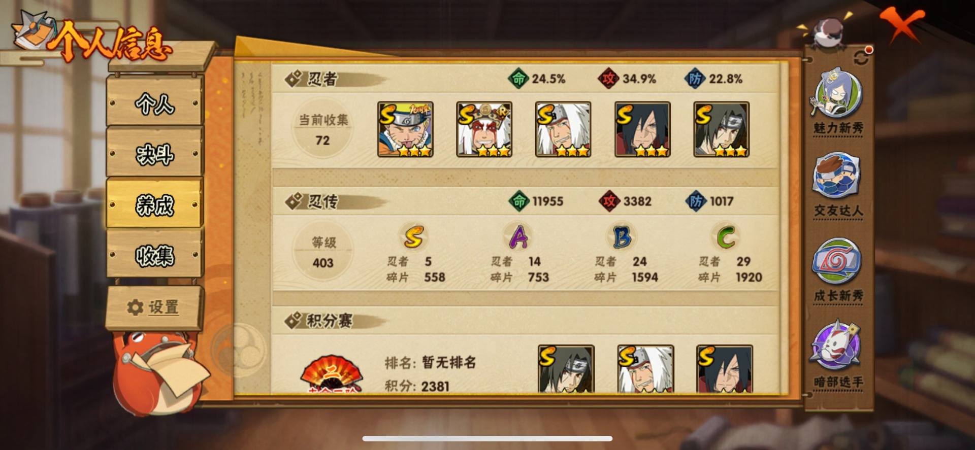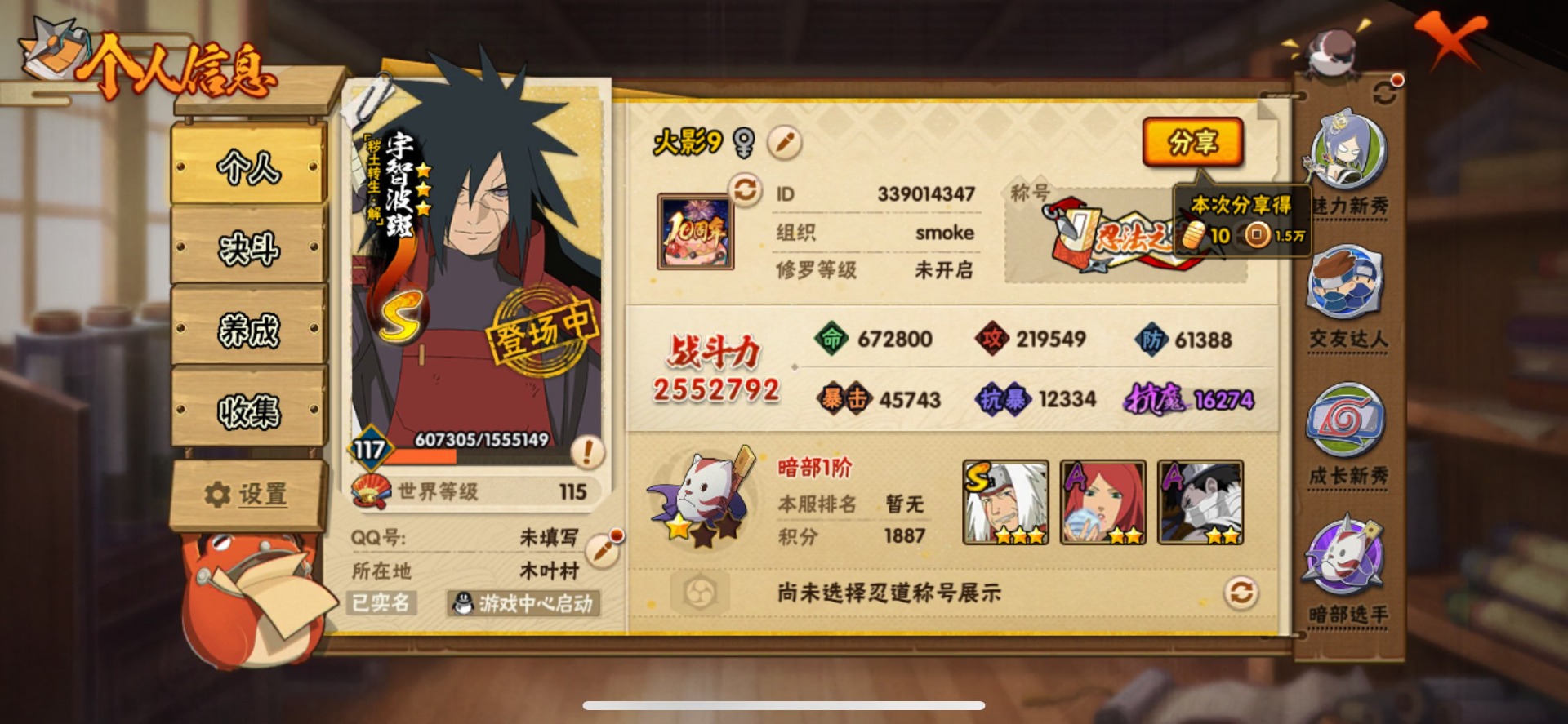 [16423506]v4 5s忍 14a忍 11通灵 255.2w战力 可二次 可修改实名 【s级忍者】自来也 「舞之豪杰」自来也 「传说中的三忍」漩涡鸣人·宇智波佐助宇智波斑「秽土转生」宇智波鼬 「须佐能乎」