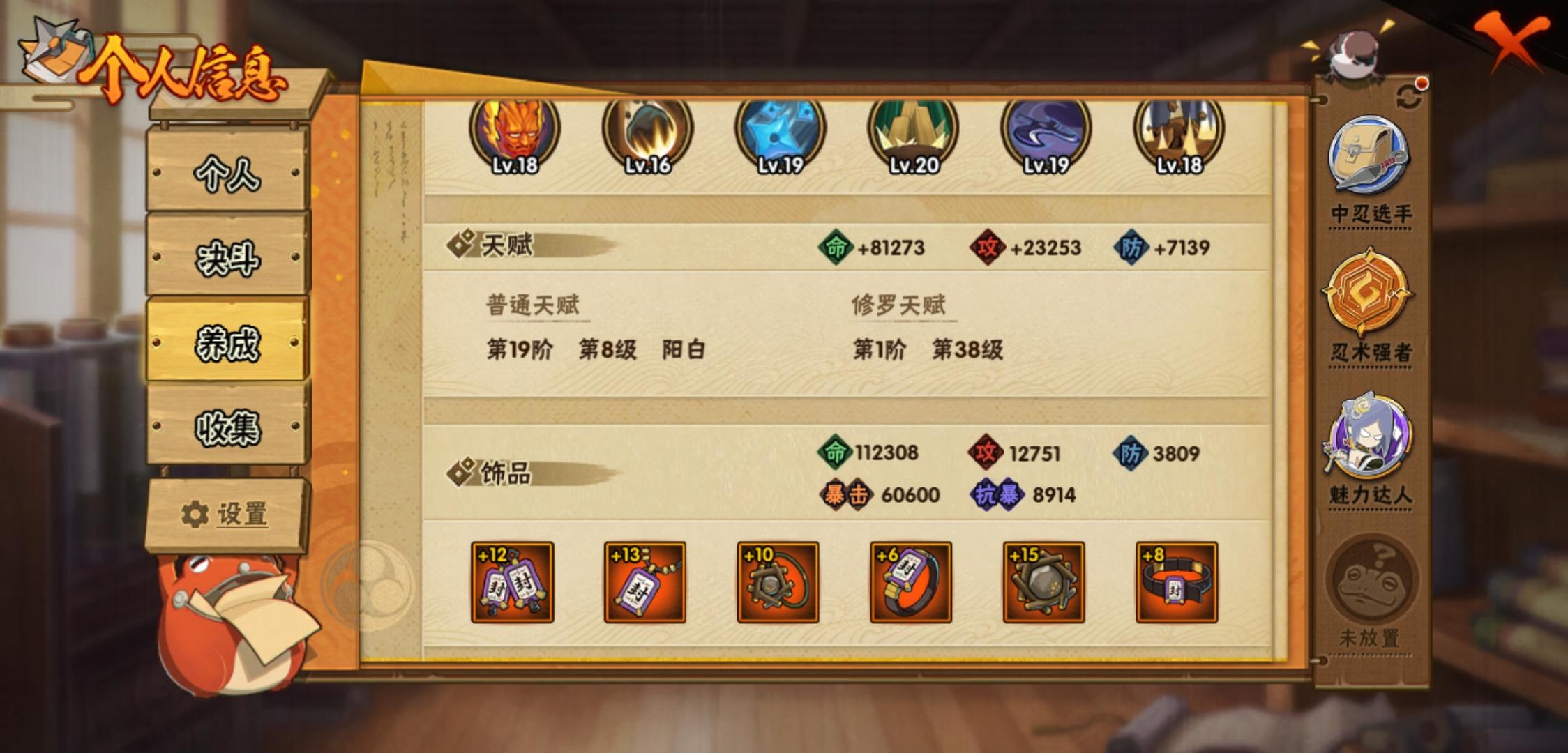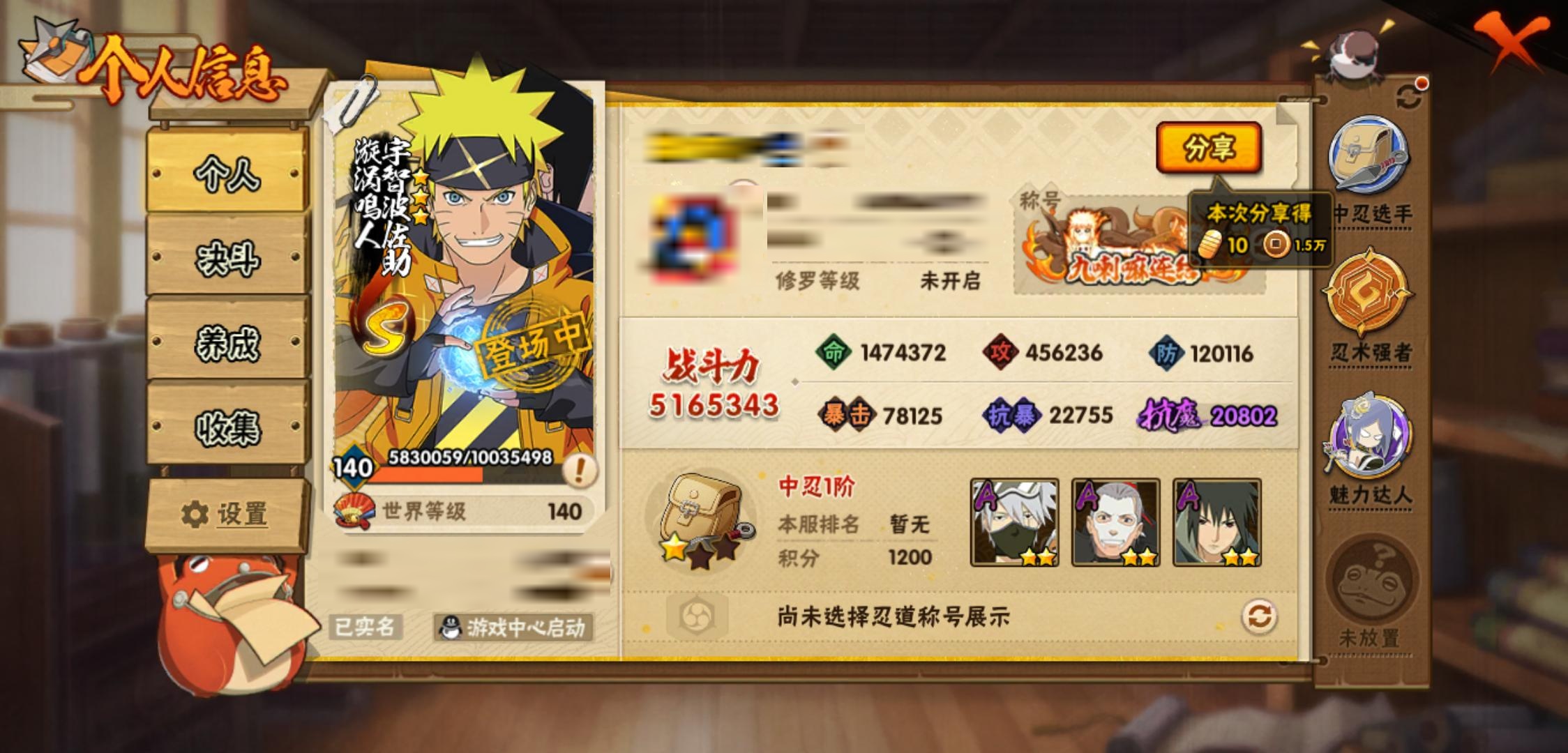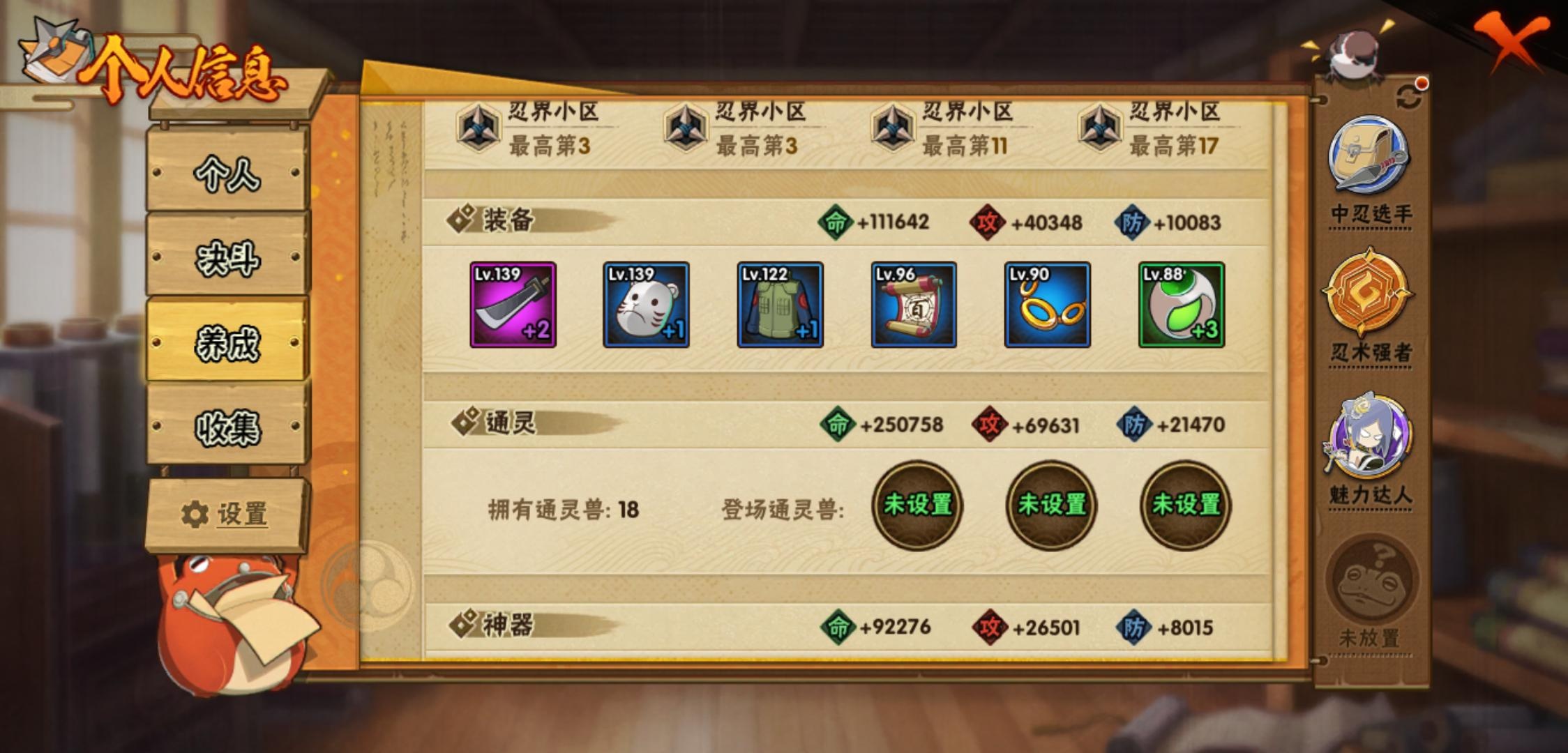 【火影忍者】【lyhy11470】战斗力:516w;段位:中忍1阶;vip:v11级;s忍:23个;a忍:47个;通灵兽:16个,s忍:秽土转生解宇智波斑|白面具宇智波斑|忍界大战宇智波带土|须佐能乎旗木卡卡西|超佩恩天道|九喇嘛连结波风水门|天道佩恩 4星|漩涡鸣人宇智波佐助|须佐能乎宇智波止水|秽土转生千手柱间|木叶创立宇智波斑|秽土转生宇智波鼬|永恒万花筒宇智波佐助|忍界大战艾|舞之豪杰自来也|大蛇丸(普通)|波风水门|须佐能乎宇智波鼬|四代目风影罗砂|仙人模式药师兜|死门迈特凯|九喇嘛连结漩涡鸣人|暴怒第六尾漩涡鸣人__a忍:青春爆炸迈特凯|仙人模式巳月|侠隐江湖纲手|忍界大战李洛克|漂泊浪客佩恩六道|忍界大战日向宁次|四代目土影黑土|木叶上忍猿飞木叶丸|青年长门|秽土转生迪达拉|元气夏日旗木卡卡西|忍界大战奇拉比|青年波风水门|青年艾|漂泊武士千手扉间|漂泊武士桃地再不斩|近松十人卫千代|半蛇斗篷药师兜|须佐能乎宇智波佐助|恶灵之影飞段|晓大蛇丸|忍界大战秋道丁次|奇拉比(普通)|万花筒写轮眼宇智波佐助|五代目水影照美冥|五代目雷影达鲁伊|死司凭血飞段|角都(普通)|疾风传我爱罗 4星|迪达拉(普通)|飞段(普通) 3星|漂泊浪客小南|仙人模式漩涡鸣人|迈特凯(普通) 3星|宇智波鼬(普通)|干柿鬼鲛(普通) 3星|秽土转生桃地再不斩|蝎(普通) 3星|绯流琥蝎|猿飞阿斯玛(普通) 3星|桃式显现漩涡博人|最终章日向雏田|六代目水影长十郎|不动|宇智波泉奈|羁绊神农|侠隐江湖大野木__通灵兽:忍犬(普通)|蓝蛇|蛤蟆吉|忍龟|镰鼬|猿魔|砂之守鹤|山椒鱼|蛞蝓(普通)|蜃|蛤蟆仙人|鲛鲨|蛤蟆健|熊猫|乌鸦(普通)|蛤蟆龙